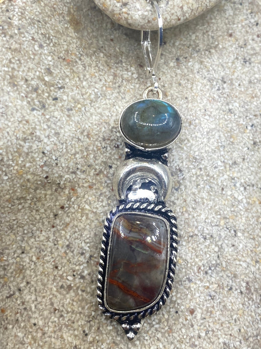 Vintage Genuine Gemstone 925 Sterling Silver Dangle Earrings