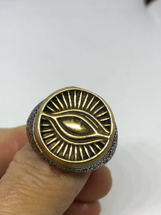 Vintage Gothic Gild and Silver Stainless Steel Illuminati Eye Mens Ring