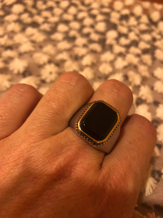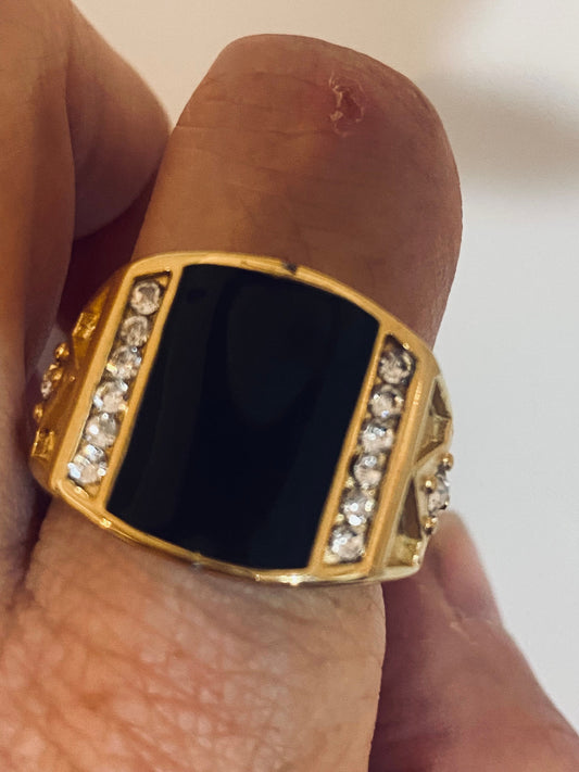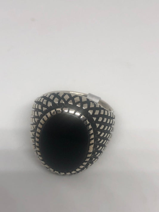 Vintage Gothic Sterling Silver Genuine Black Onyx Mens Ring