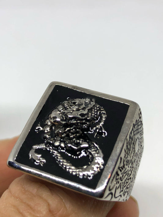 Vintage Gothic Silver Stainless Steel Dragon Mens Ring