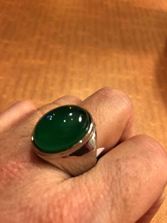 Vintage Gothic Silver Stainless Steel Genuine Green Onyx Mens Ring