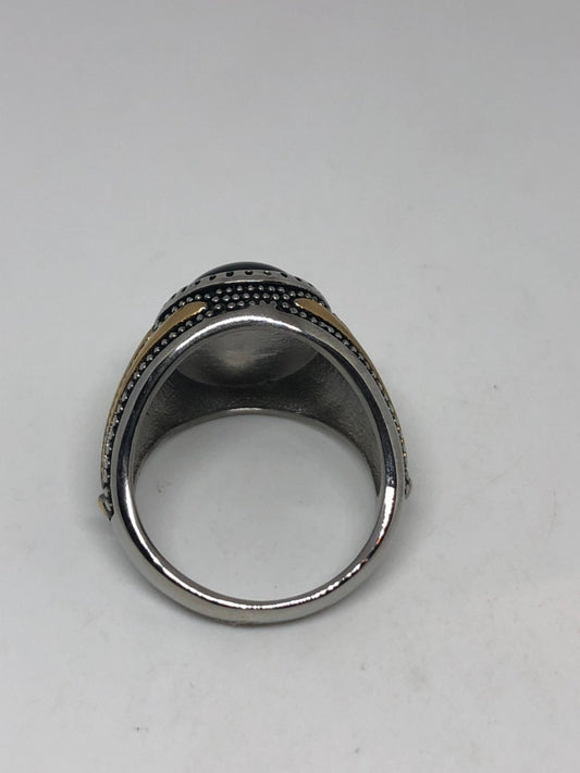 Vintage Gothic Black Onyx Stainless Steel Mens Ring
