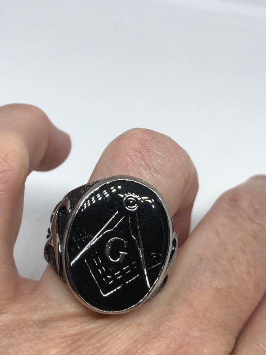 Vintage Gothic Stainless Steel Free Mason G Mens Ring