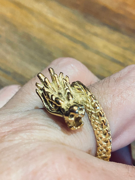 Vintage Gothic Golden Stainless Steel Dragon Mens Ring