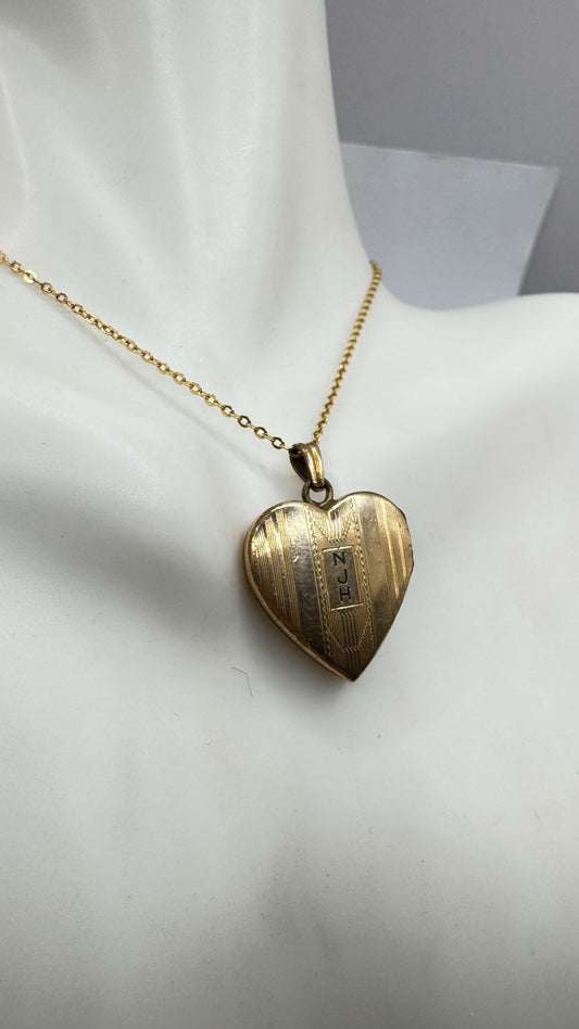 Vintage Green Jade Stone scarab Yellow 14k Gold Fill Necklace