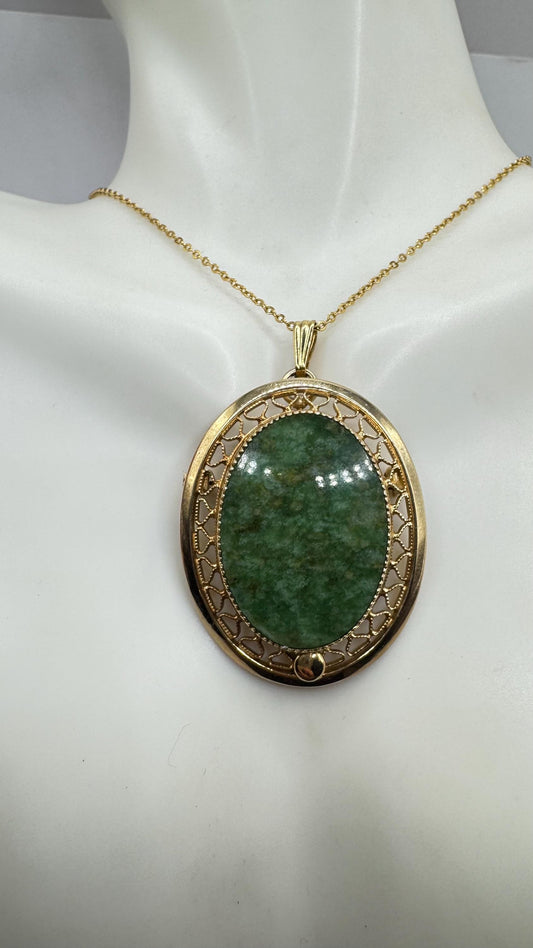 Vintage Green Jade Yellow Gold Filled Necklace pin brooch