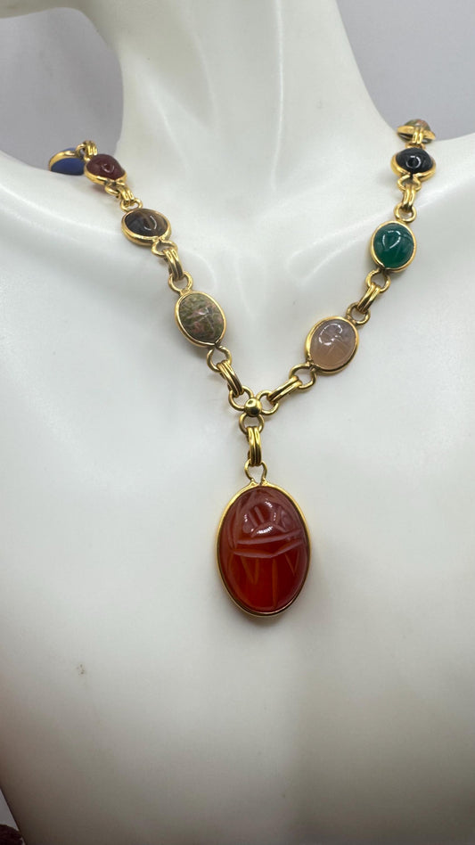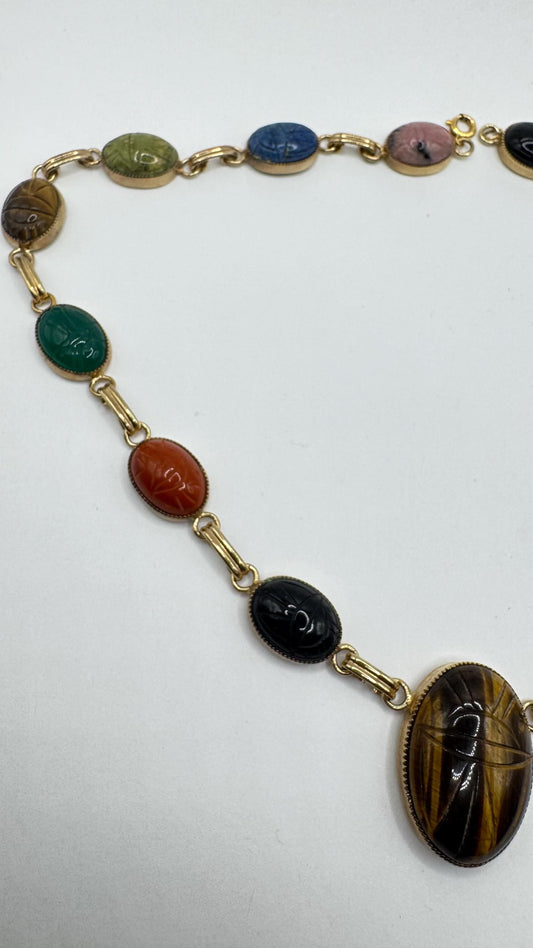 Vintage Carved Scarab Gemstone Gold Filled Choker Necklace
