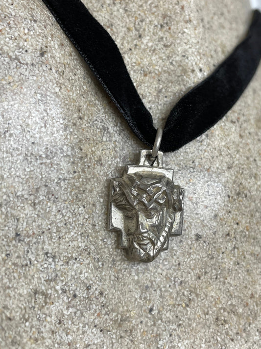 Vintage Jesus Amulet Choker 925 Sterling Silver Pendant Necklace