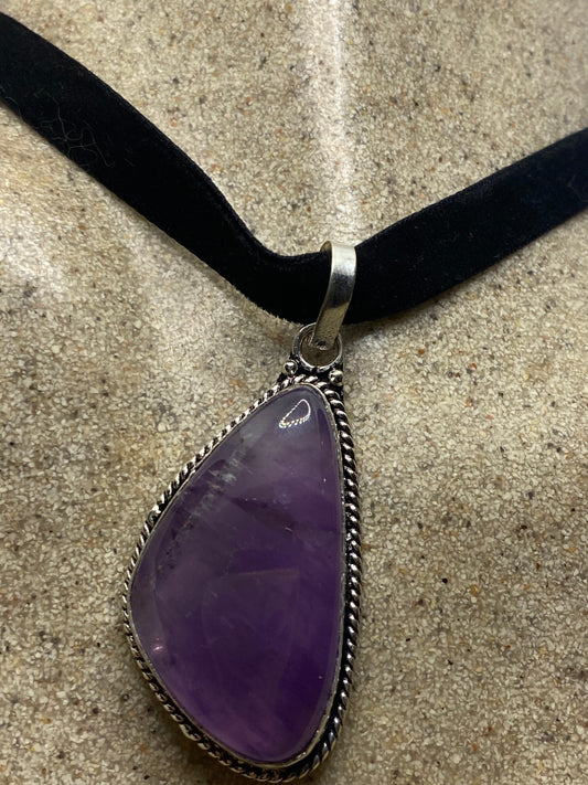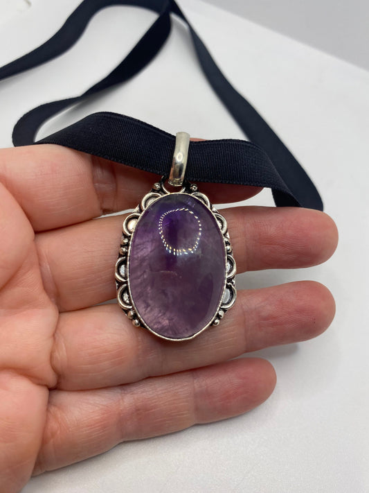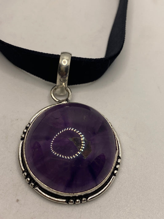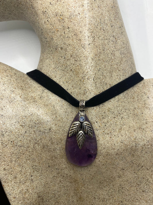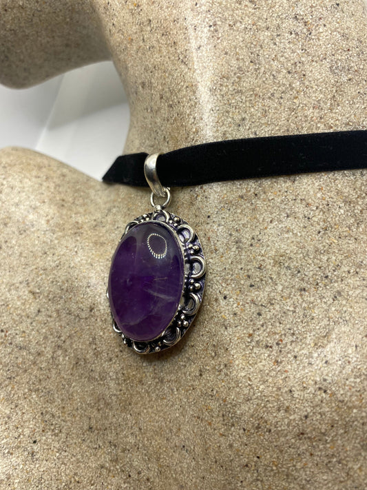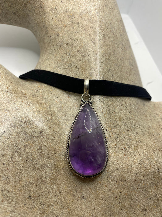 Vintage Purple Amethyst Choker Bohemian Cabochon Droplet Necklace