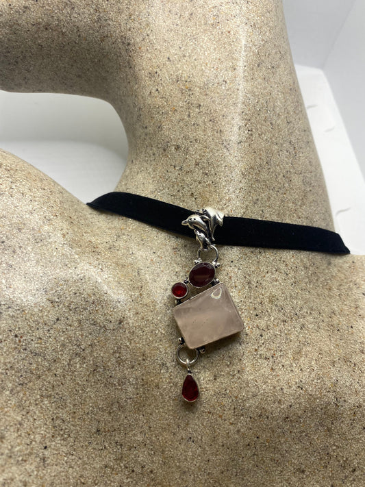 Vintage Antique Pink Rose Quartz Choker Necklace