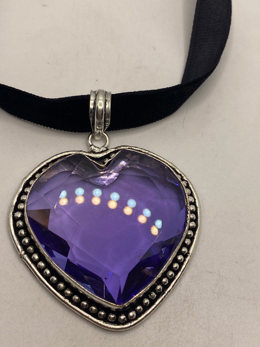 Vintage Heart Antique Purple Glass Choker Necklace