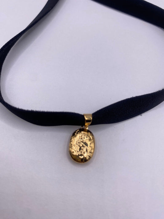 Vintage Locket Choker Gold Filled Deco Etched Necklace
