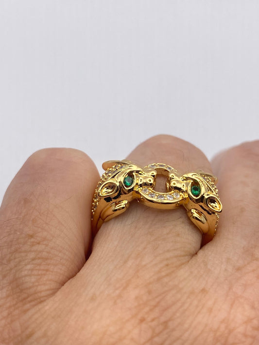 Vintage Cat Cougar Ring Gold filled Deco Cocktail