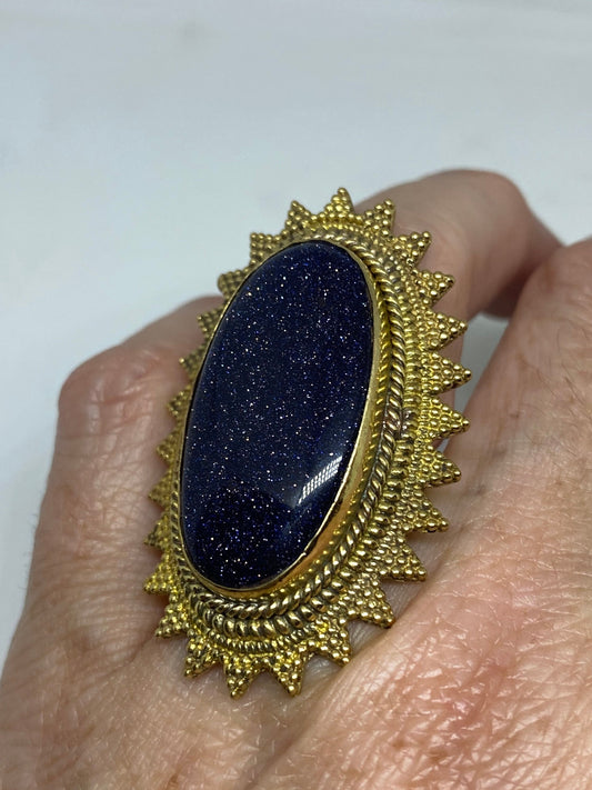 Vintage Genuine Black Sandstone Golden Bronze Ring Size 8.5