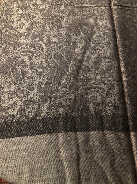 Gray Vintage Paisley Brocade Pashmina Scarf Wrap Shawl