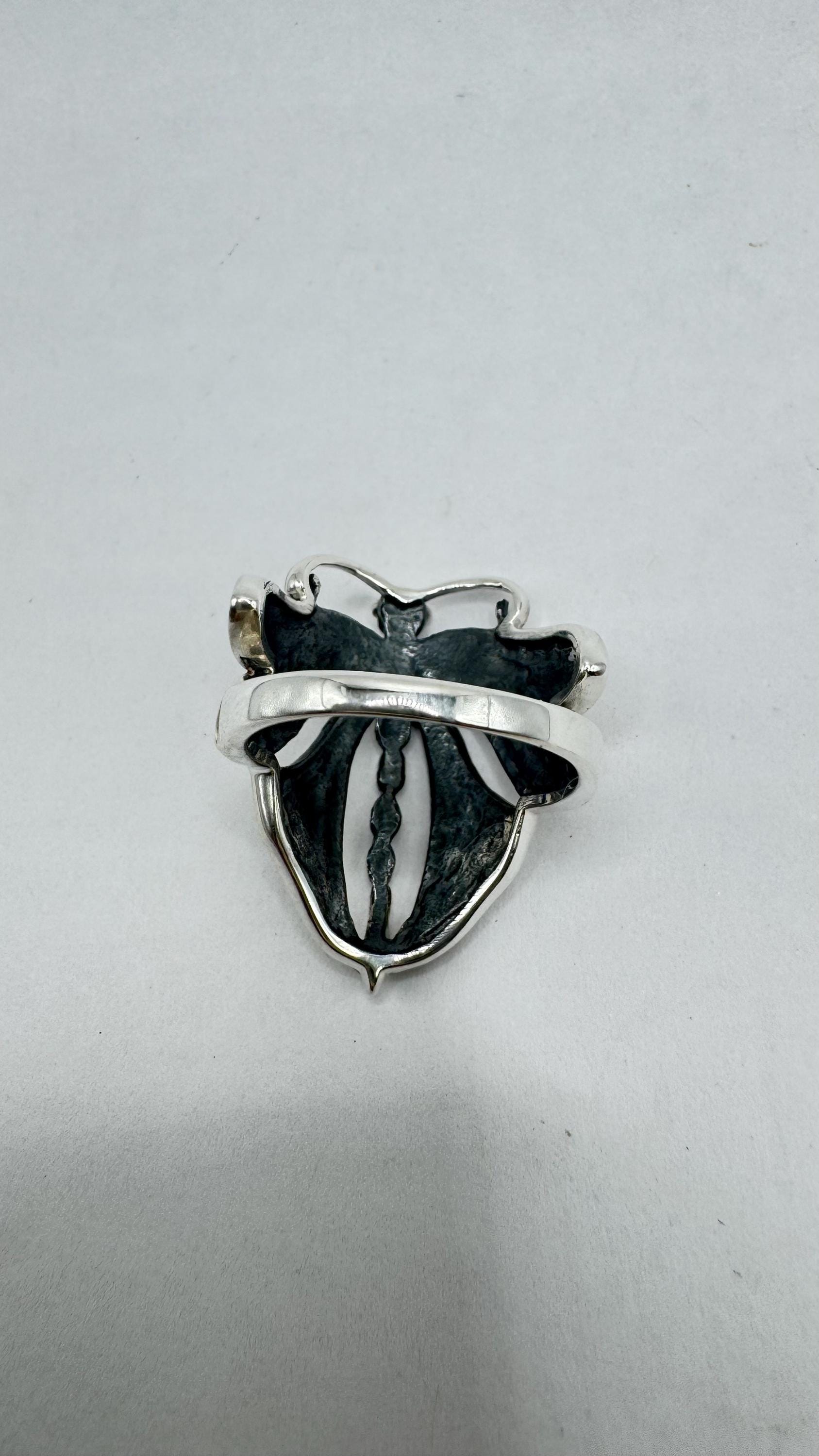 Lovely polished 925 sterling silver has the look of Deco with a huge white Mother Of Pearl inlaid Lunar moth very detailed vintage