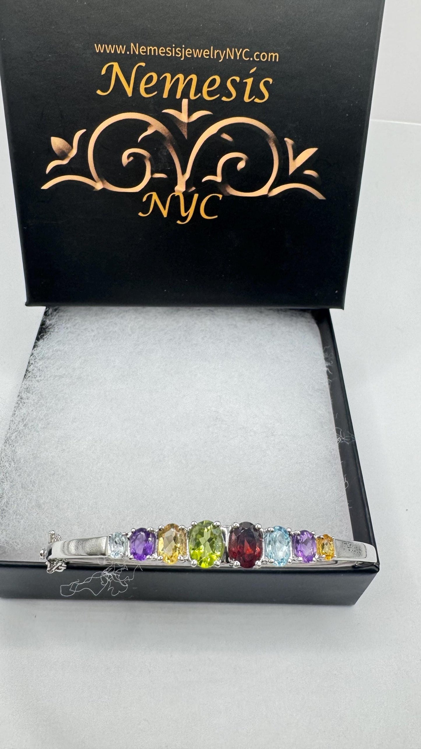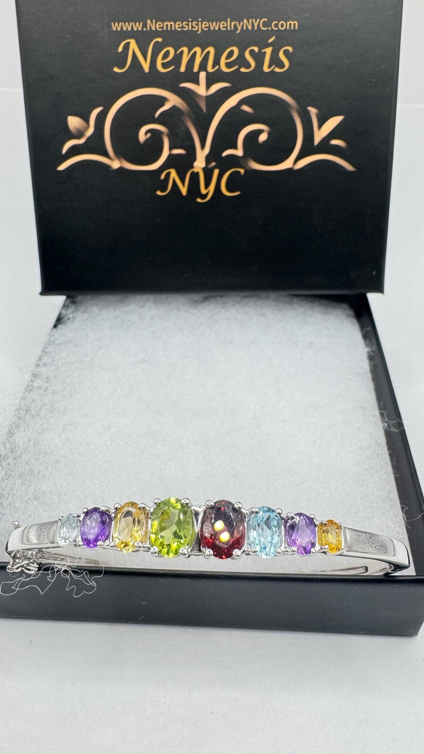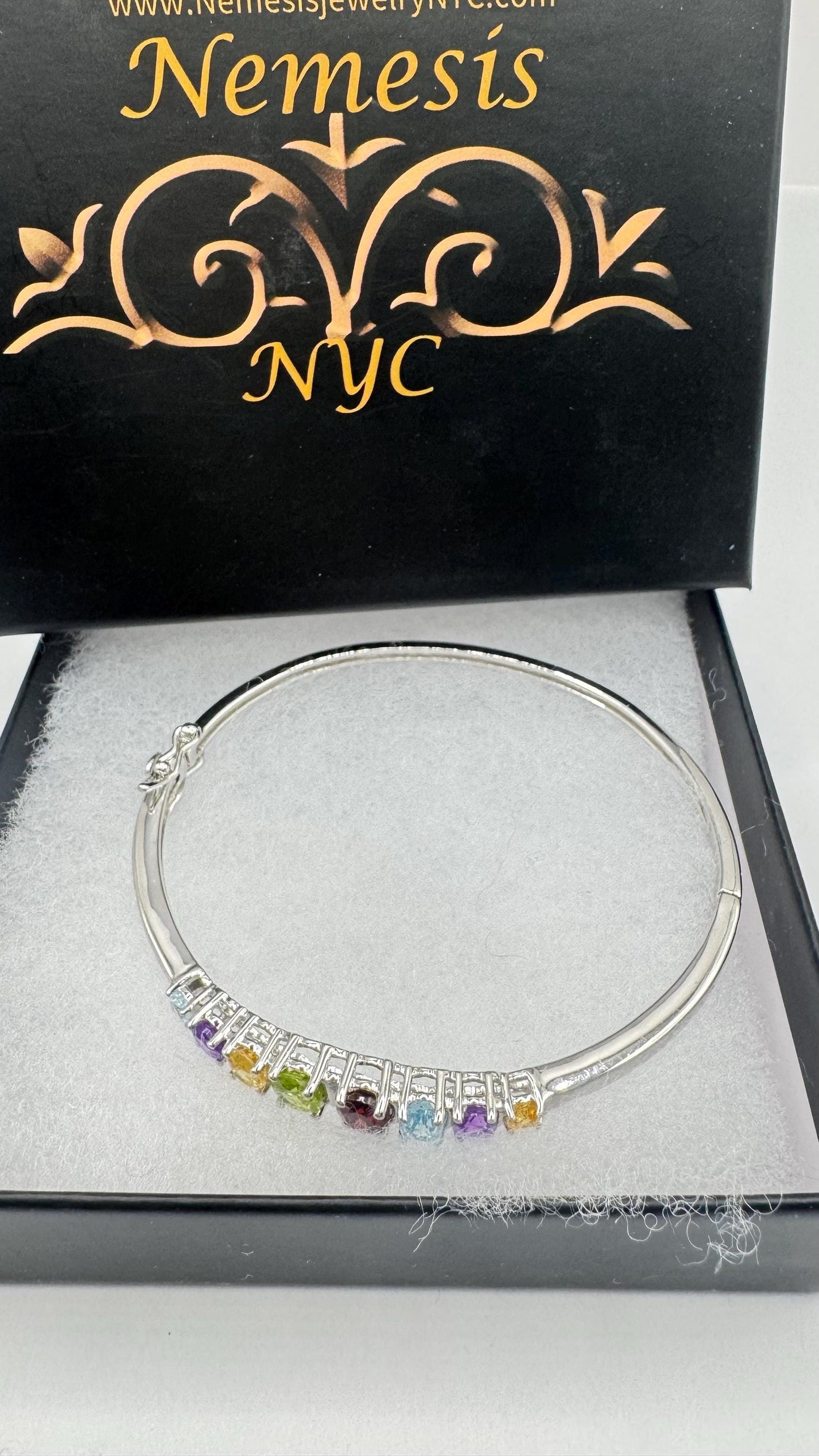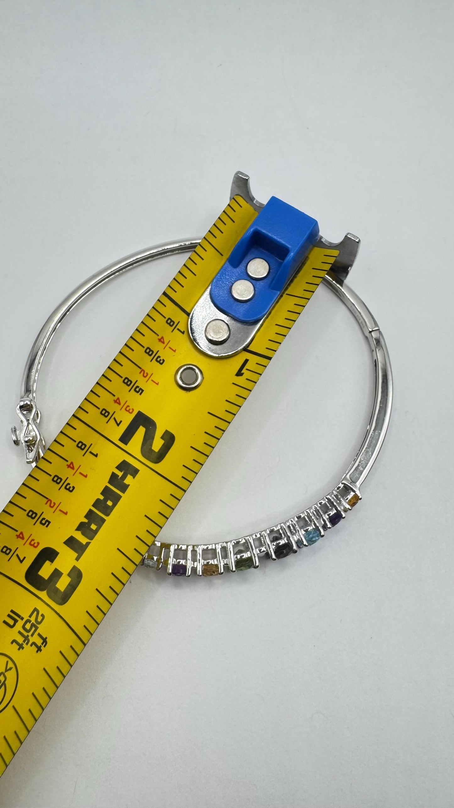 Genuine Mixed Gemstones in 925 Sterling Silver Deco Bangle Bracelet