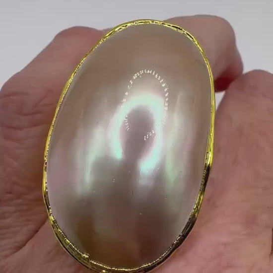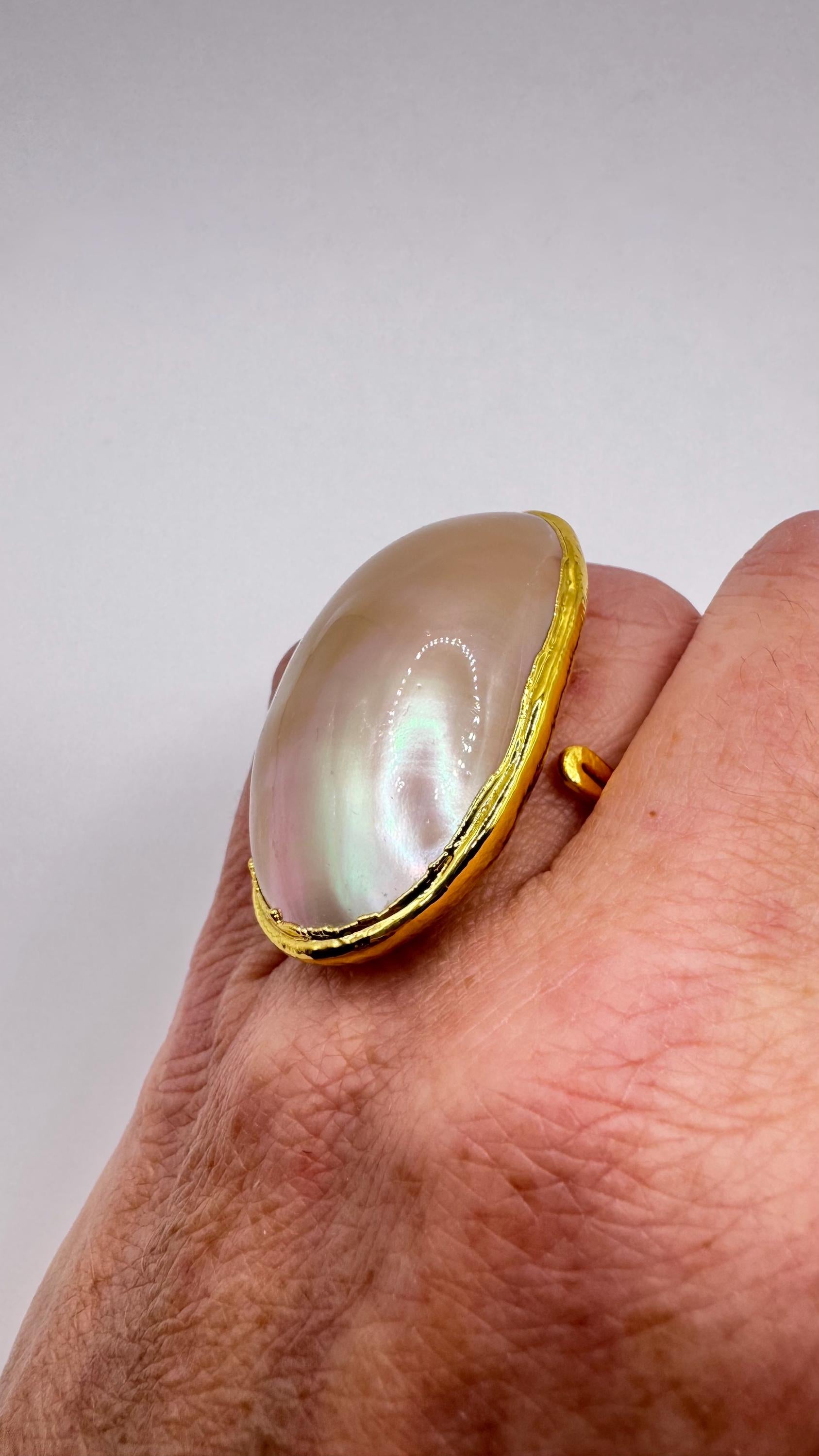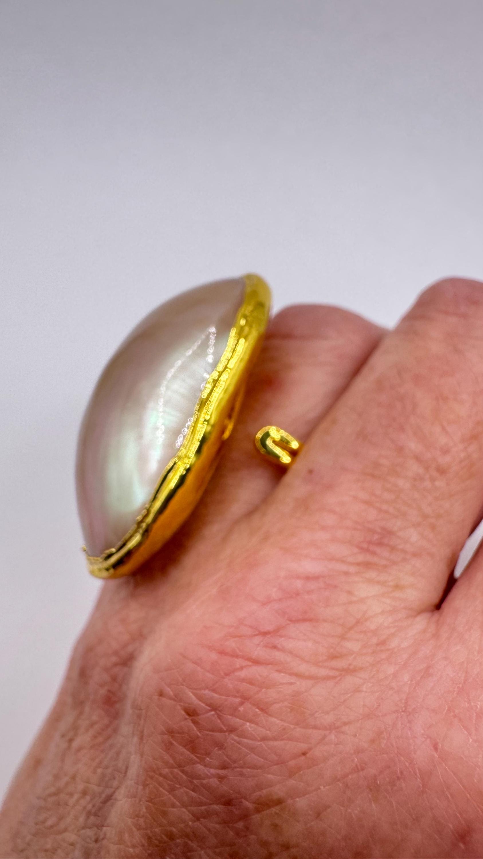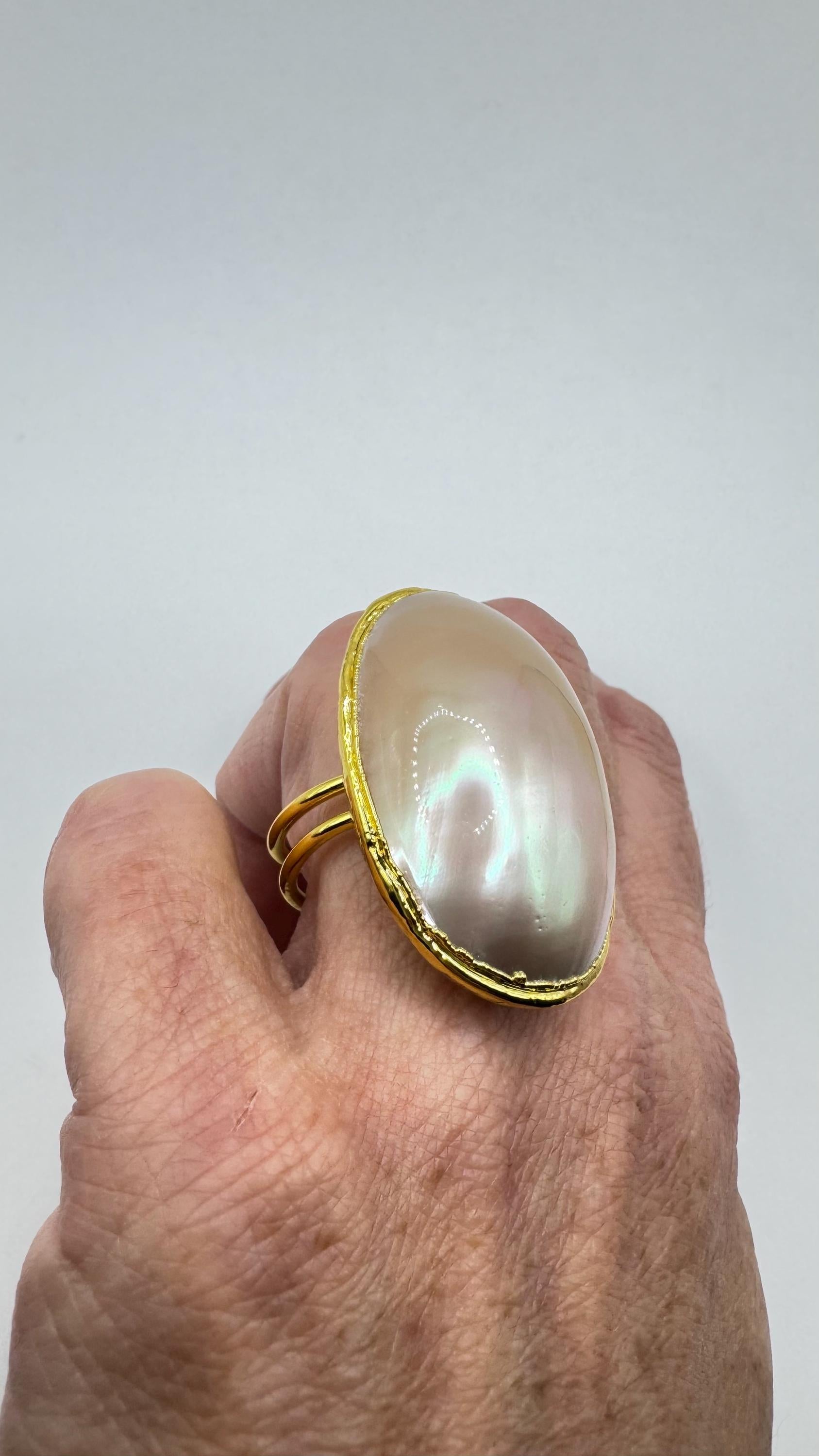 Vintage Biwa white pearl Ring Golden 925 Sterling Silver Cocktail Statement