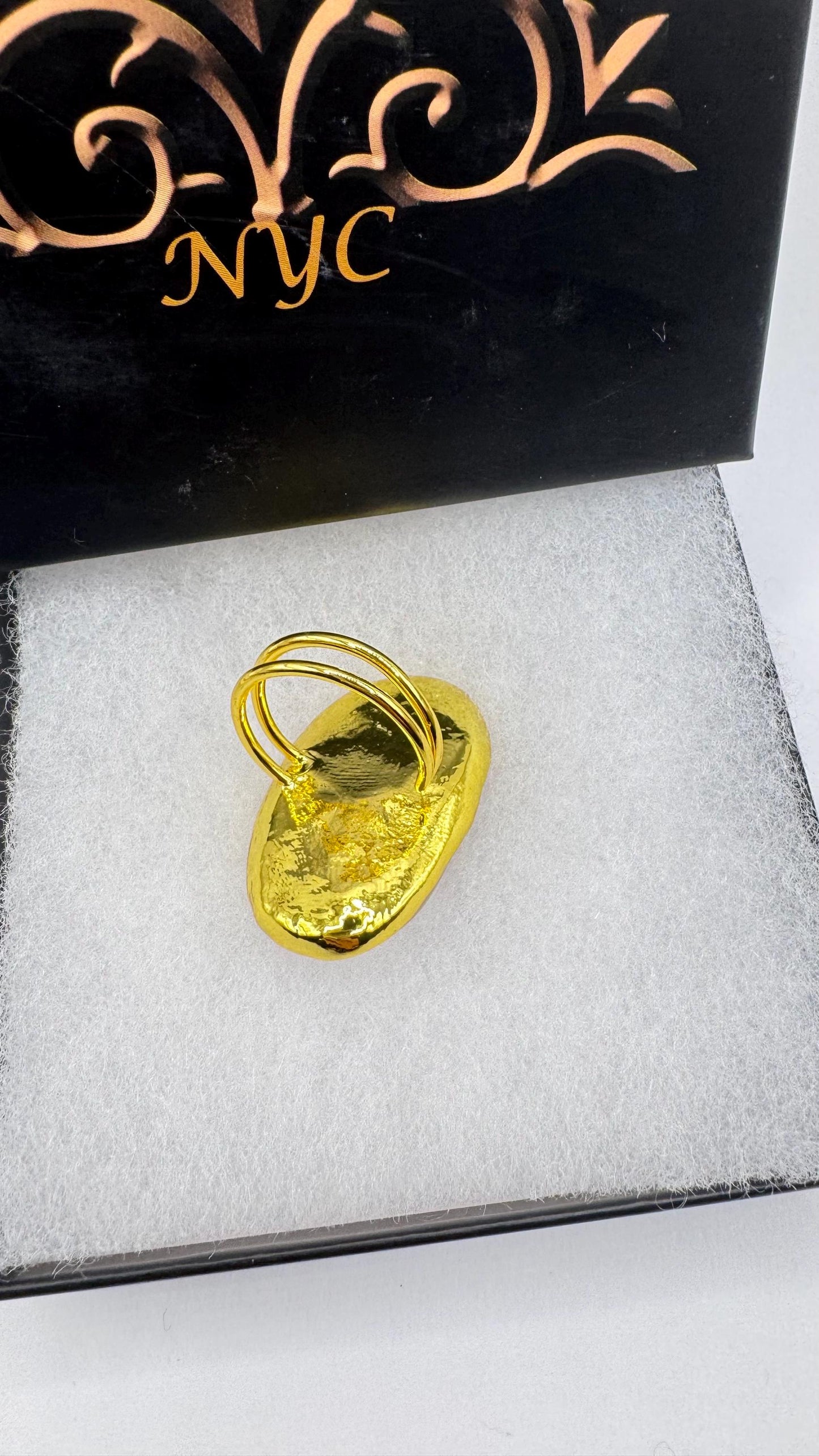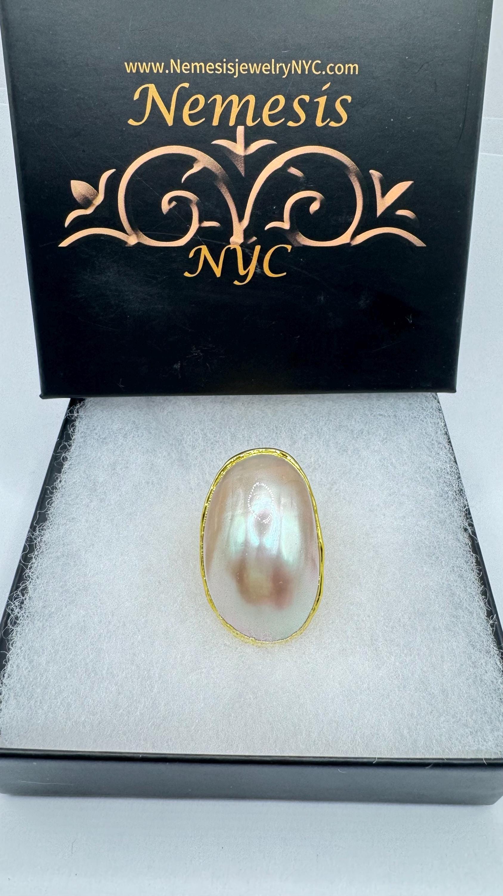 Vintage Biwa Pearl Ring Golden 925 Sterling Silver Cocktail Statement Adjustable