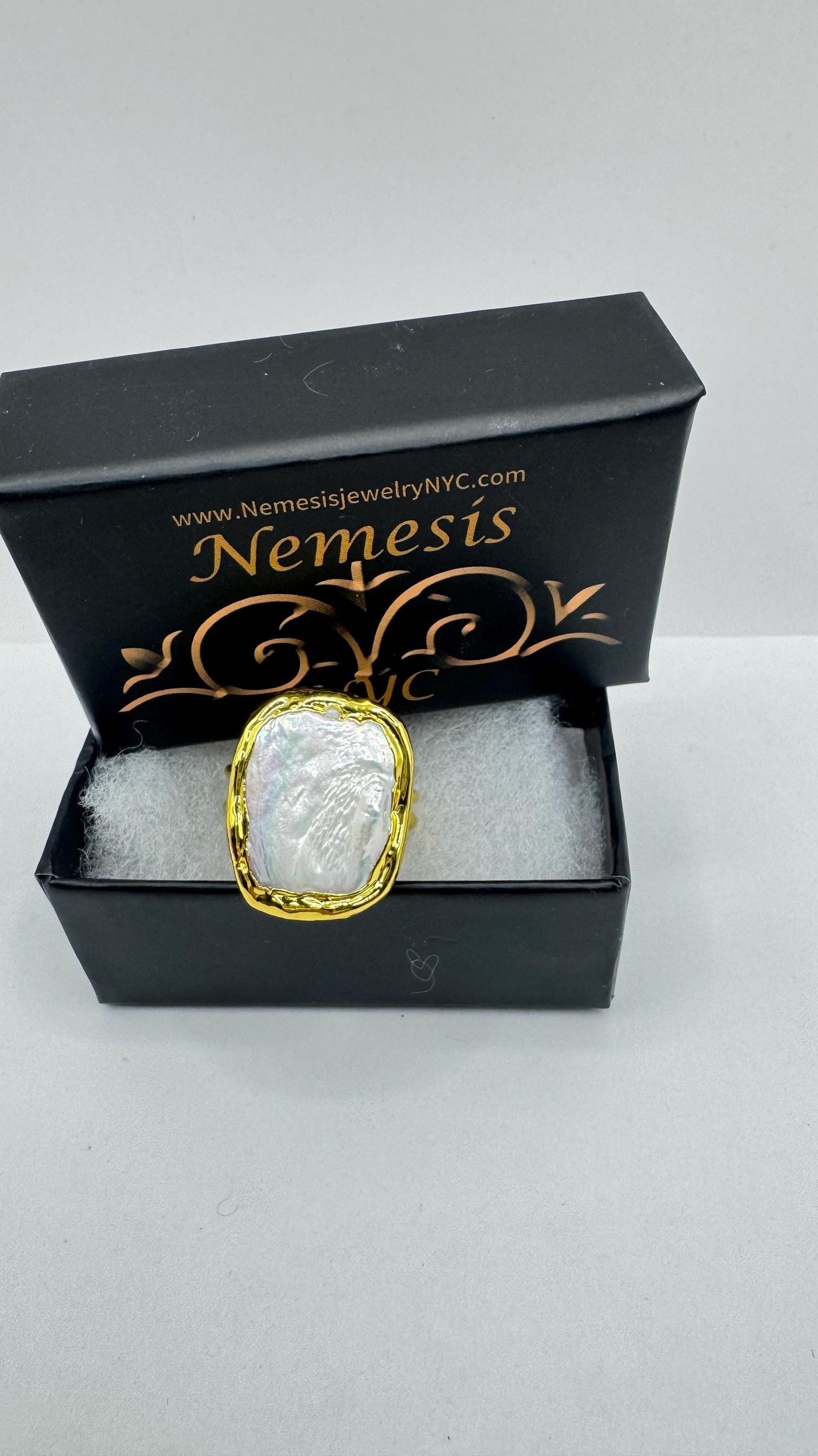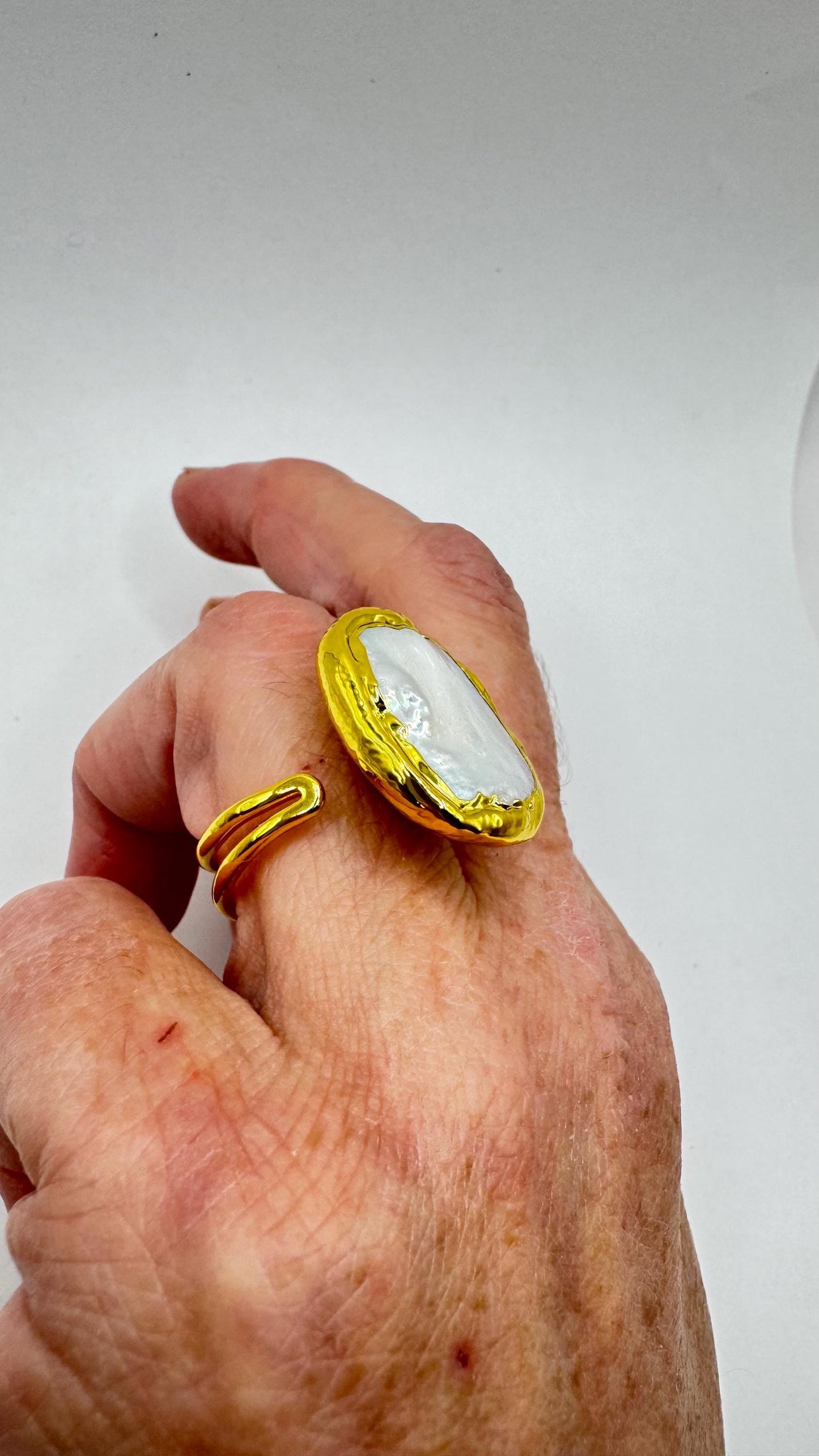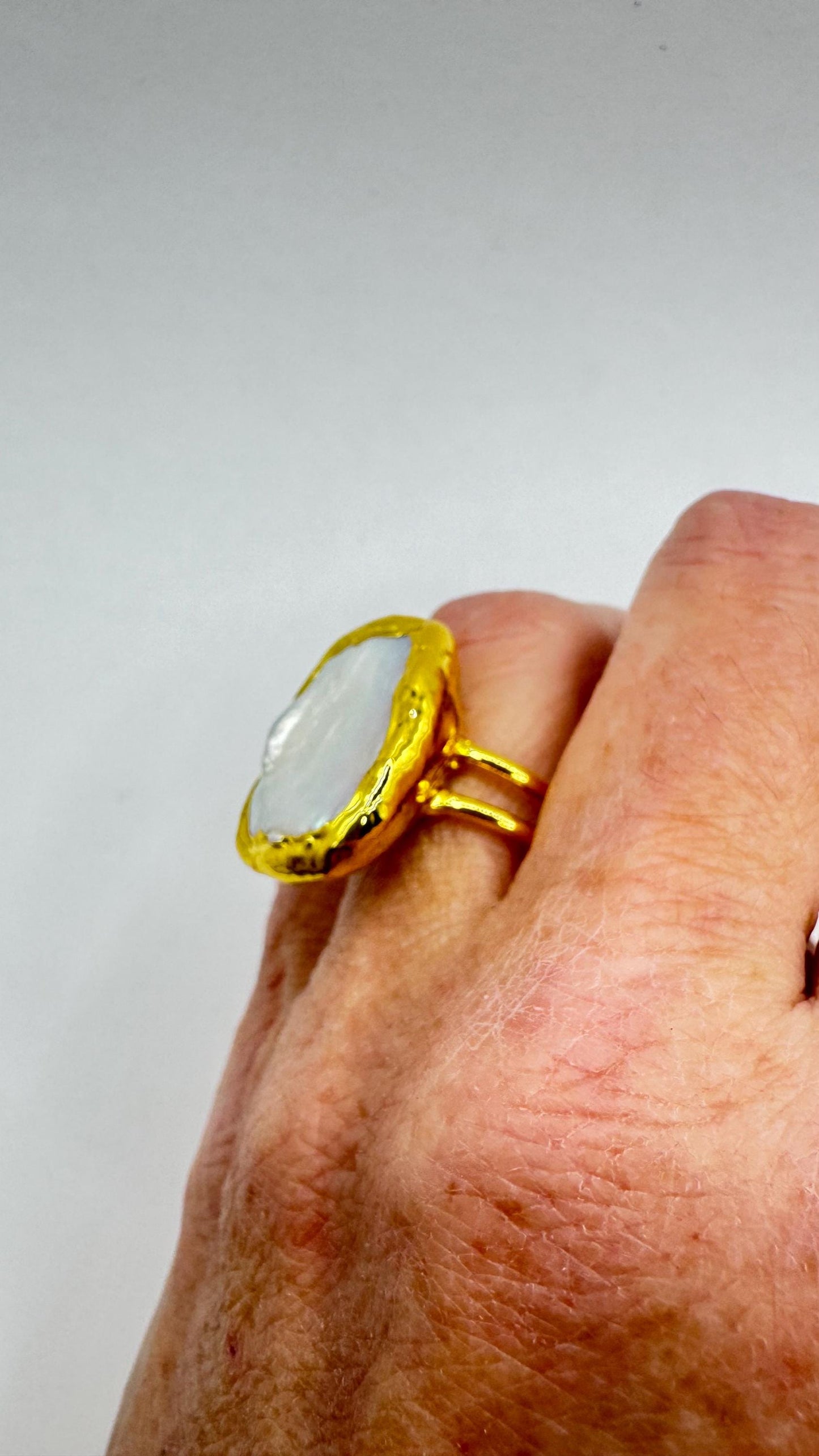 Vintage Biwa white pearl Ring Golden 925 Sterling Silver Cocktail Statement