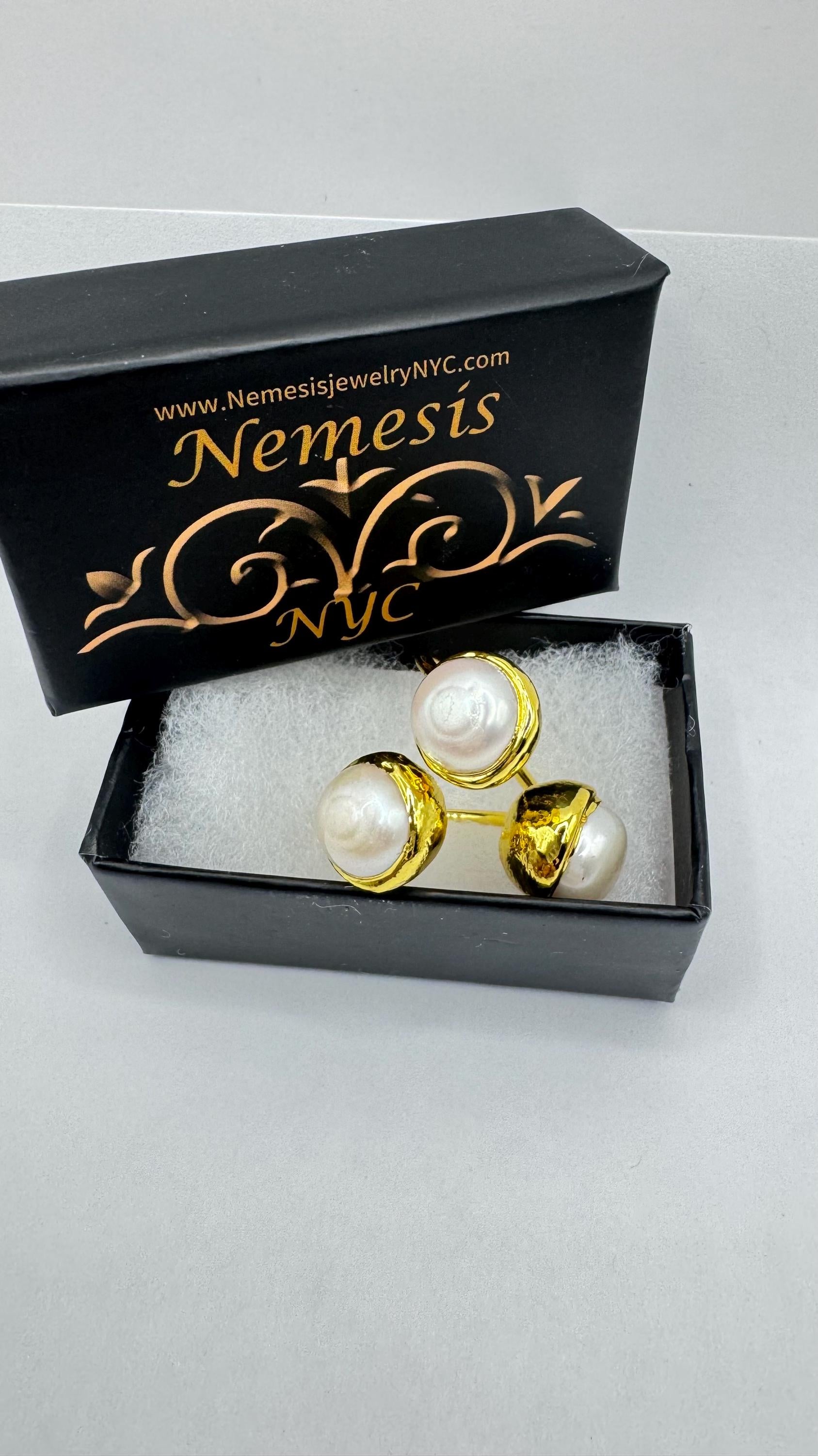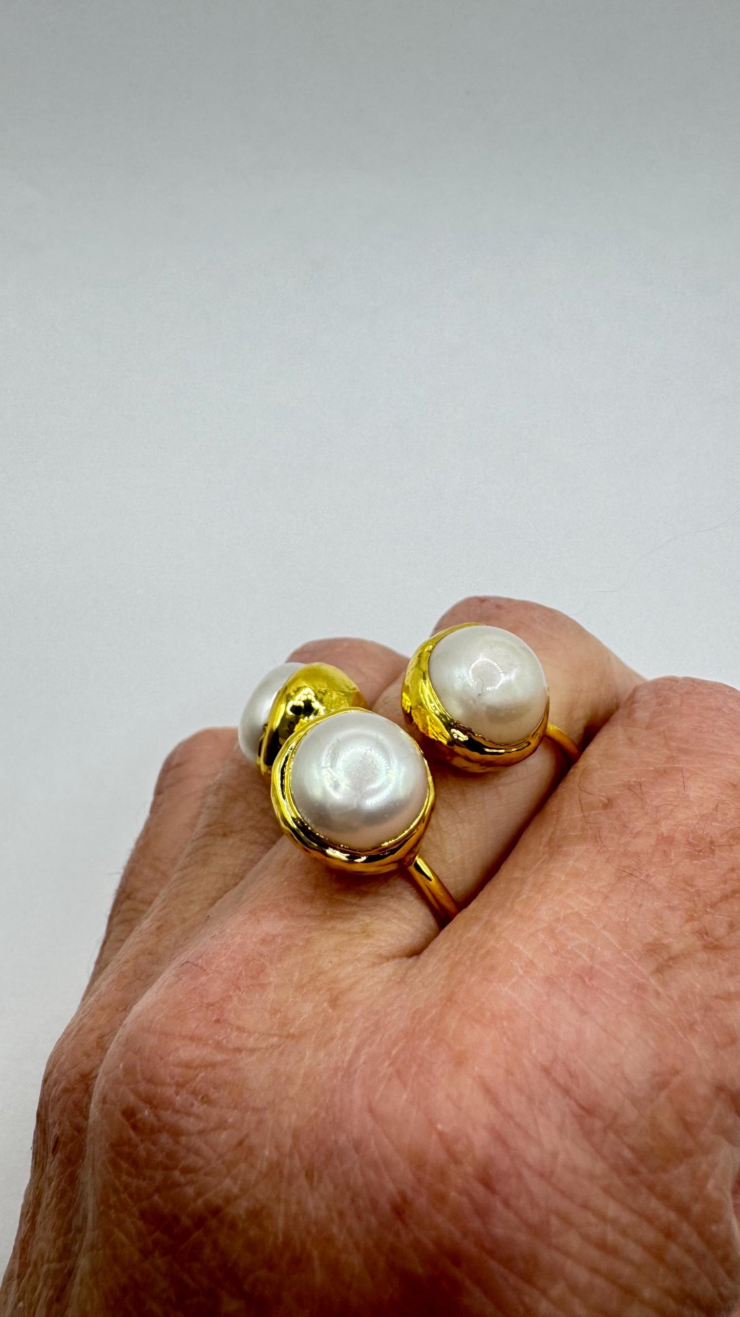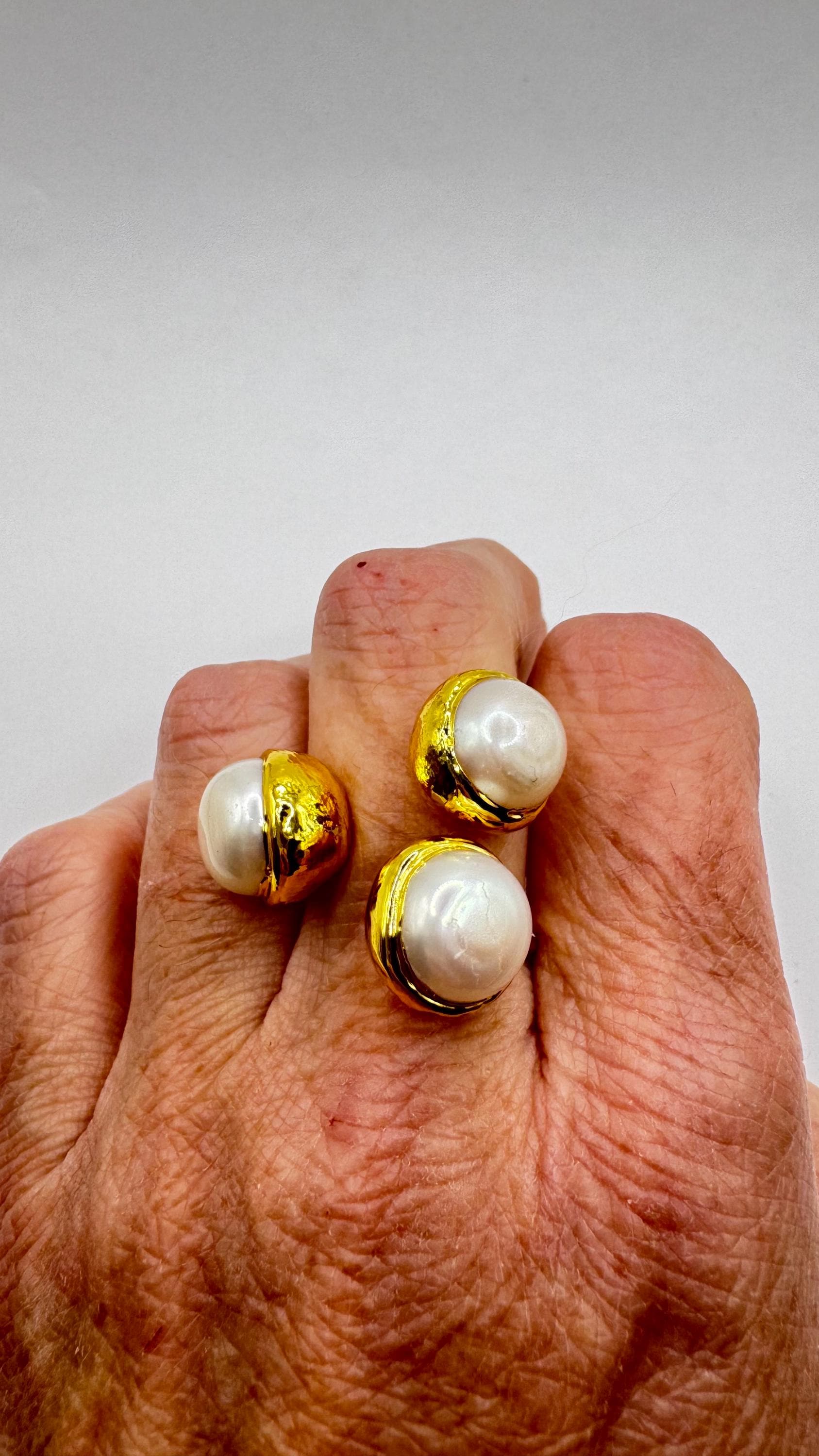 Vintage Biwa white pearl Ring Golden 925 Sterling Silver Cocktail Statement