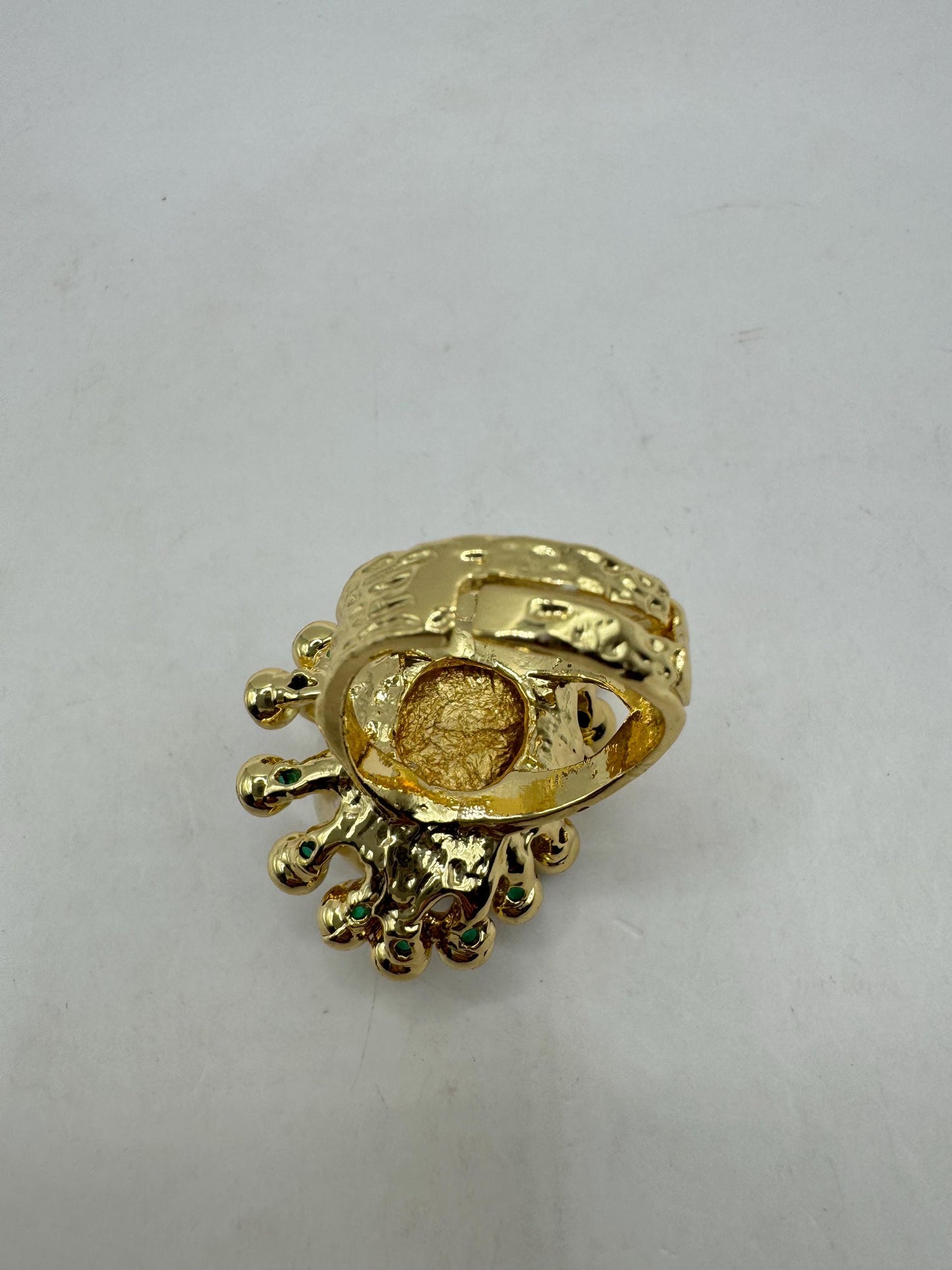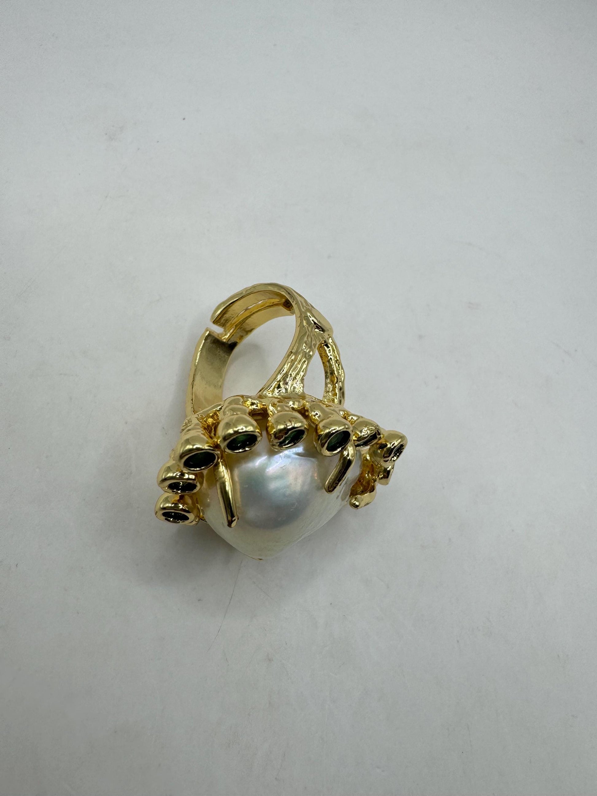Vintage Biwa Pearl Ring Golden 925 Sterling Silver Cocktail Statement Adjustable