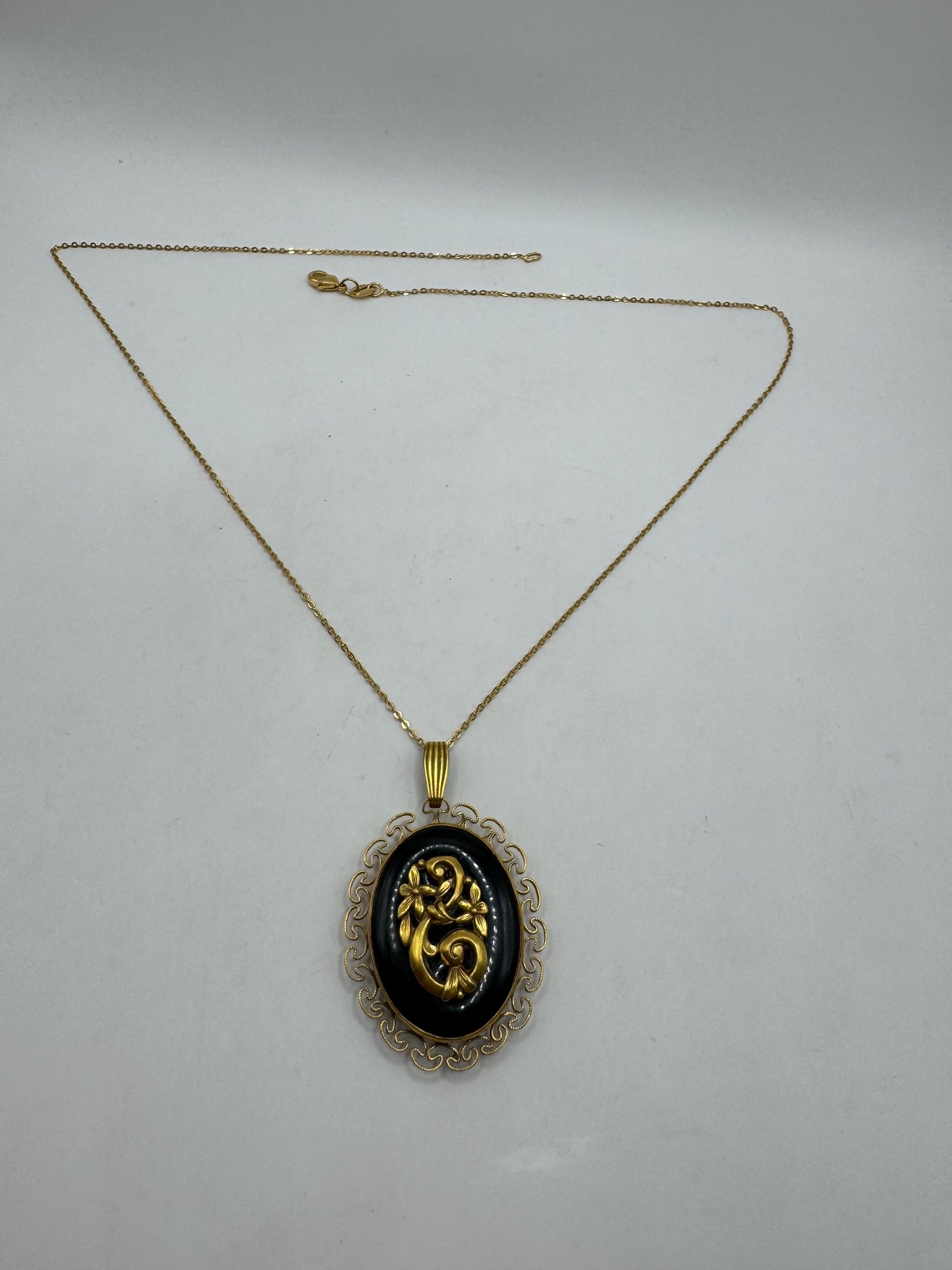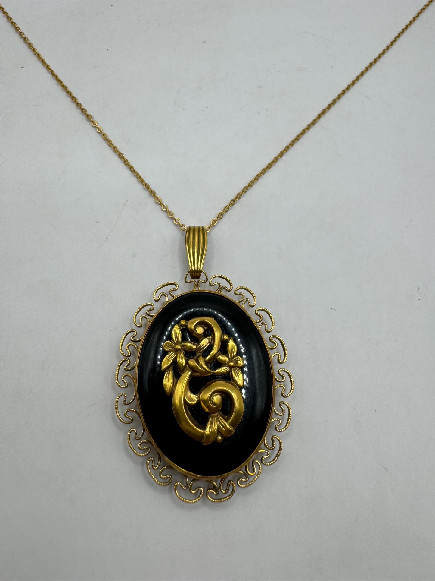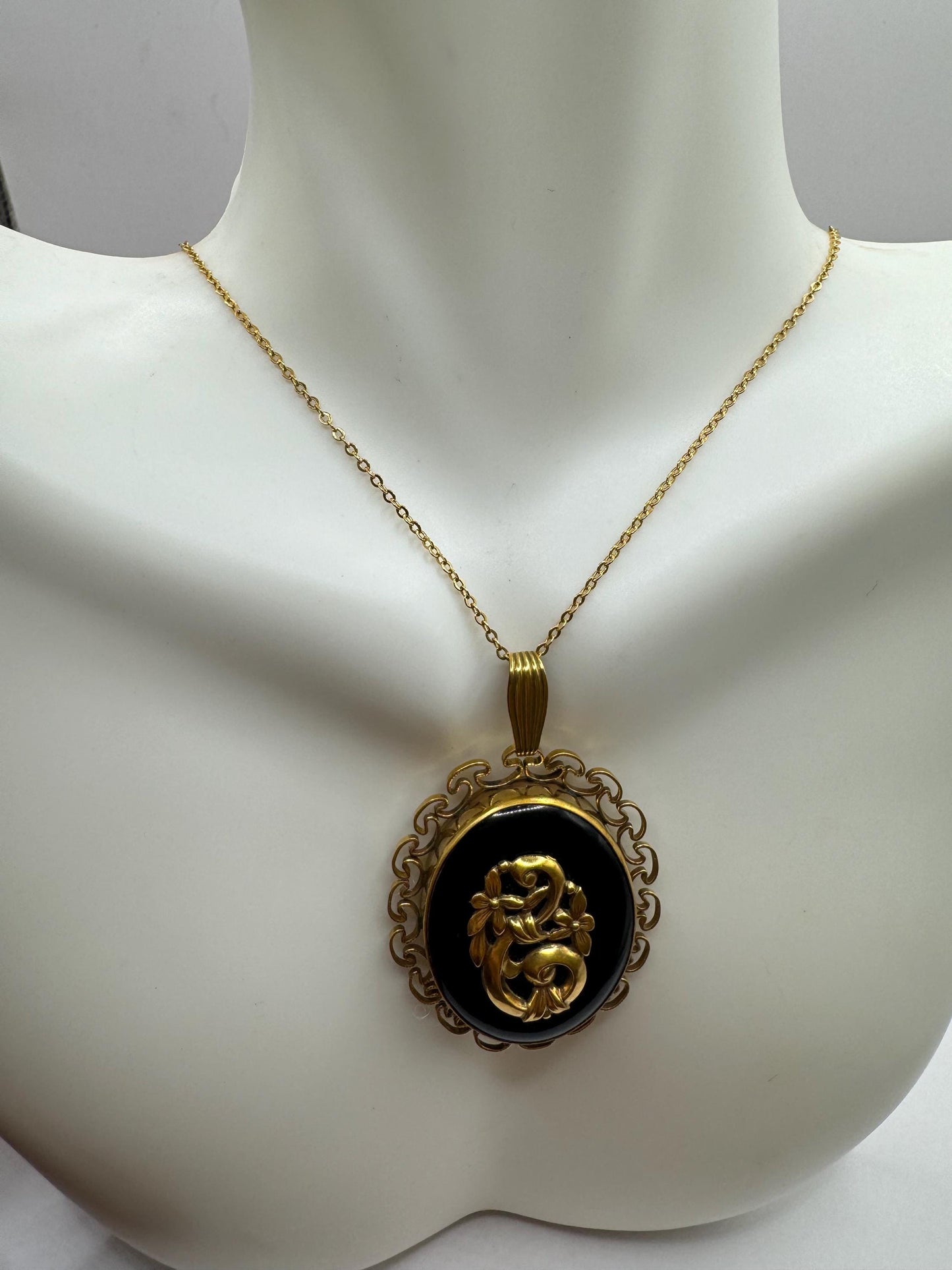 Vintage Black Enamel Locket Choker Gold Filled Necklace