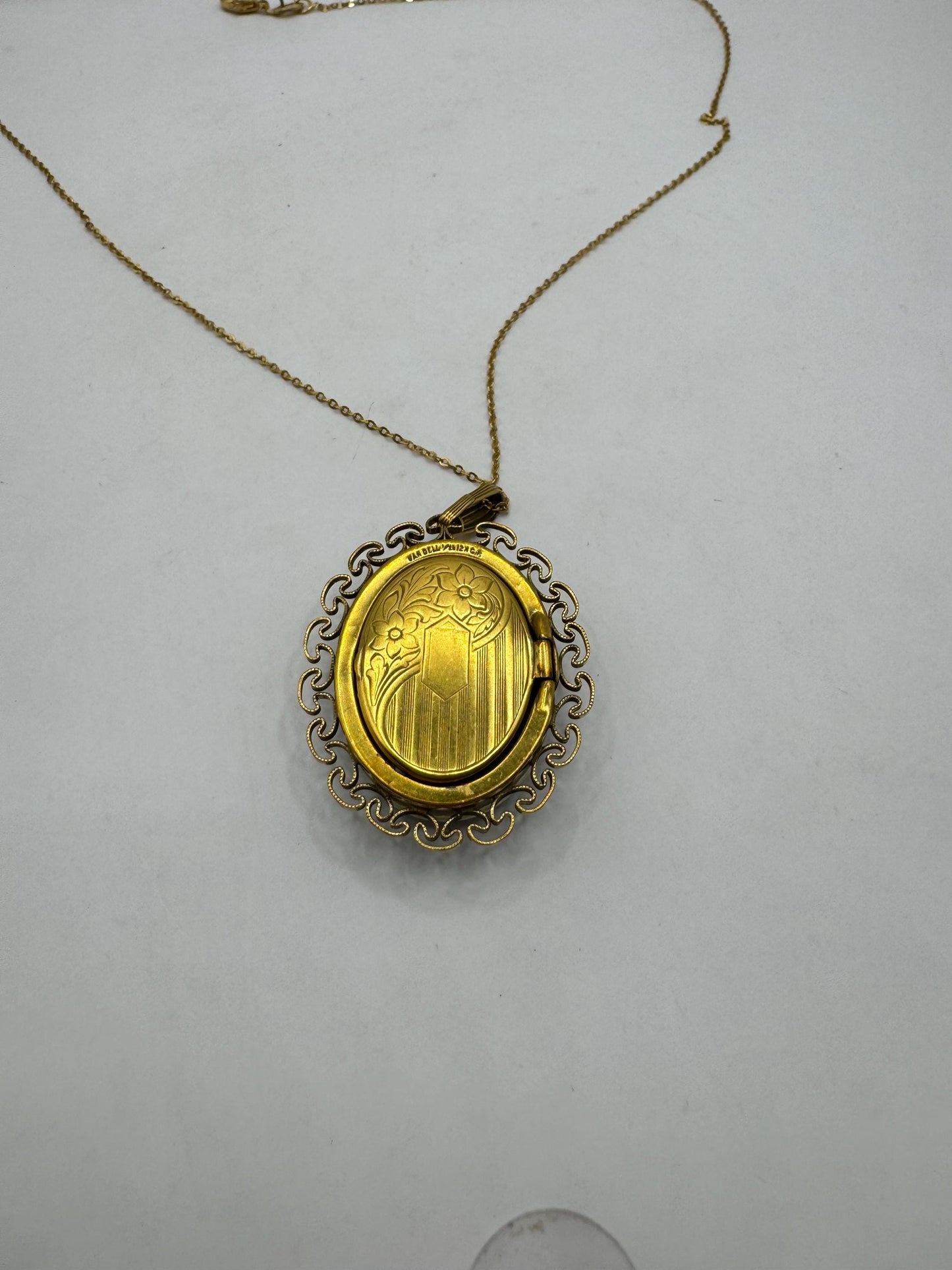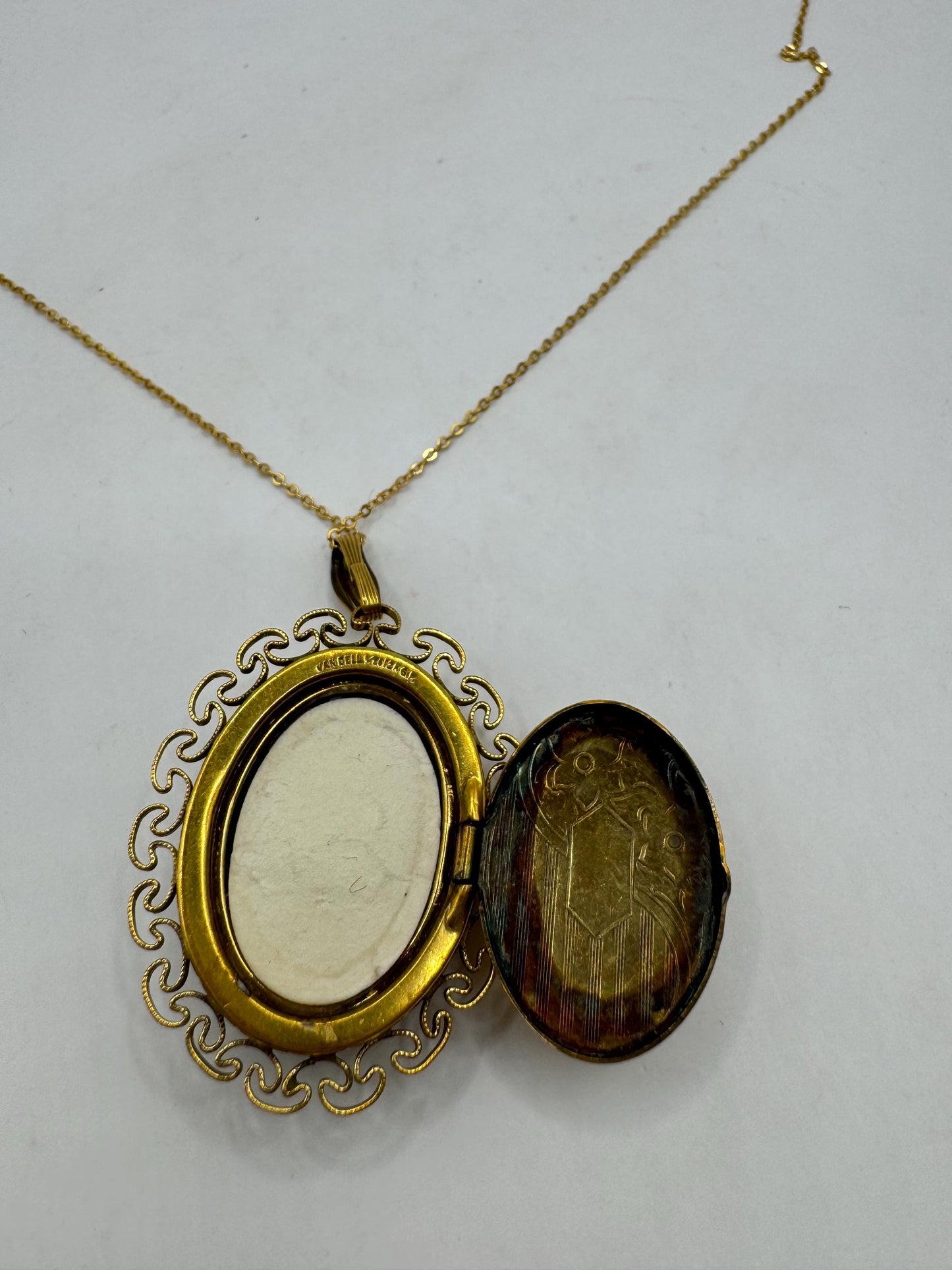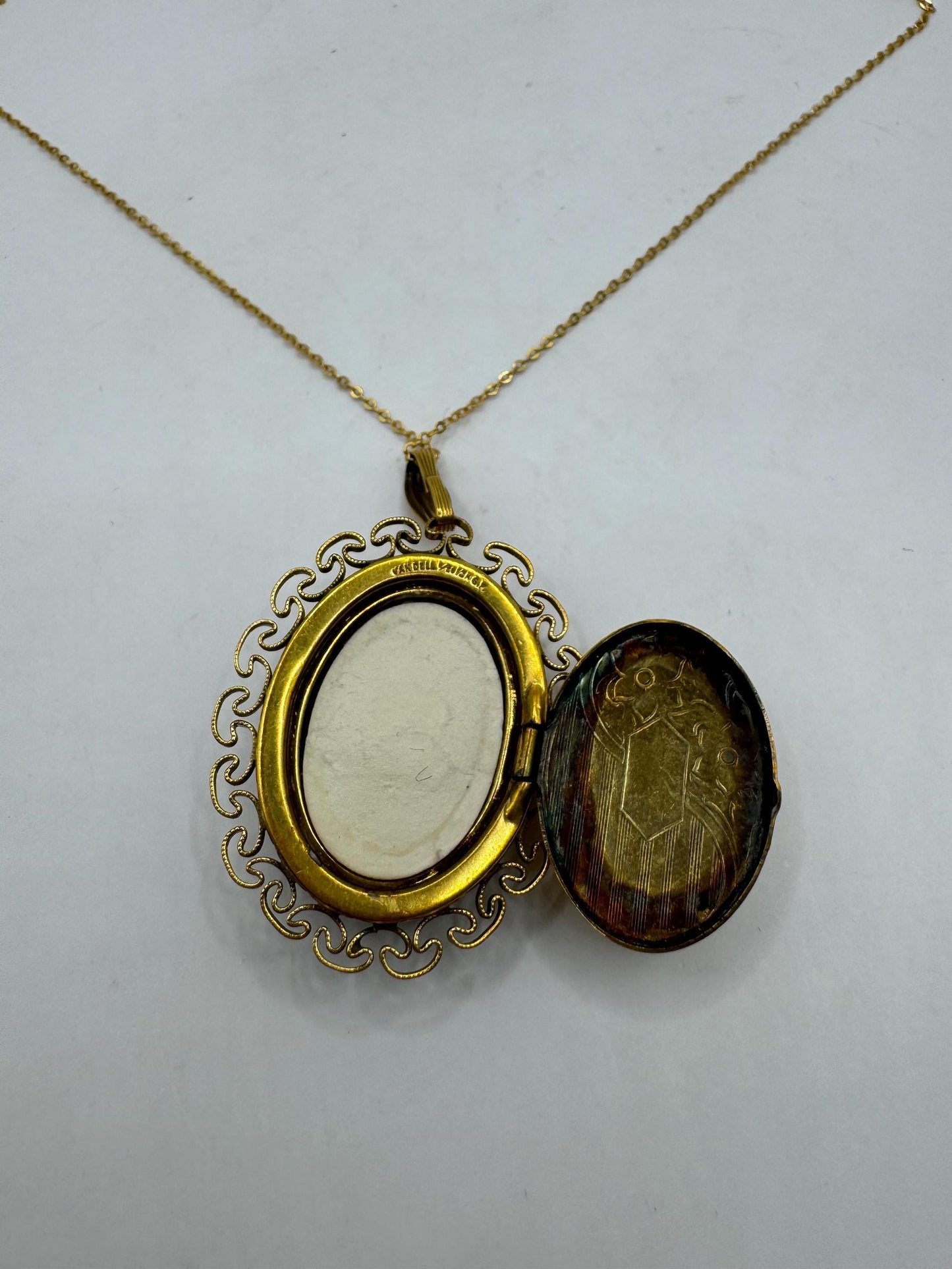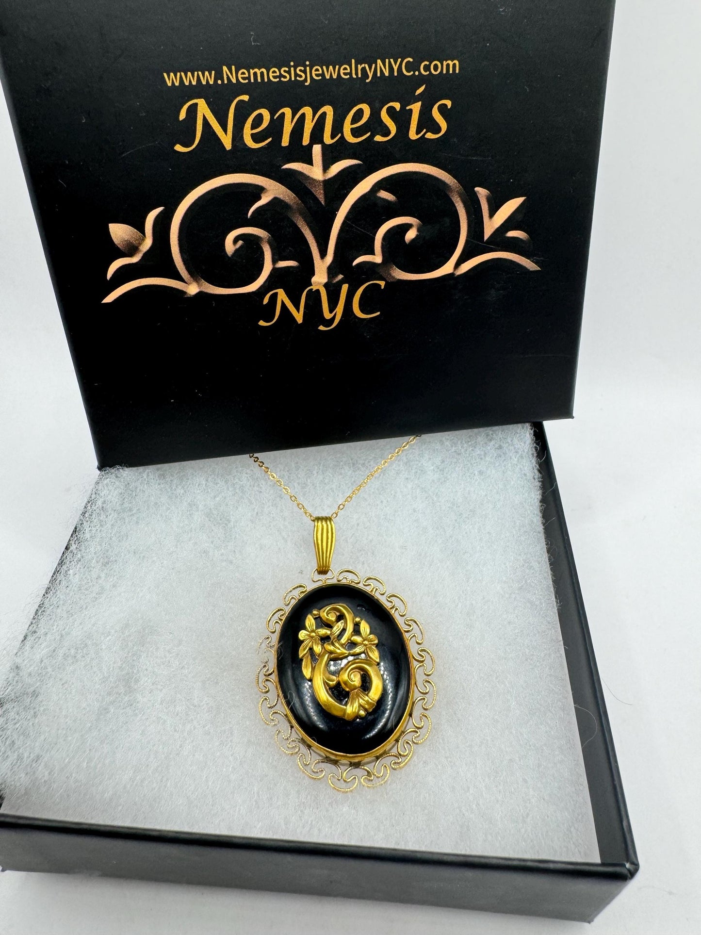 Vintage Black Enamel Locket Choker Gold Filled Necklace