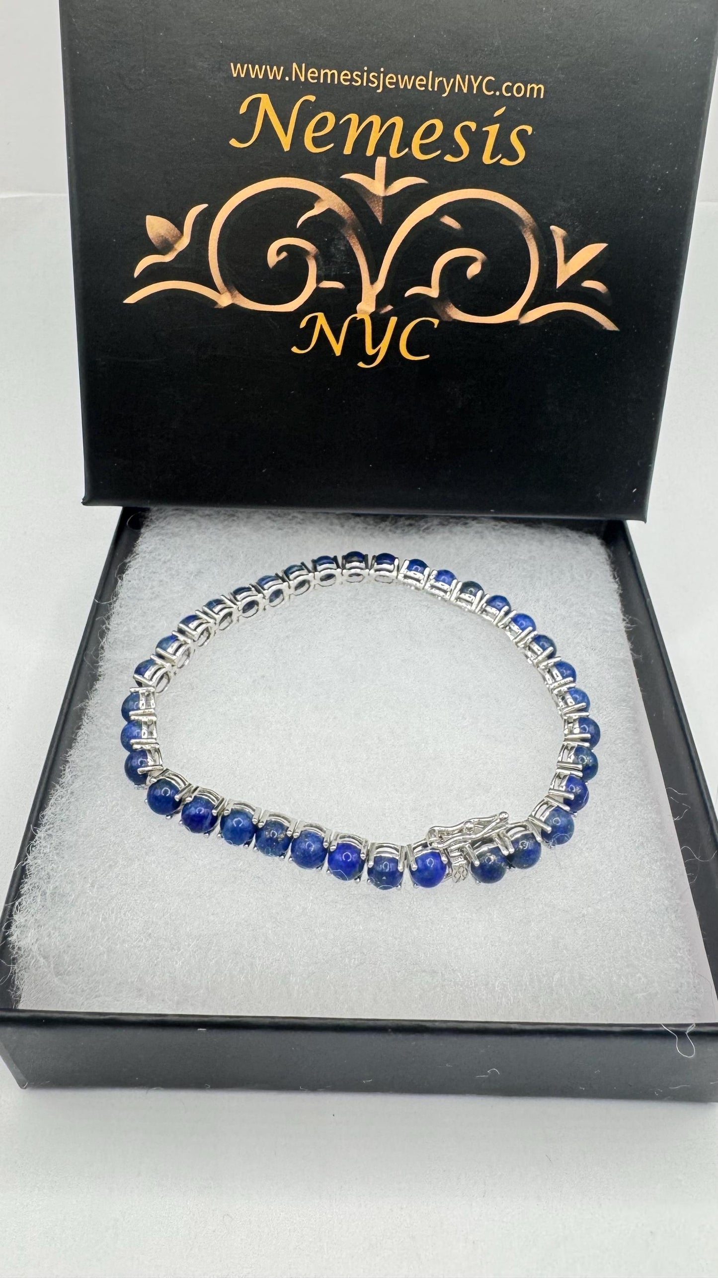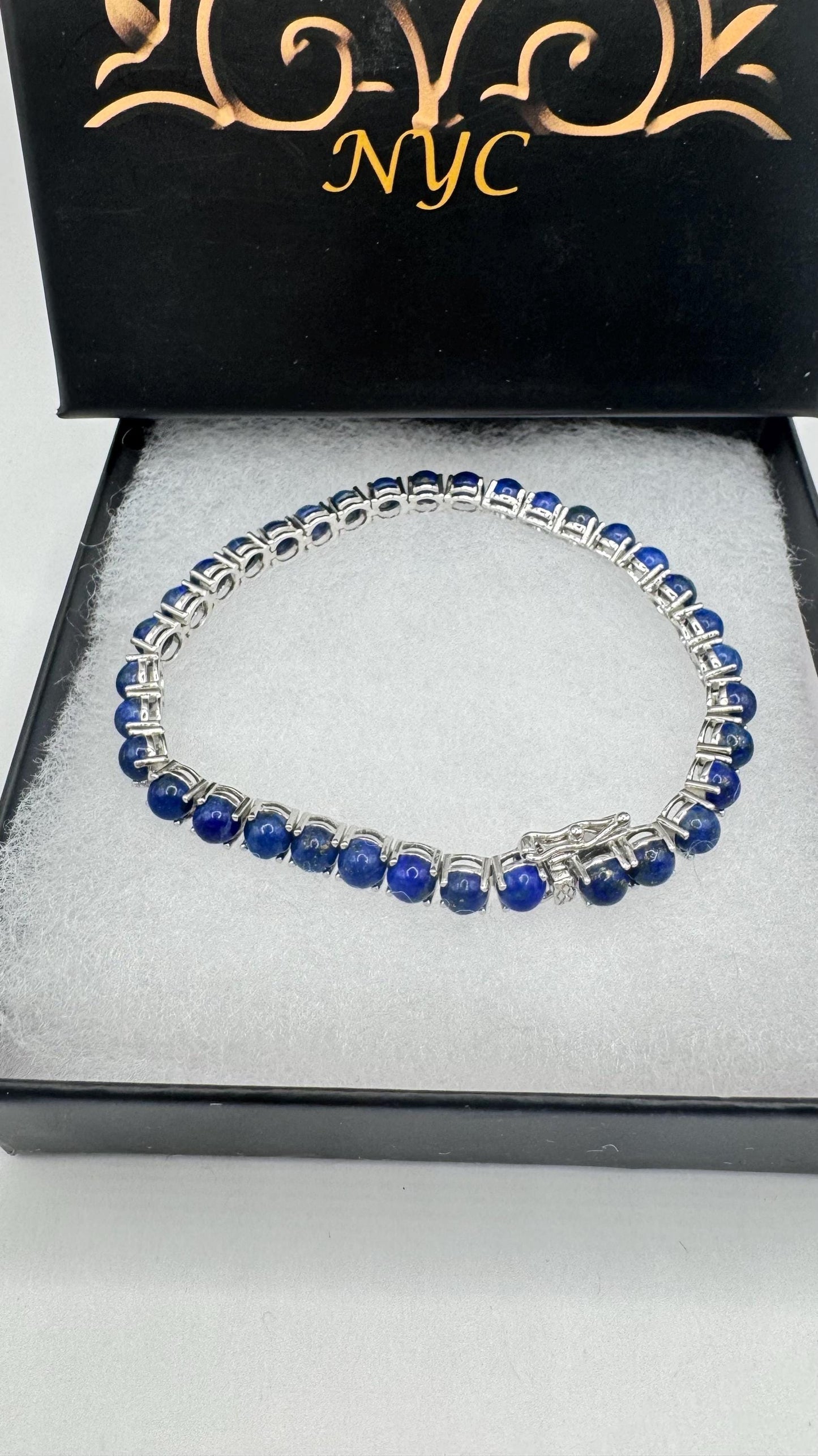Vintage Blue Lapis Tennis Bracelet 925 sterling silver
