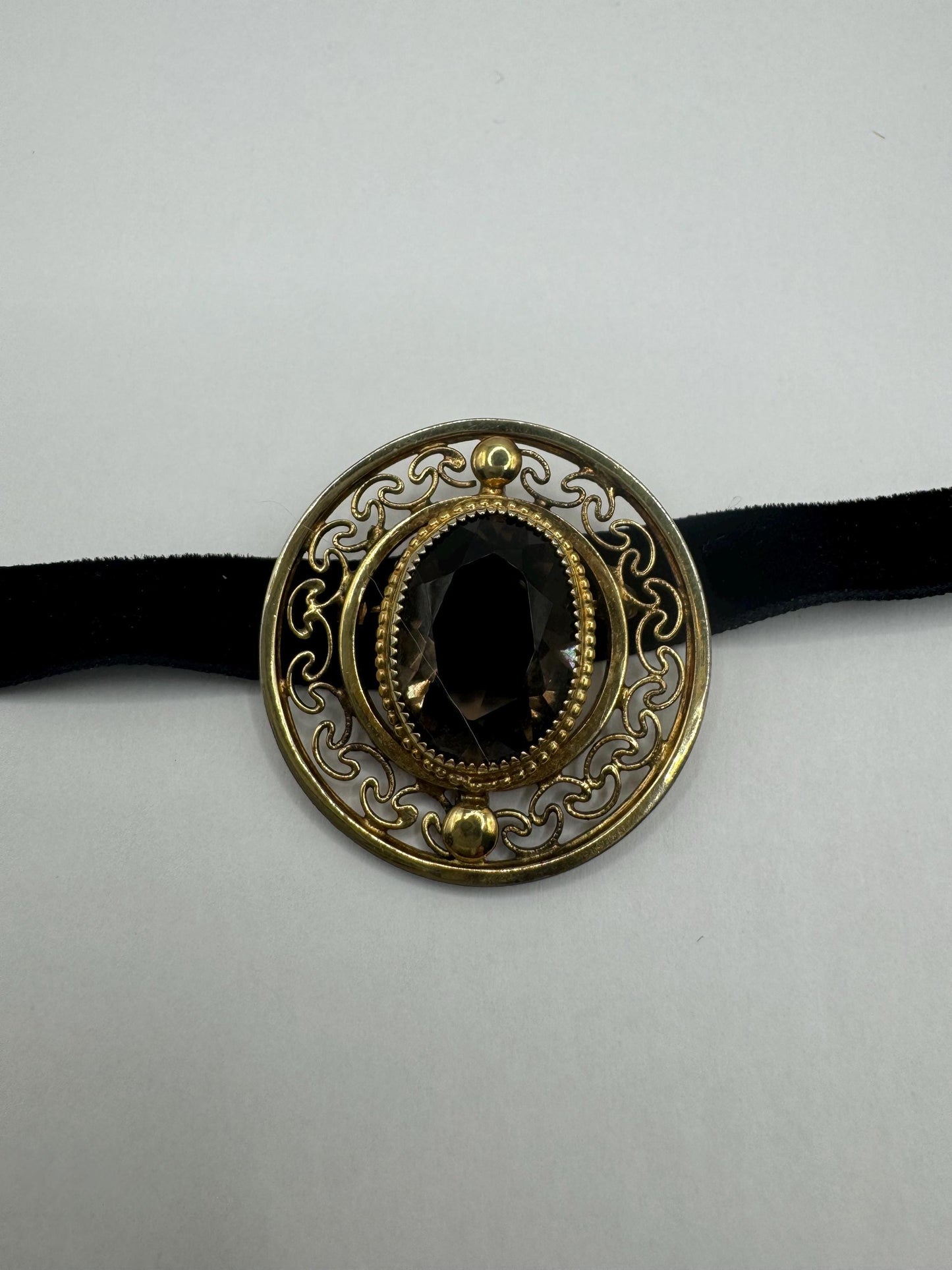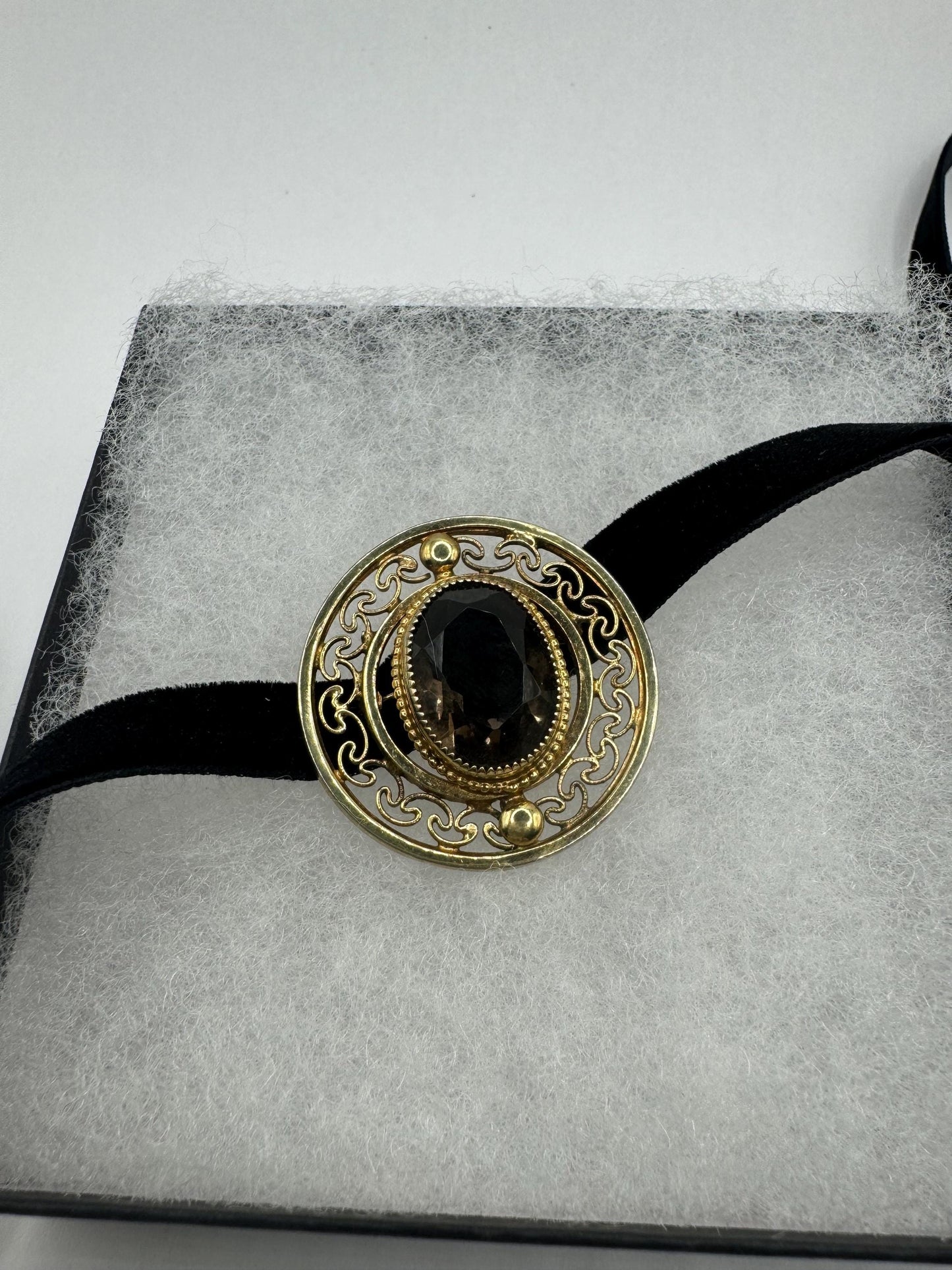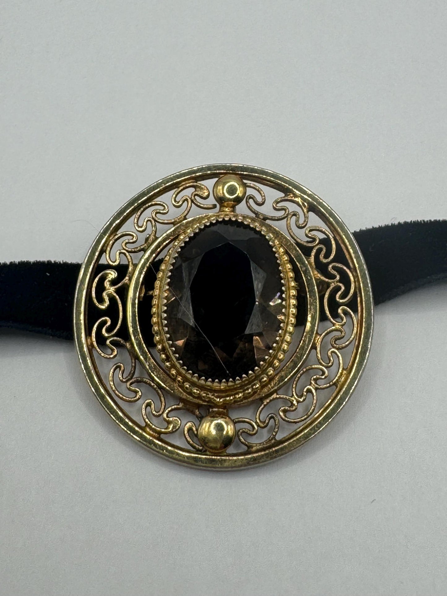 Vintage Brown Smoky Topaz Pin Gold Filled Brooch