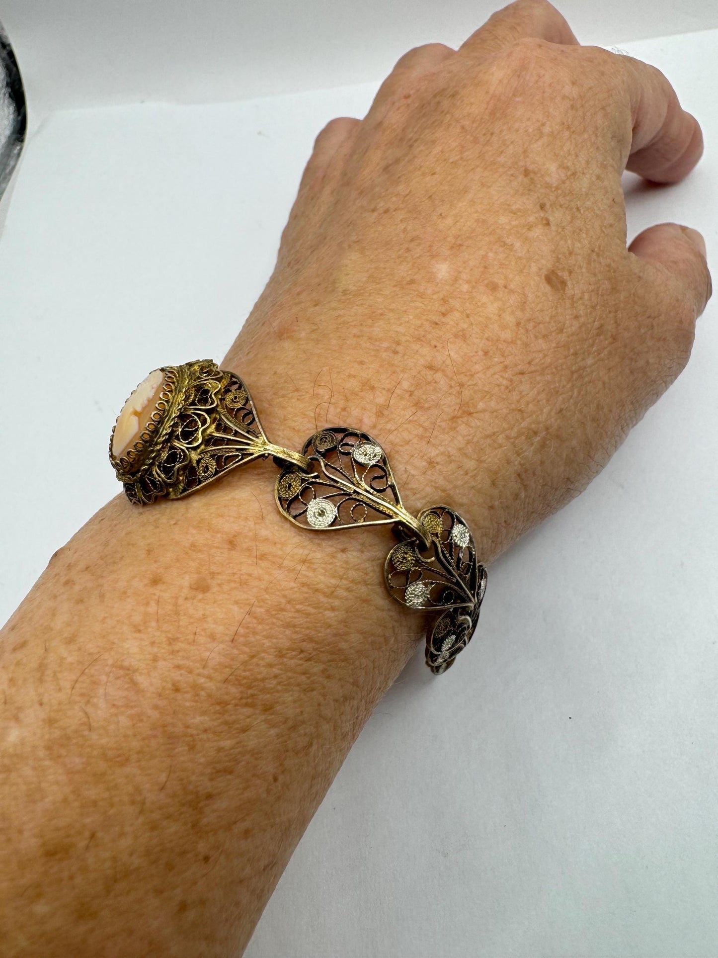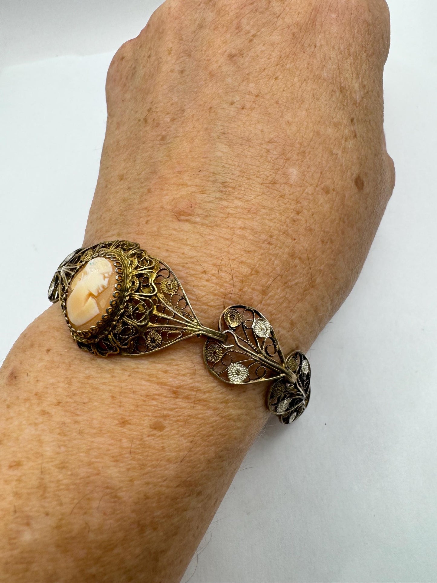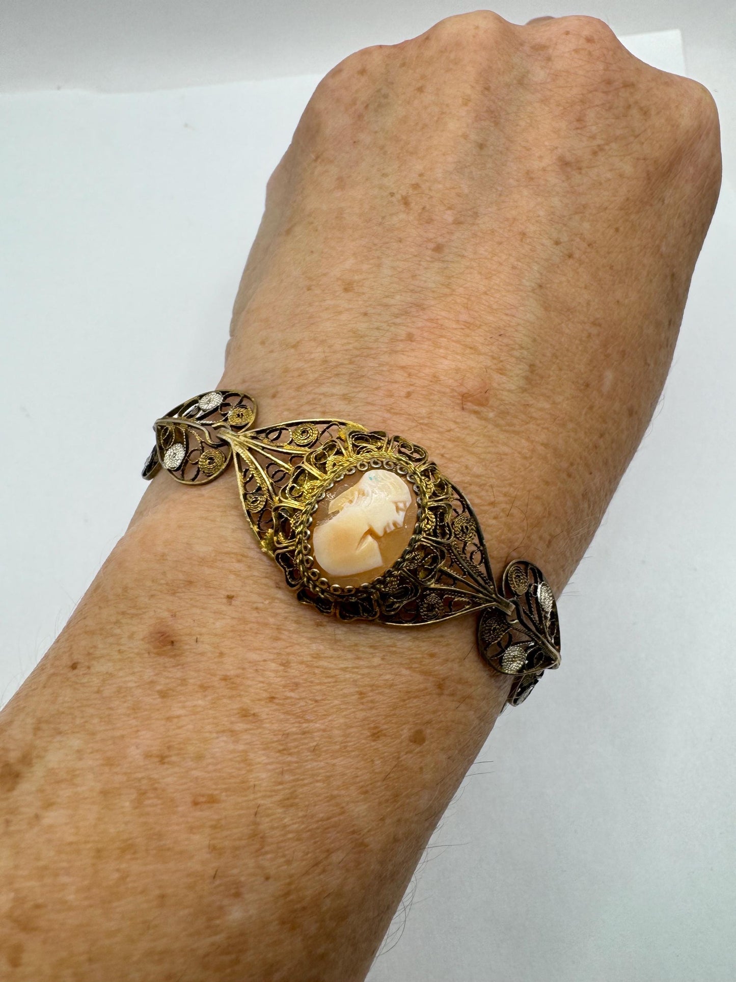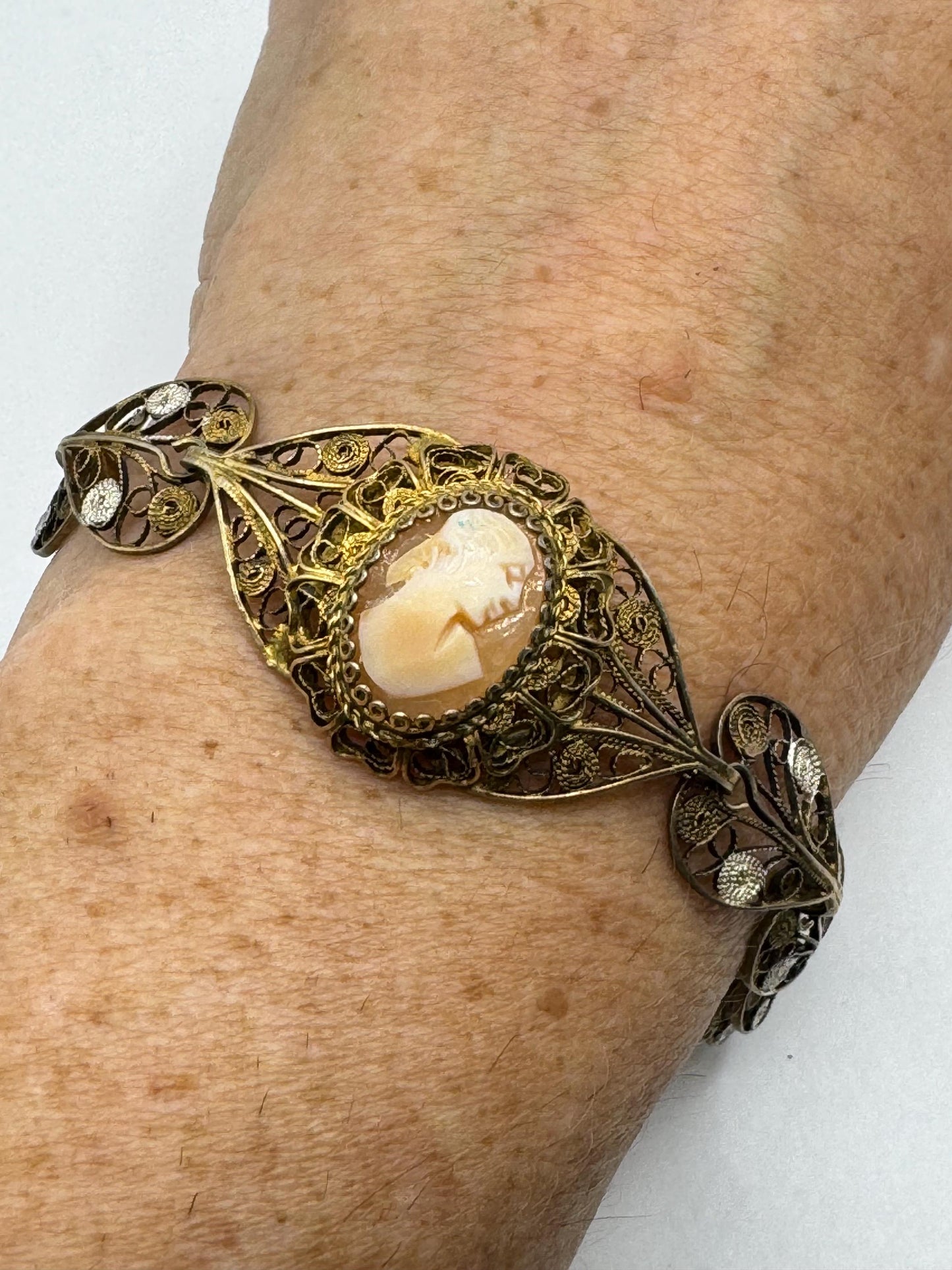 Vintage Cameo Bracelet set in 925 sterling silver with gold finish