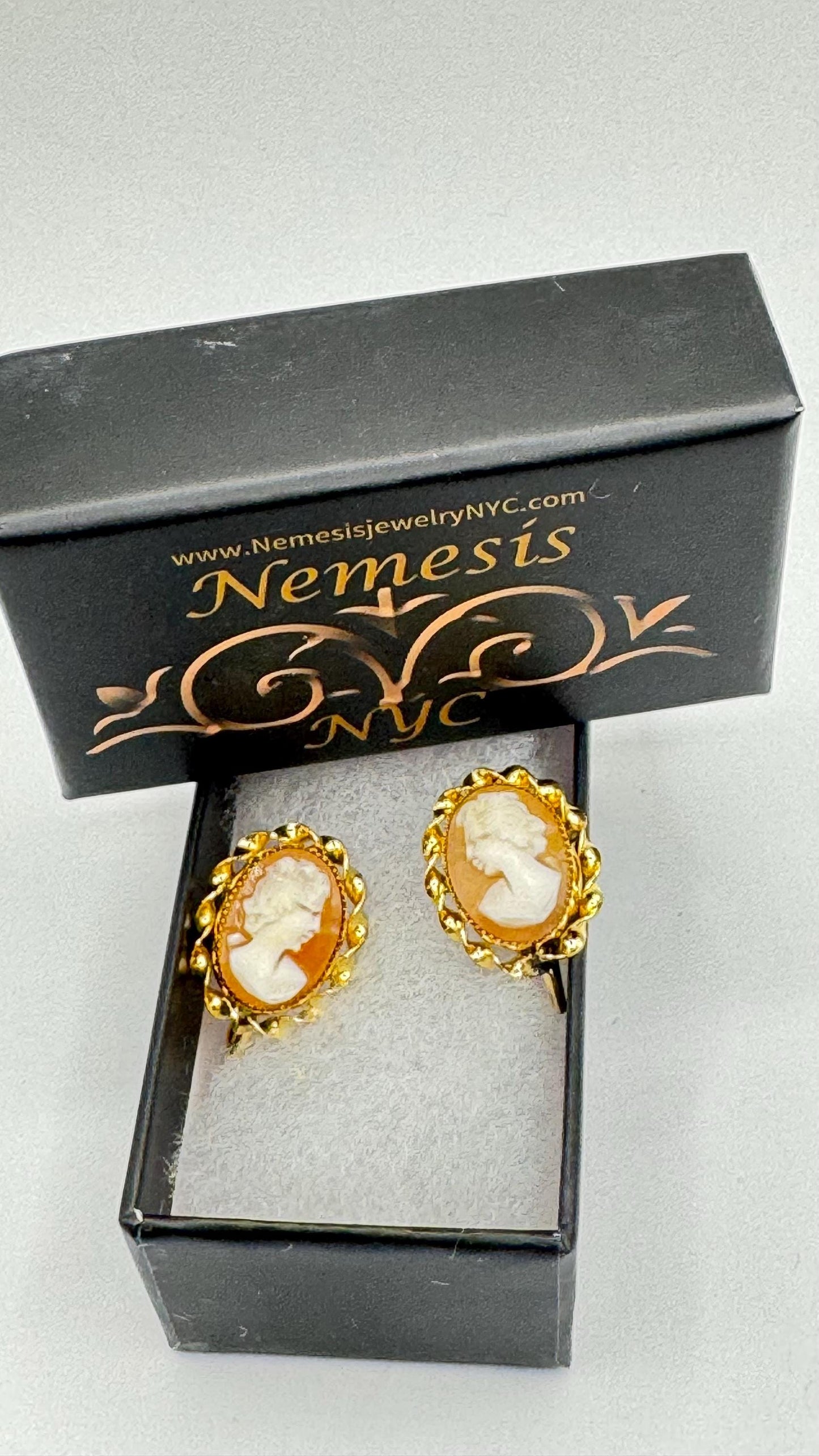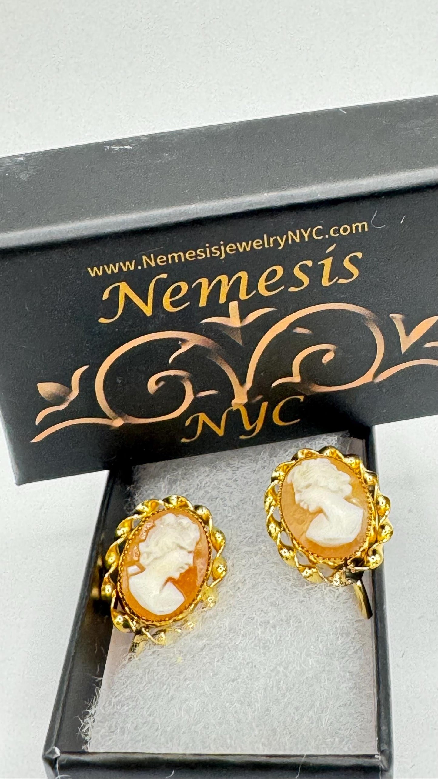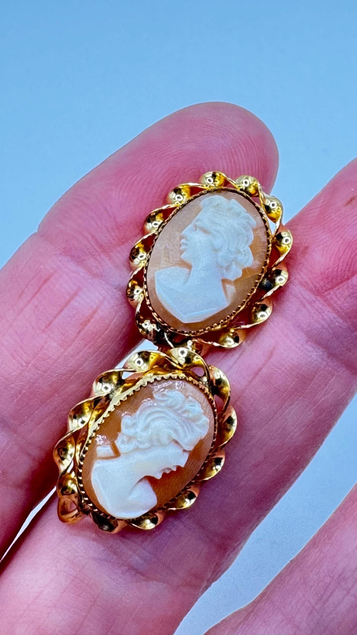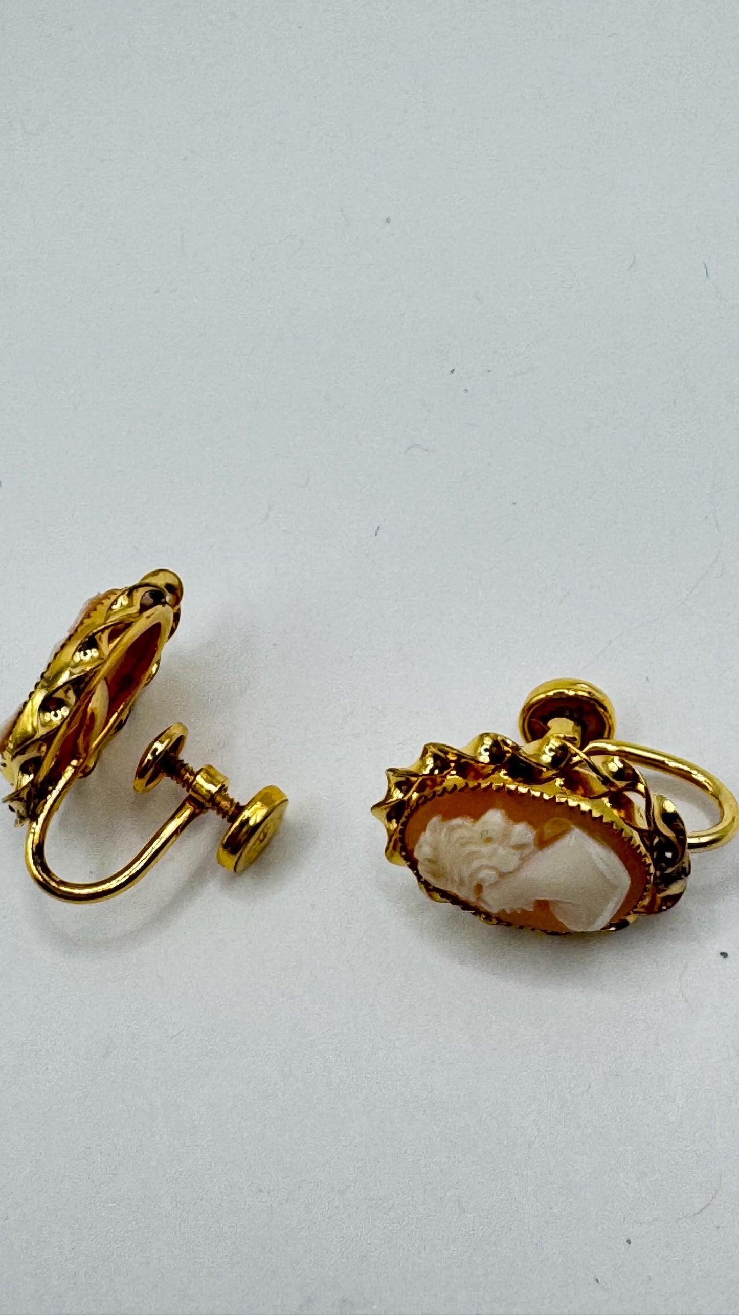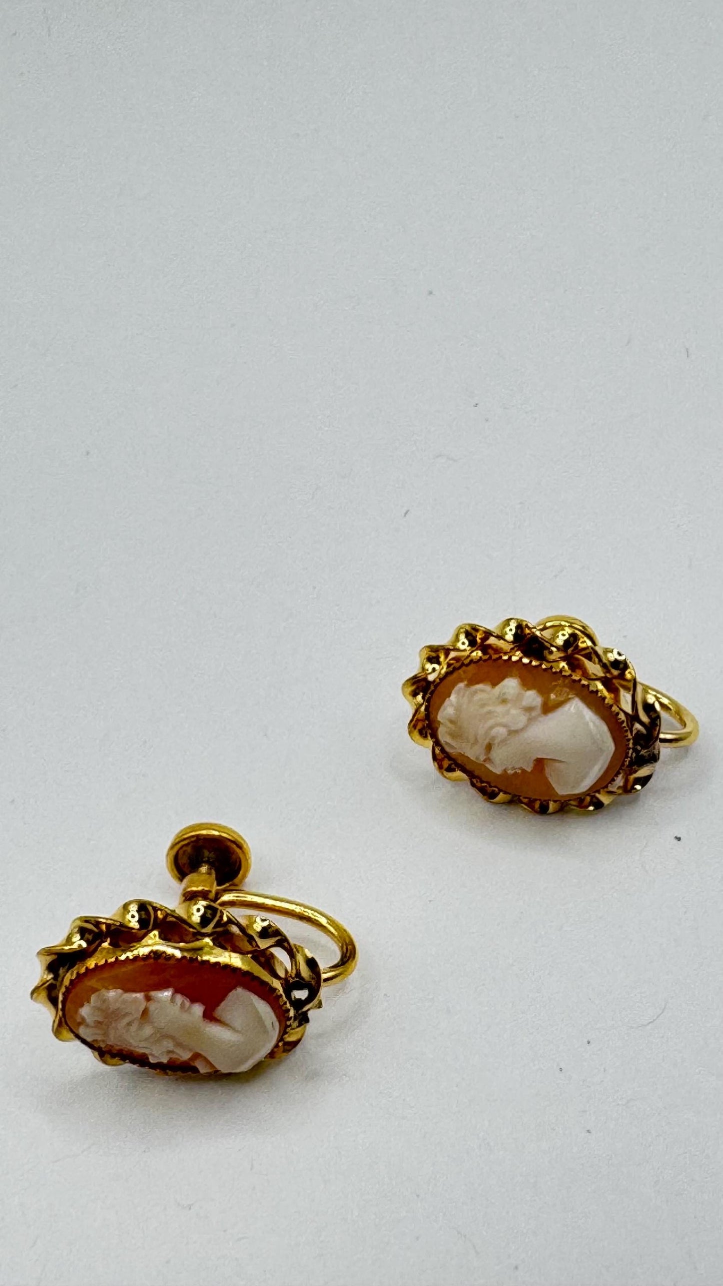Vintage genuine carved shell cameos. gold filled screw back earrings