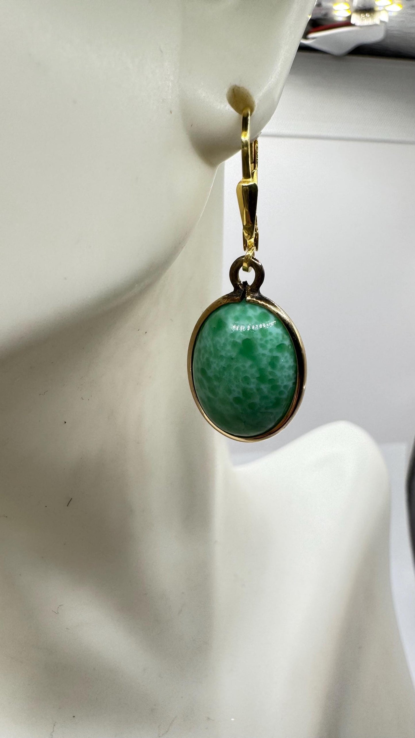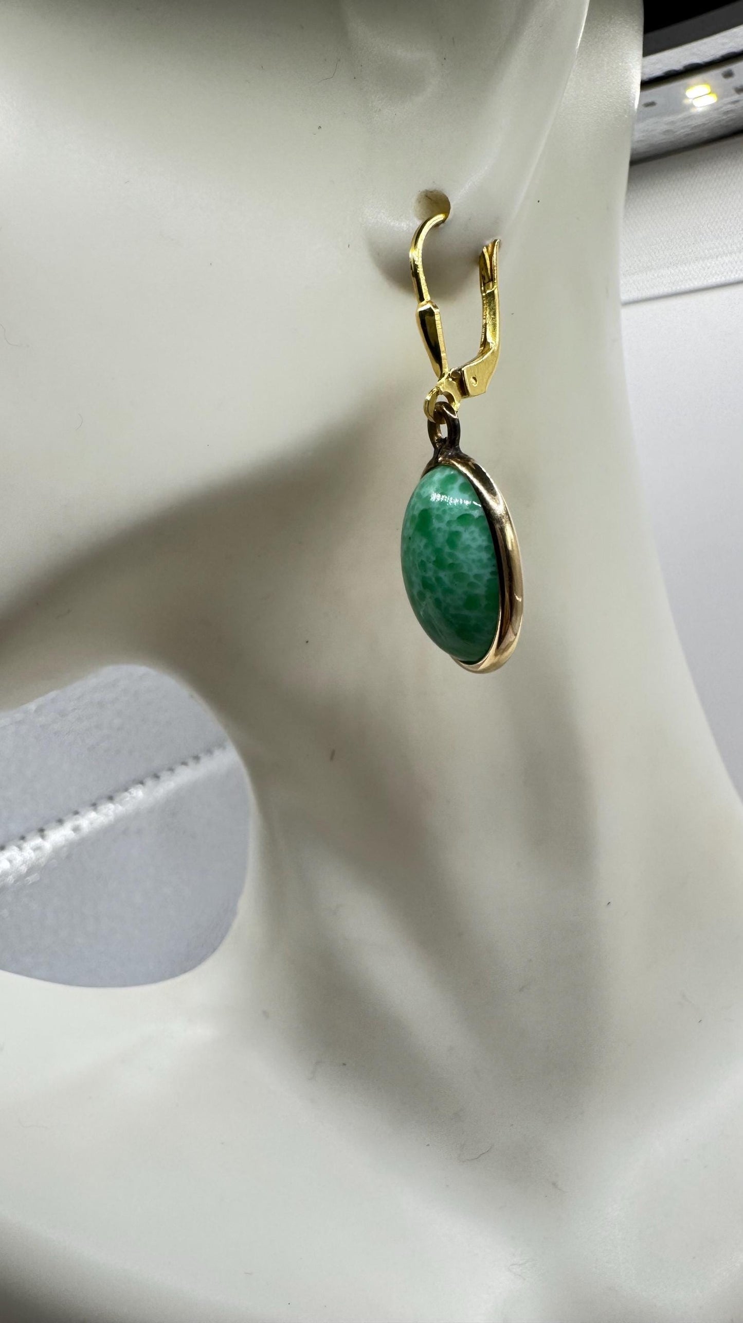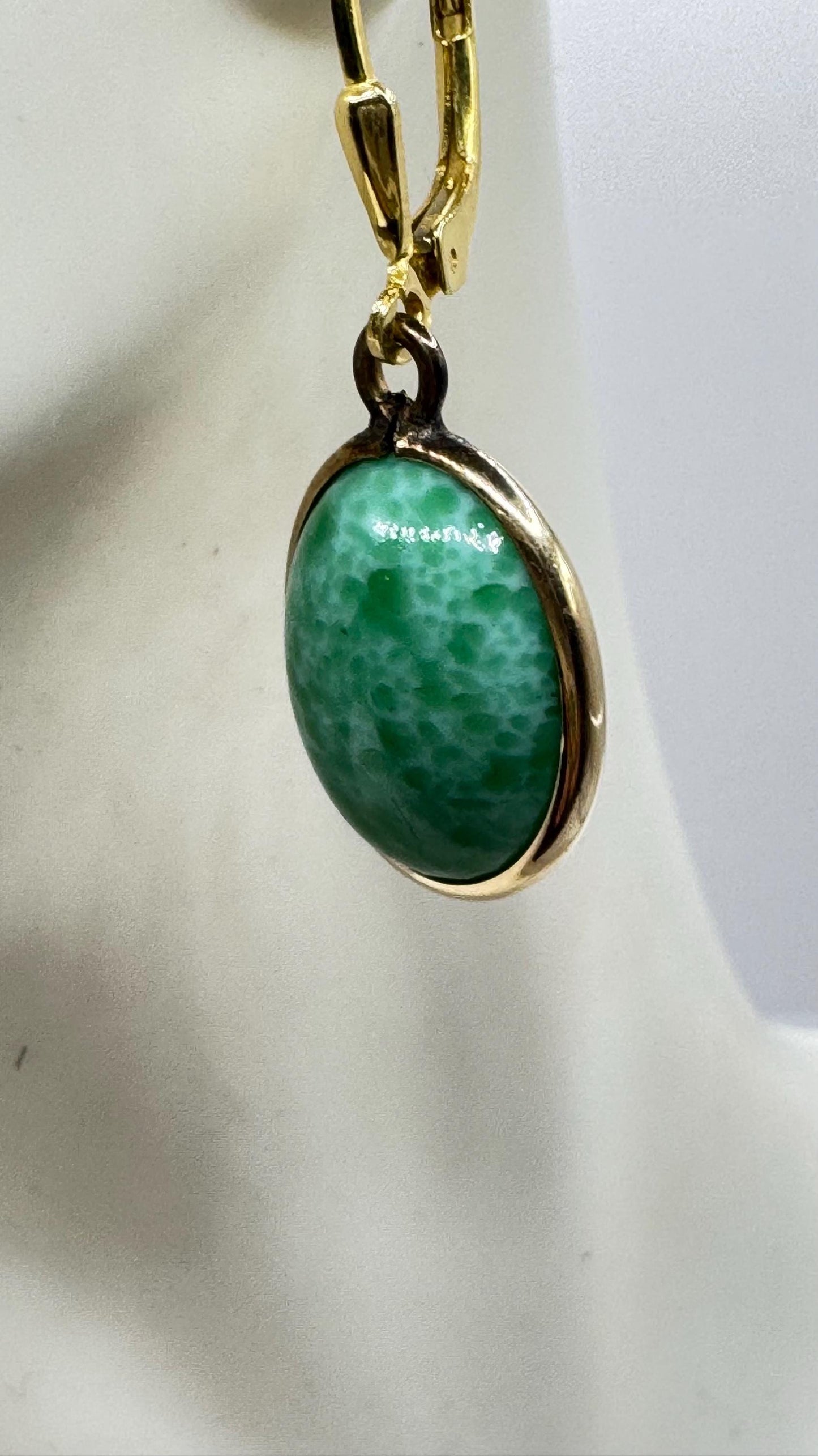 Vintage Fun Green Jade Gemstone Gold filled Lever Back Earrings