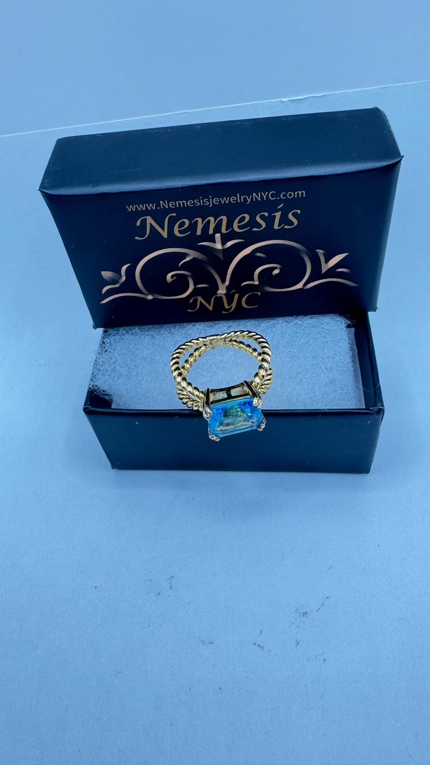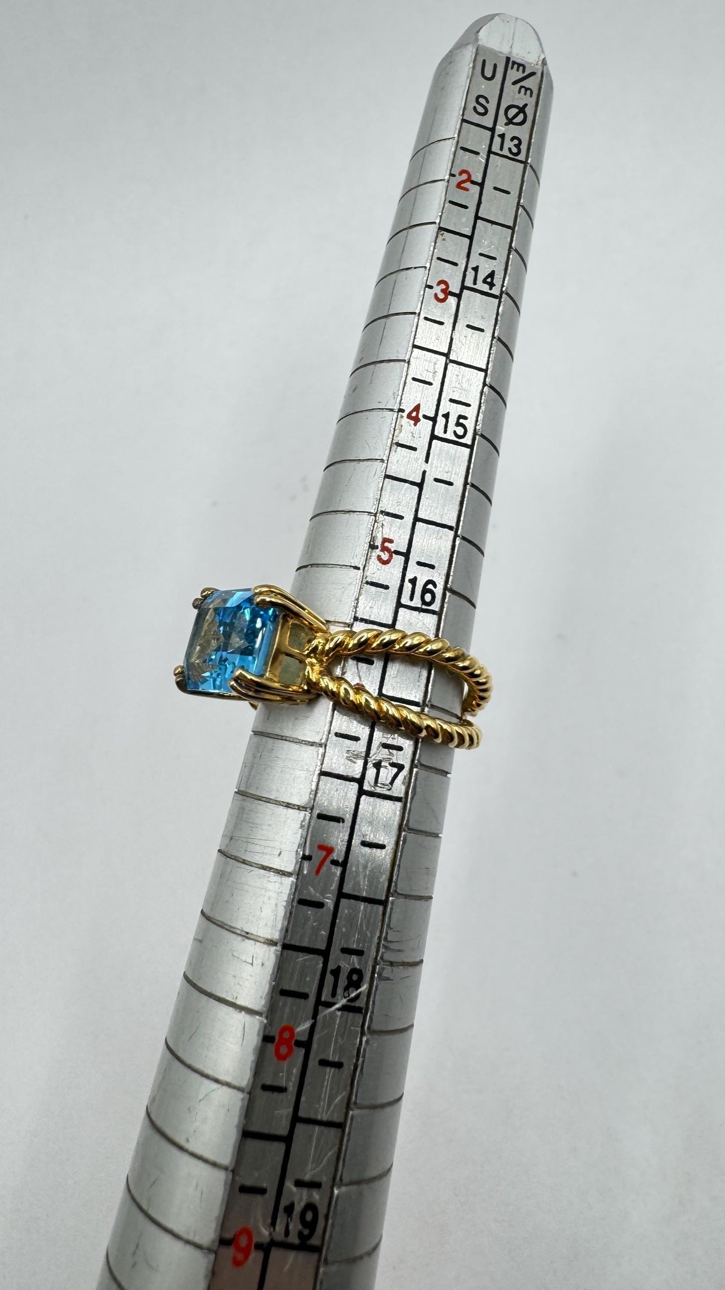 Vintage Genuine Blue Topaz Gold 925 Sterling Silver Ring