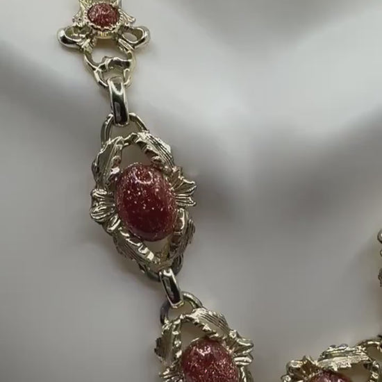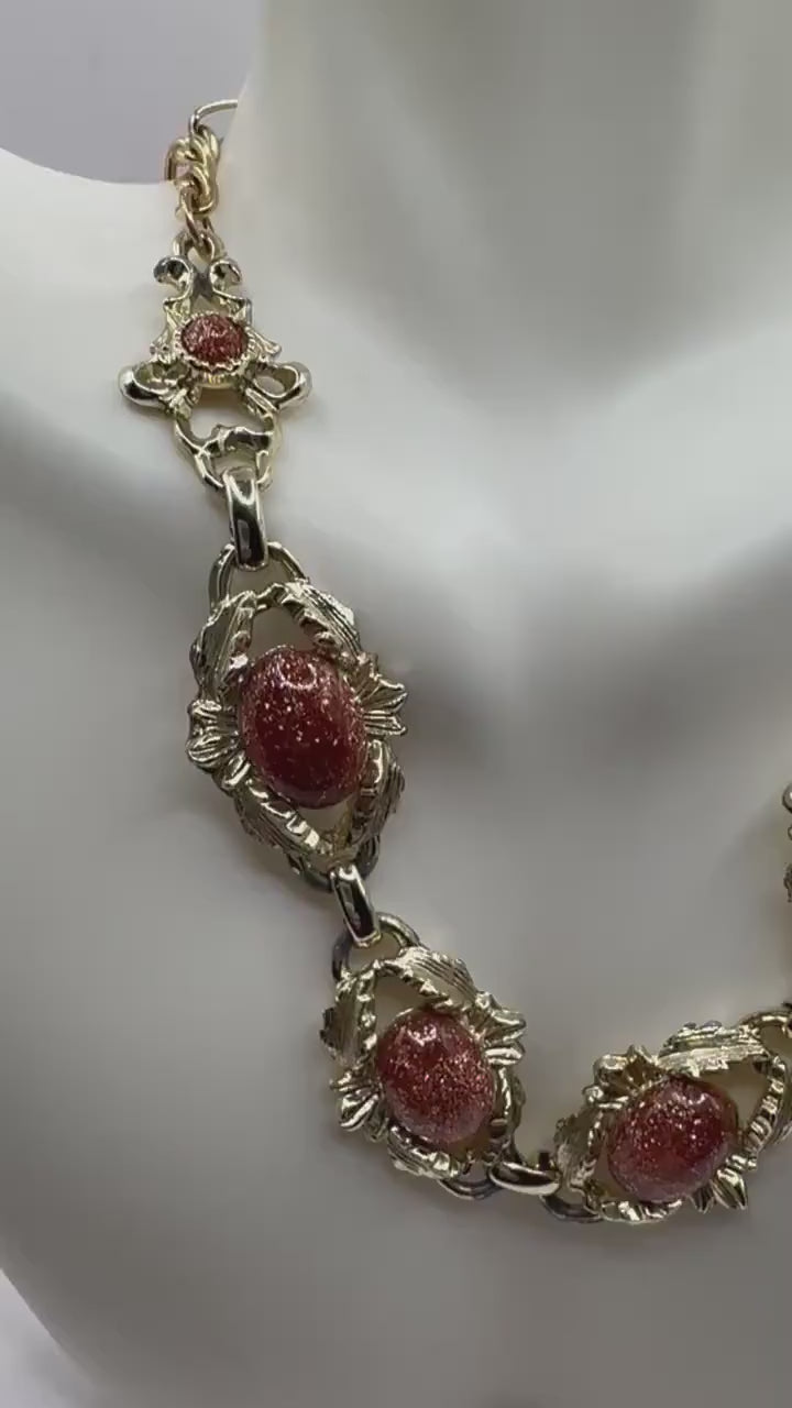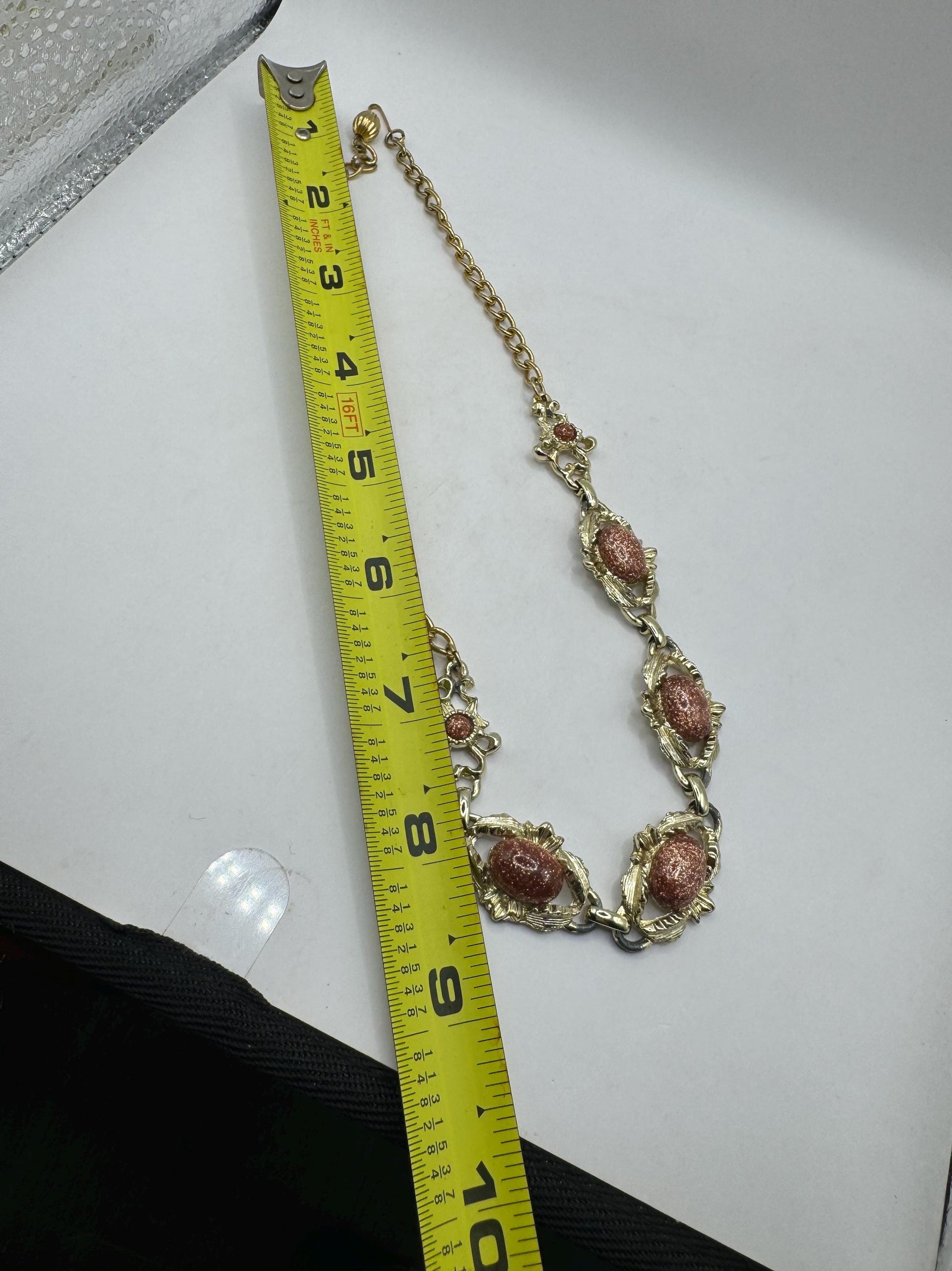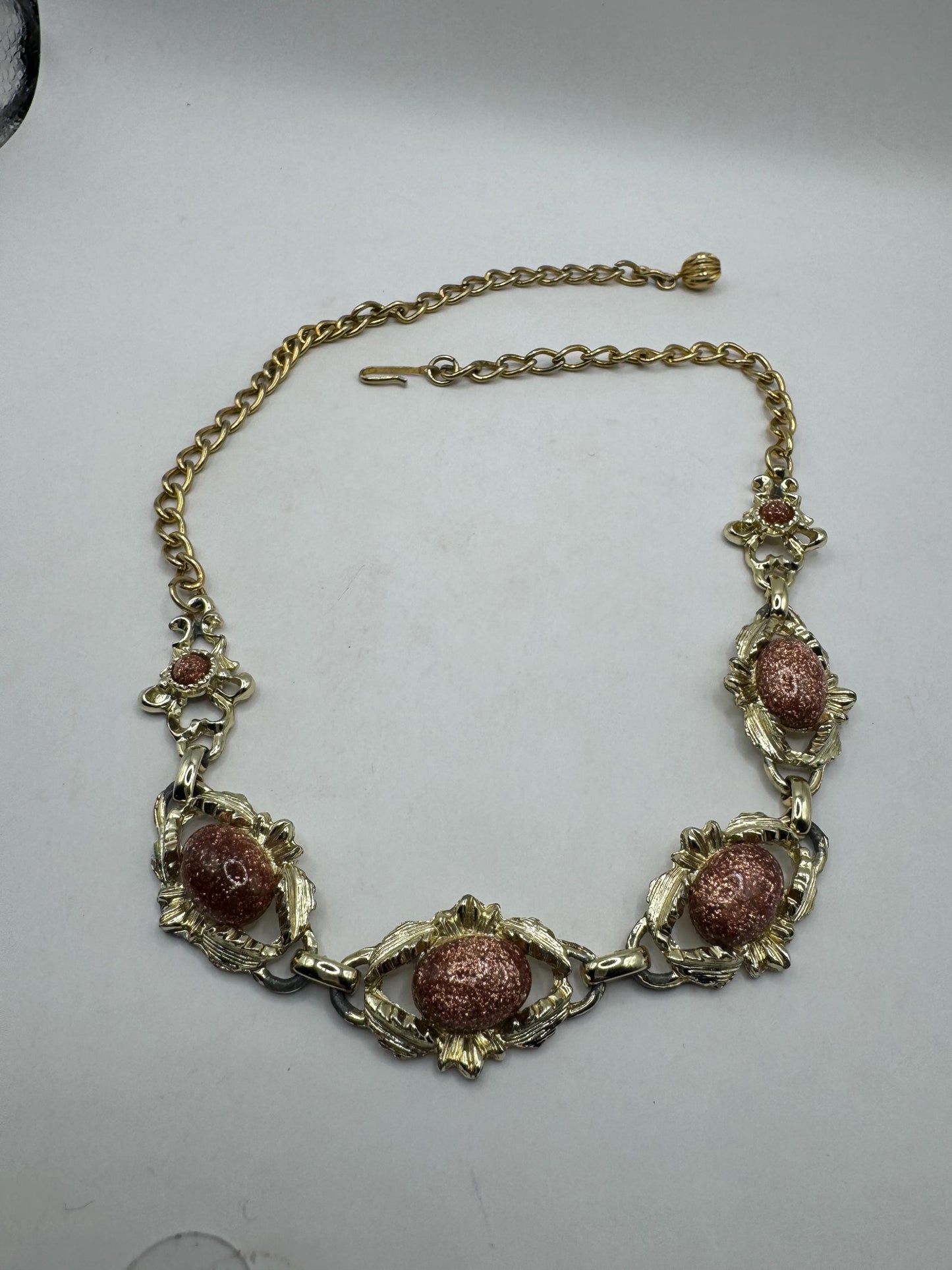 Vintage goldstone Glass Silver Statement Chain Necklace