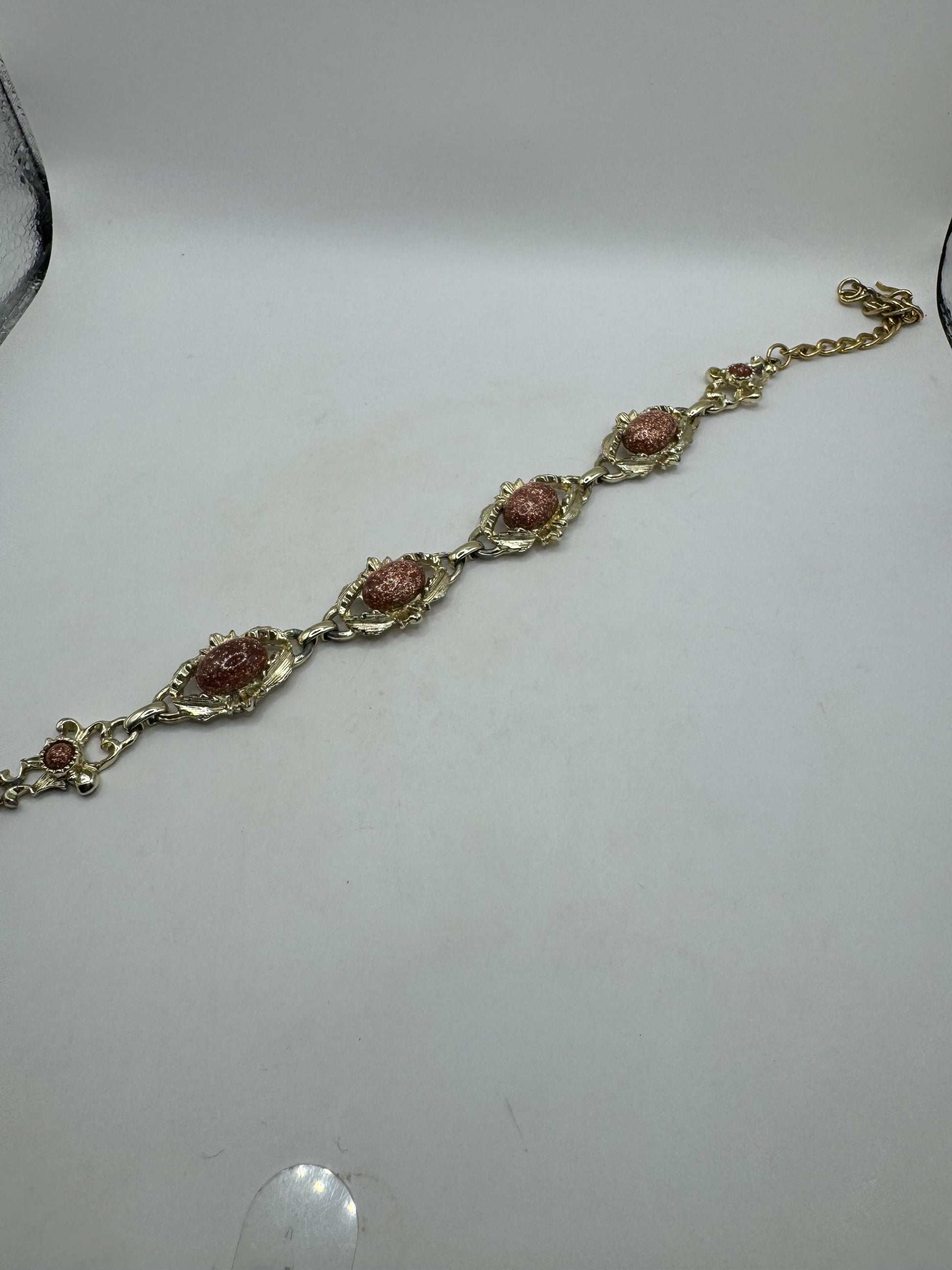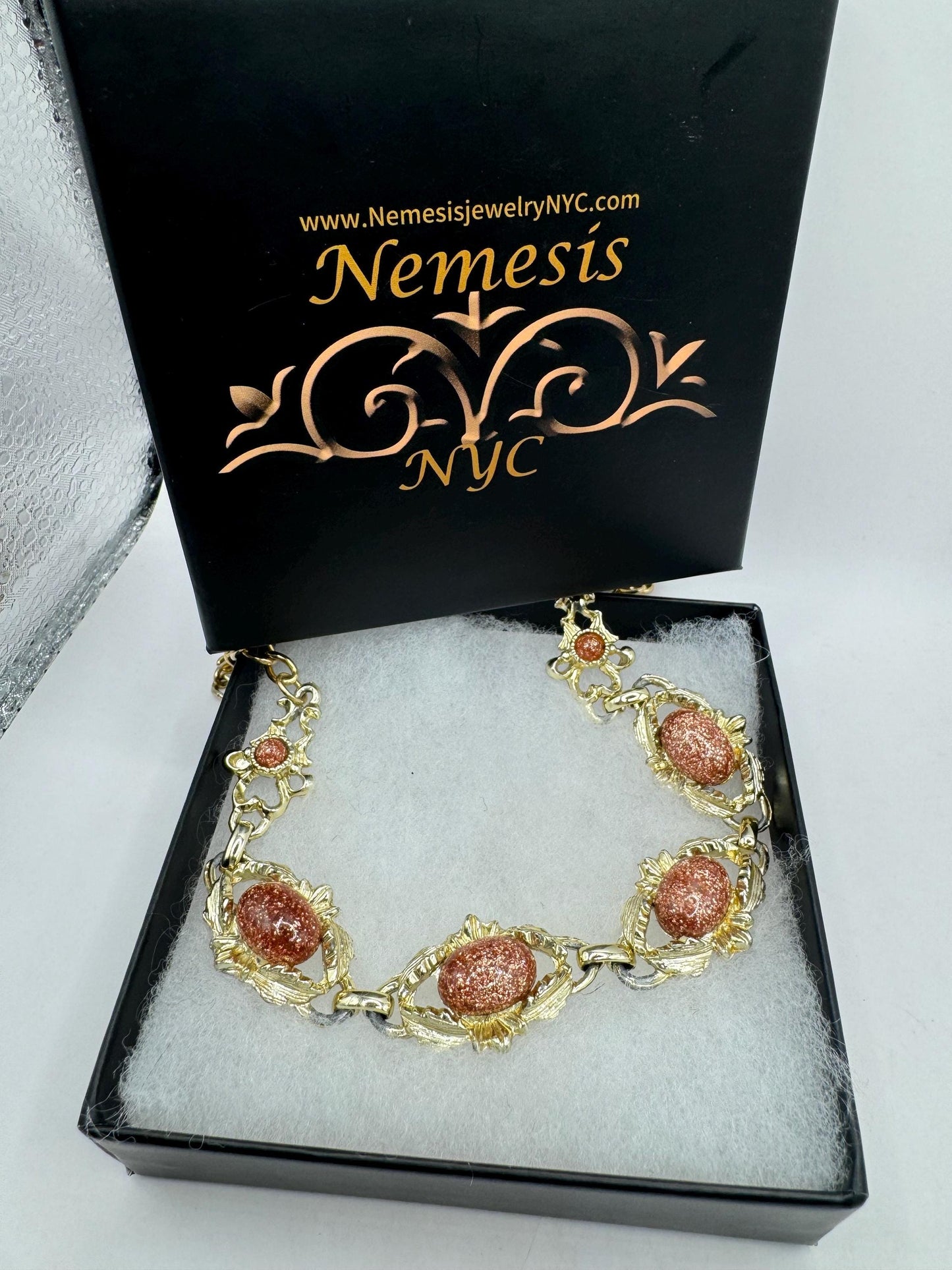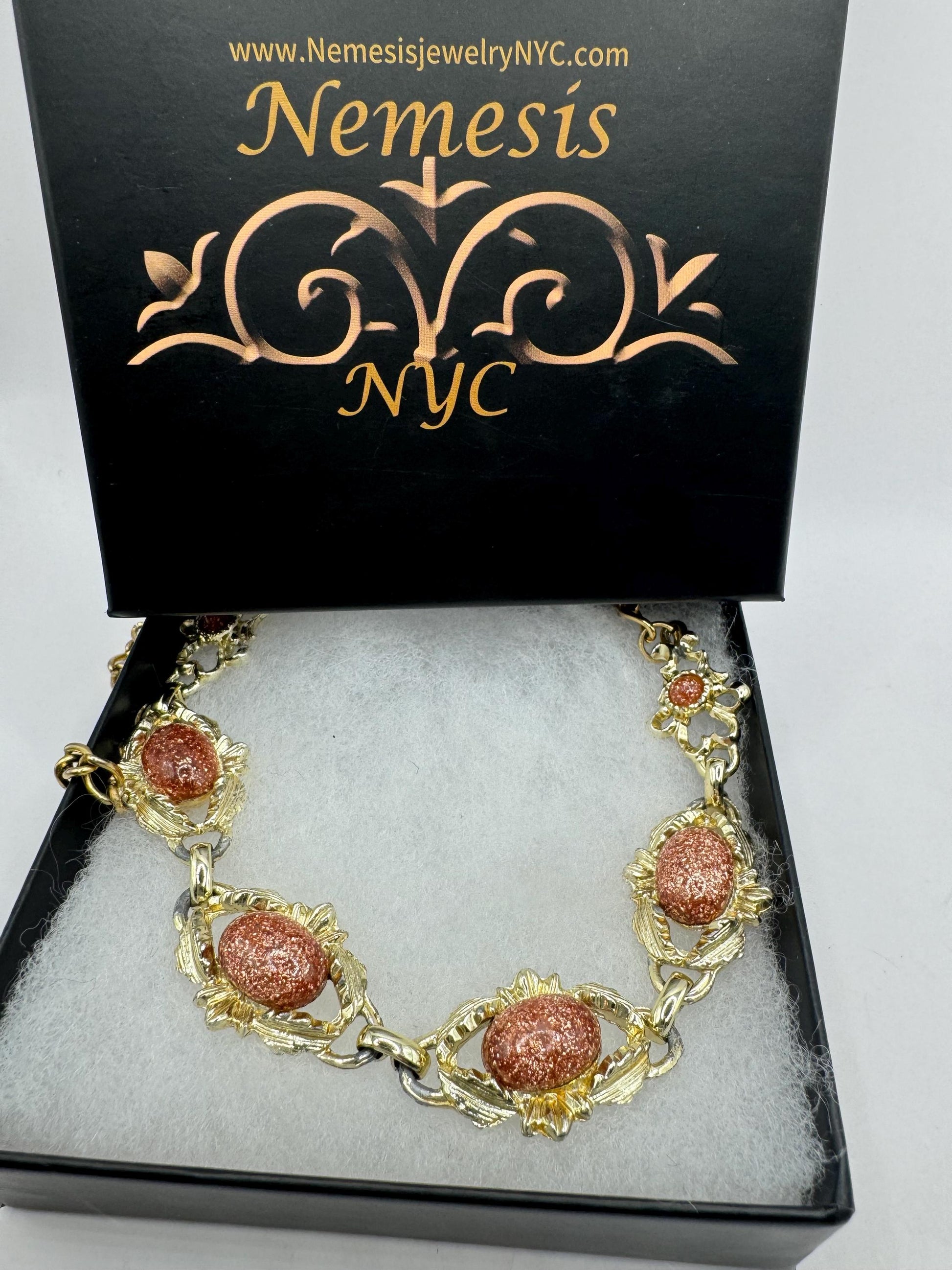 Vintage goldstone Glass Silver Statement Chain Necklace