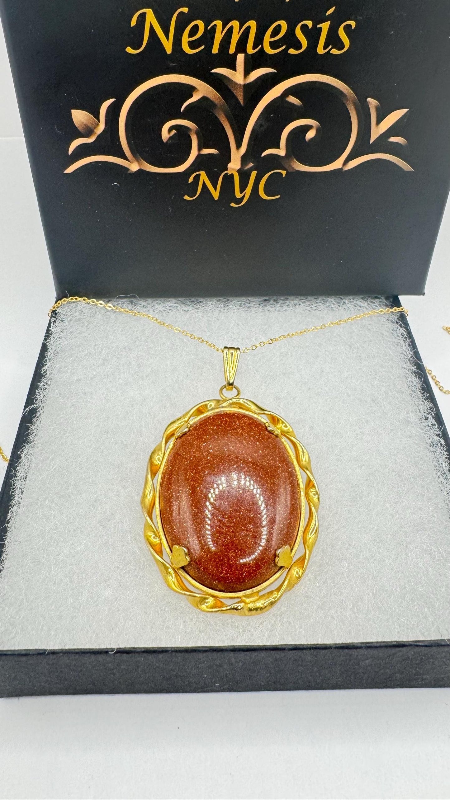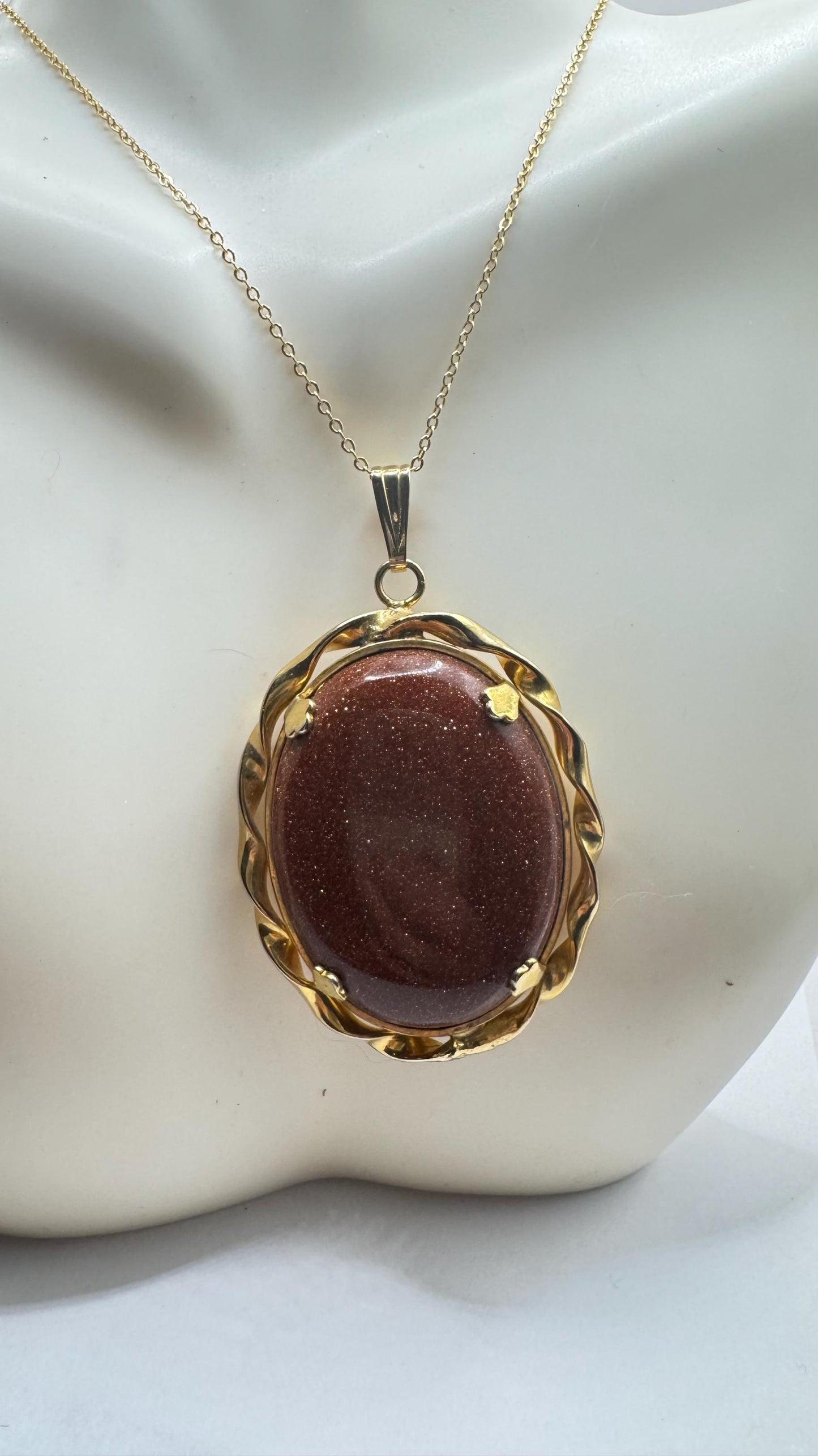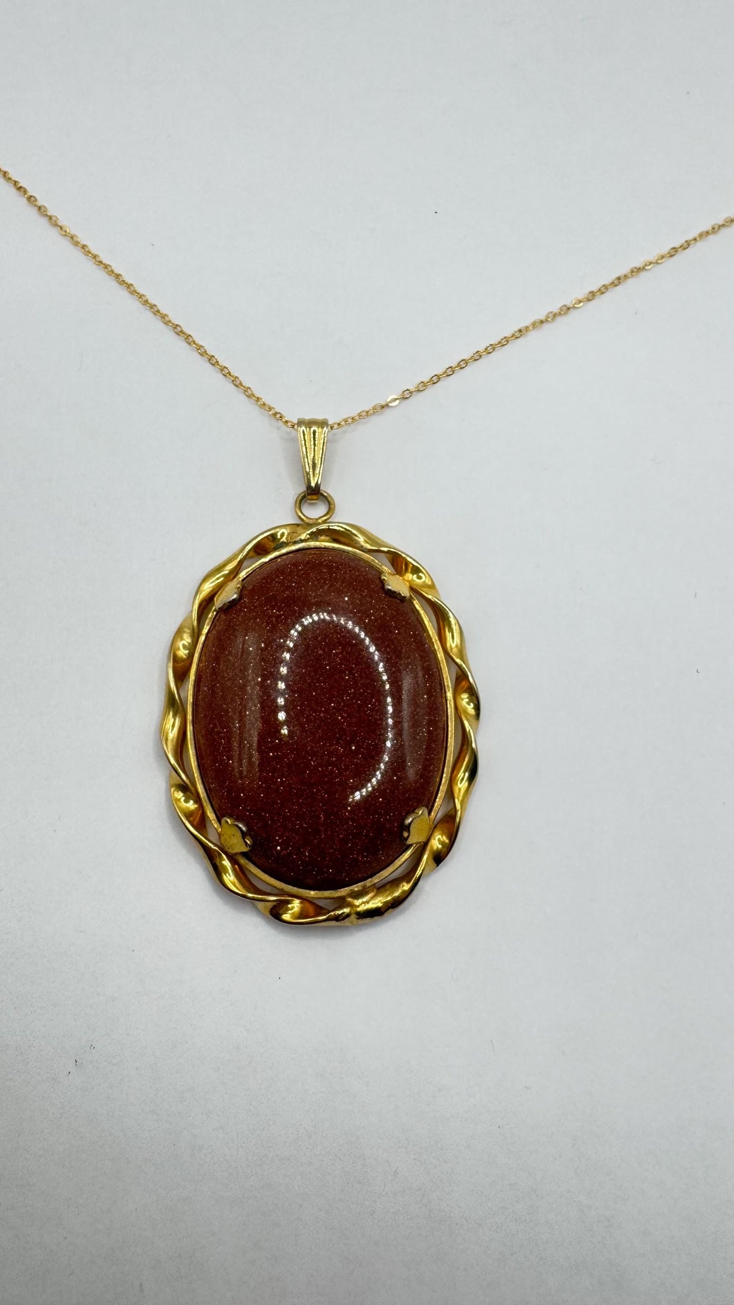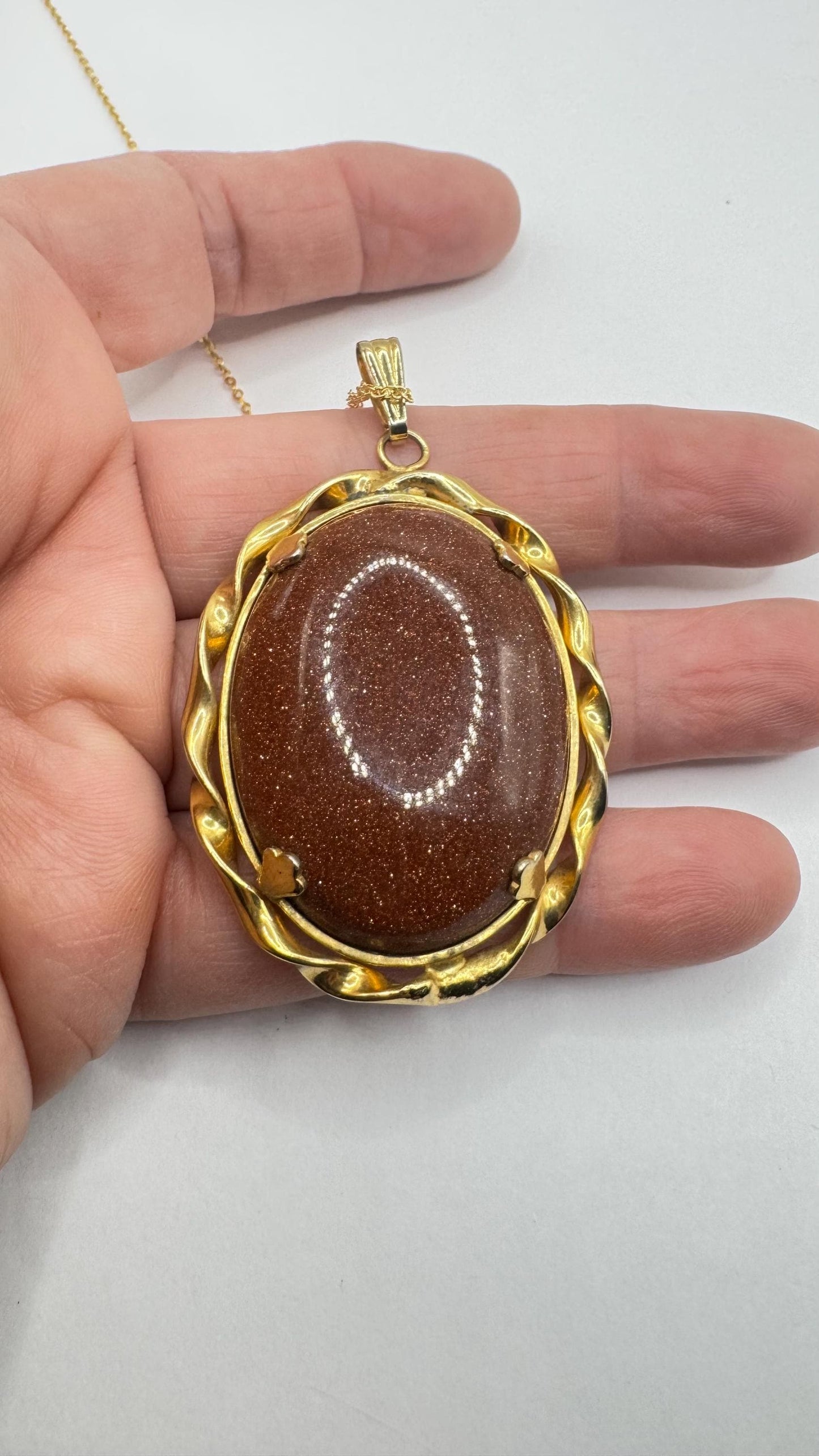 Vintage huge Goldstone gemstone choker gold fill necklace