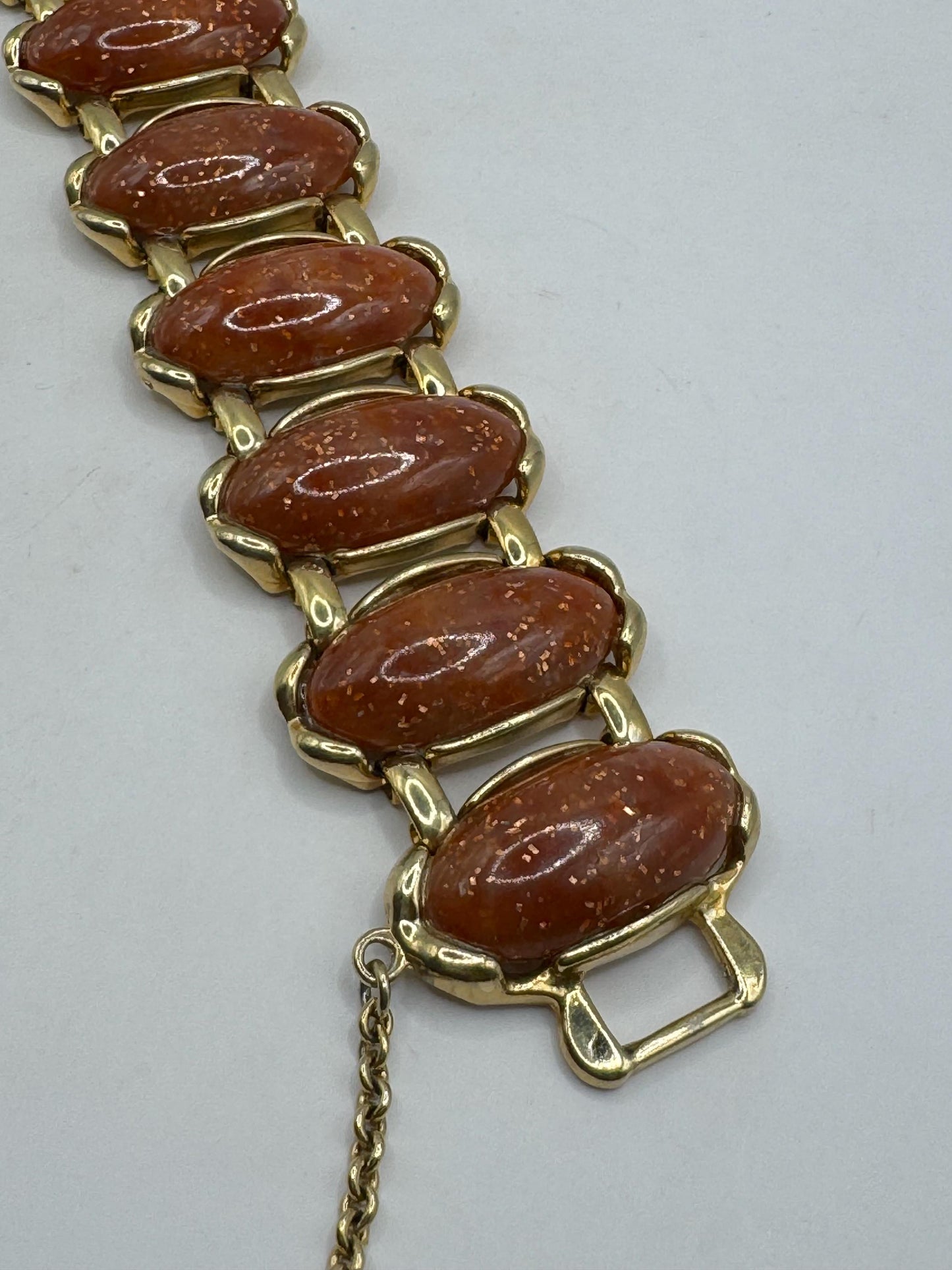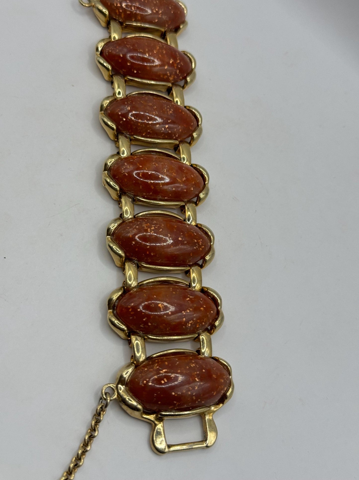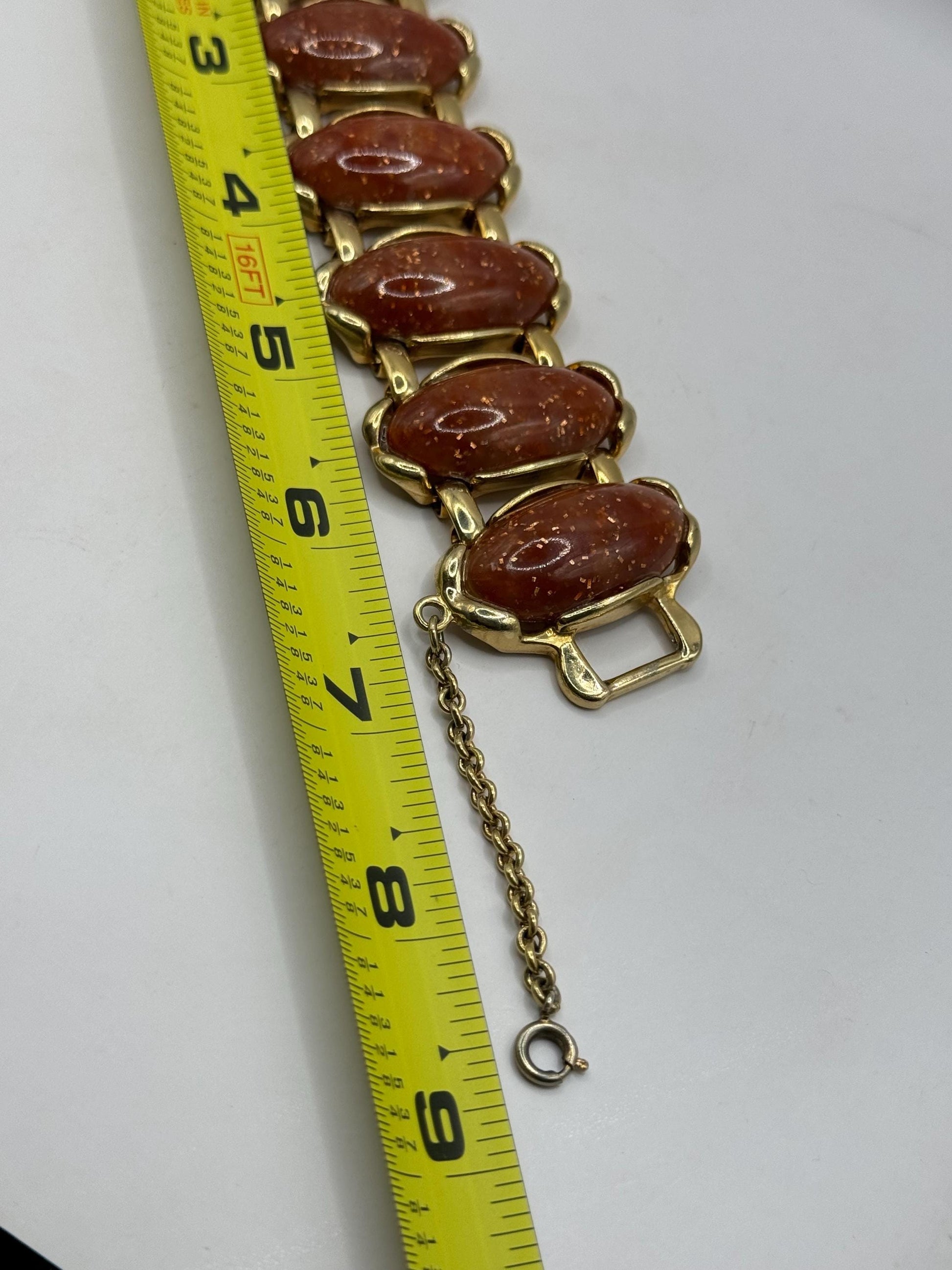 Vintage faux goldstone gold bracelet 7.5