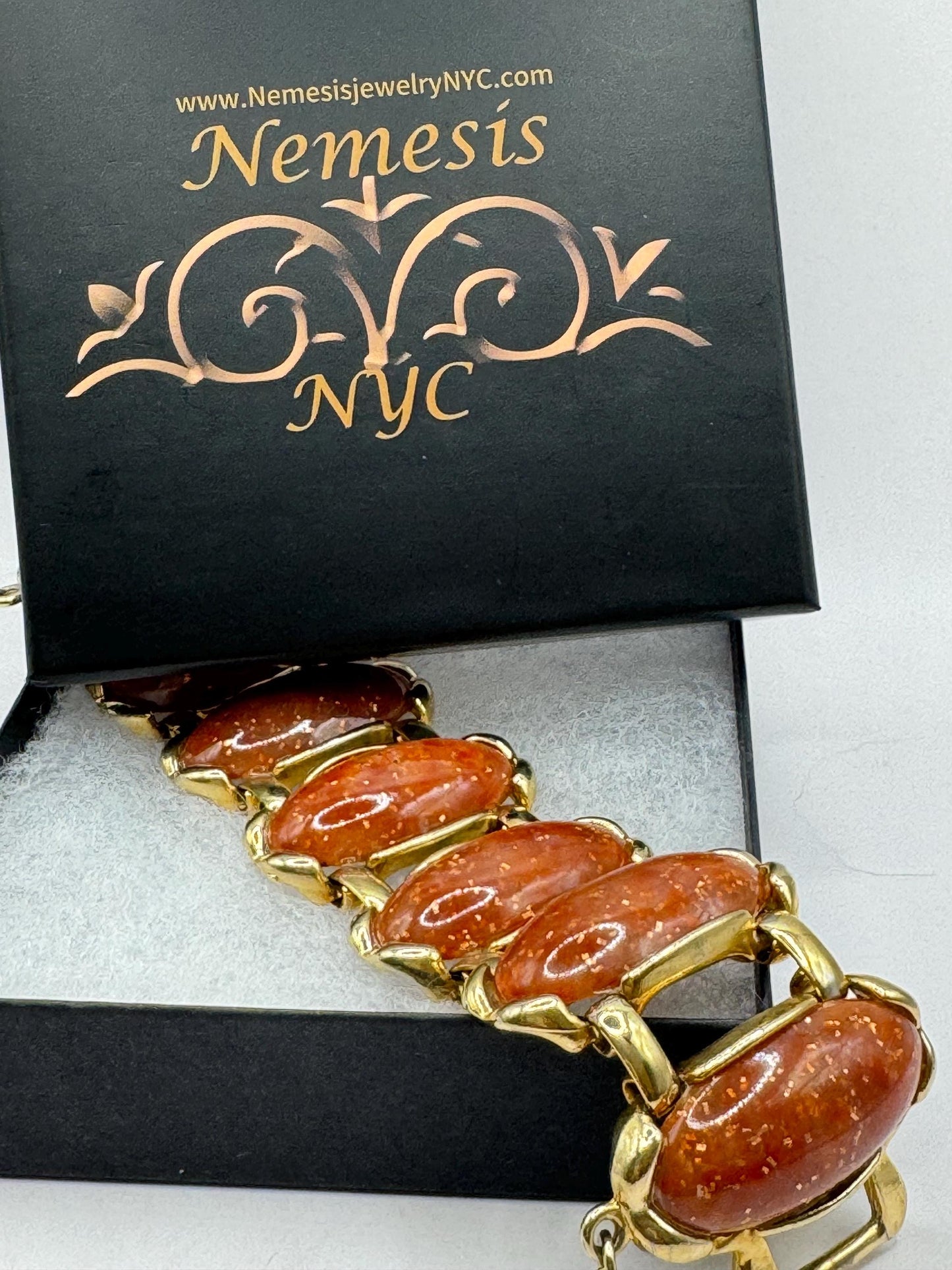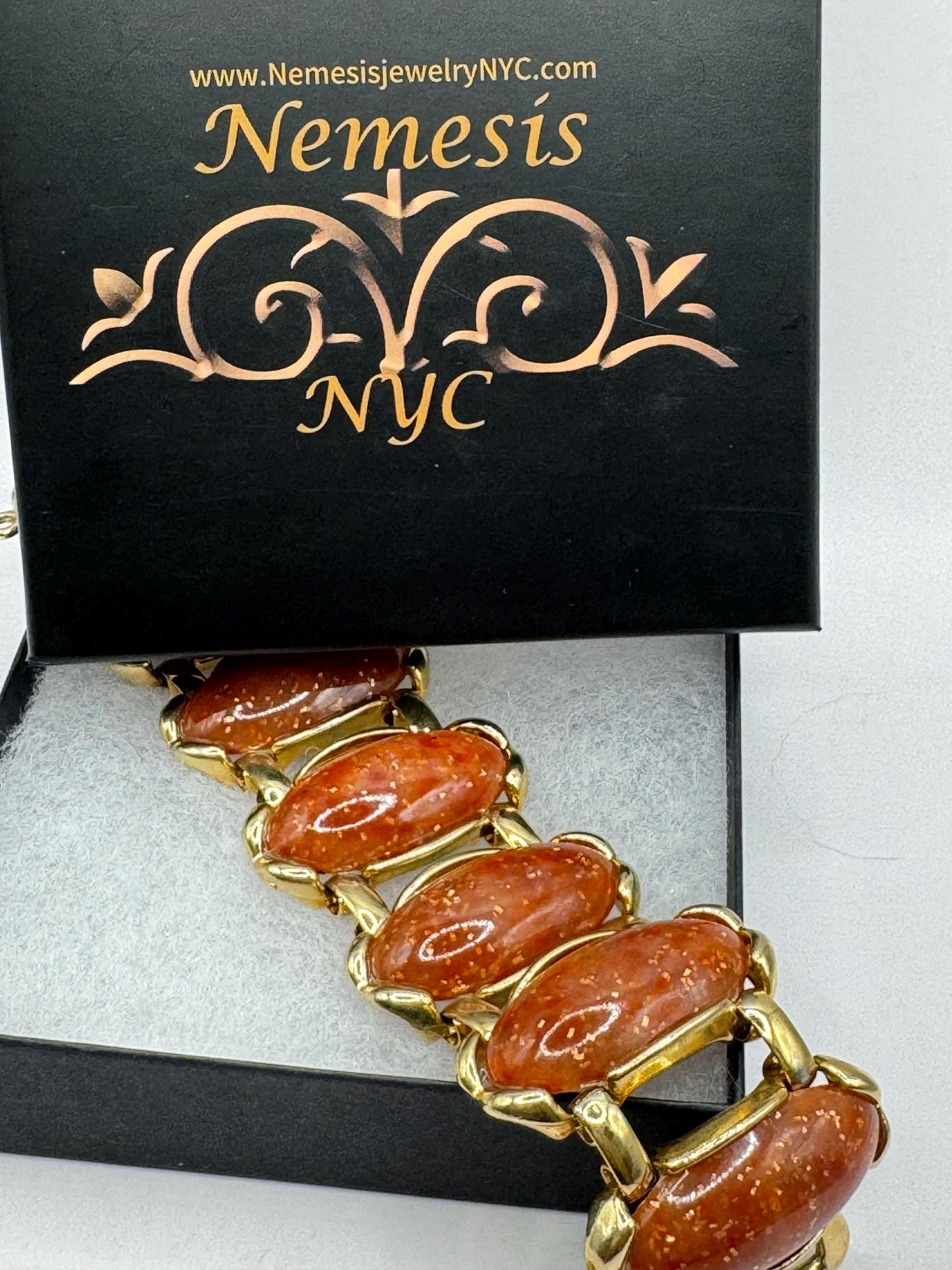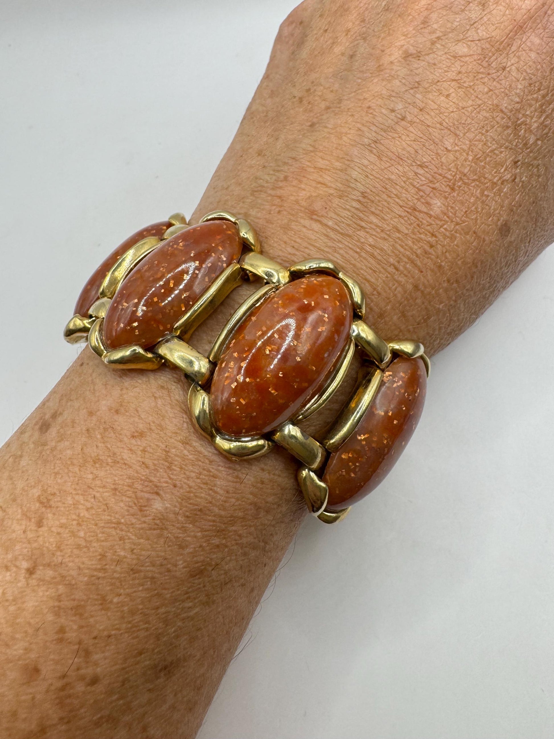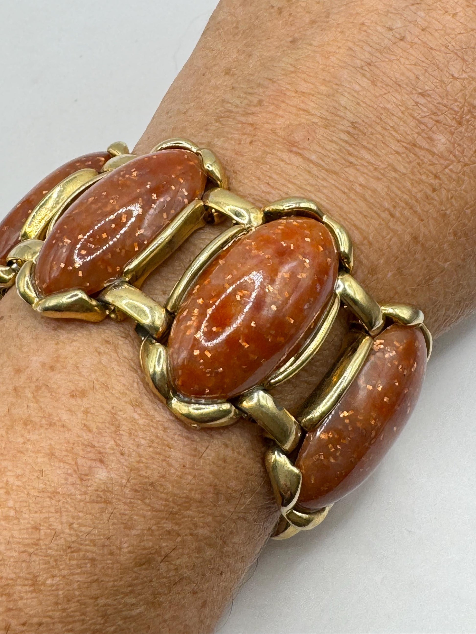 Vintage faux goldstone gold bracelet 7.5