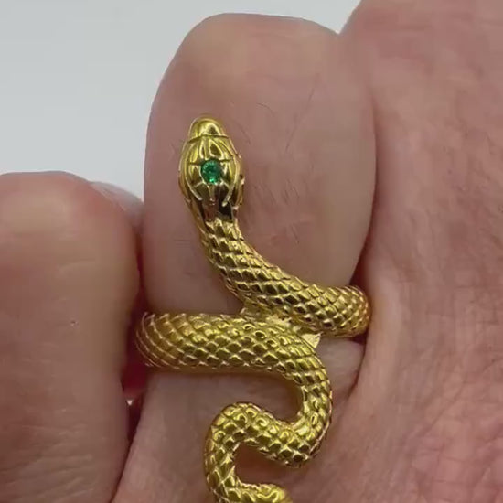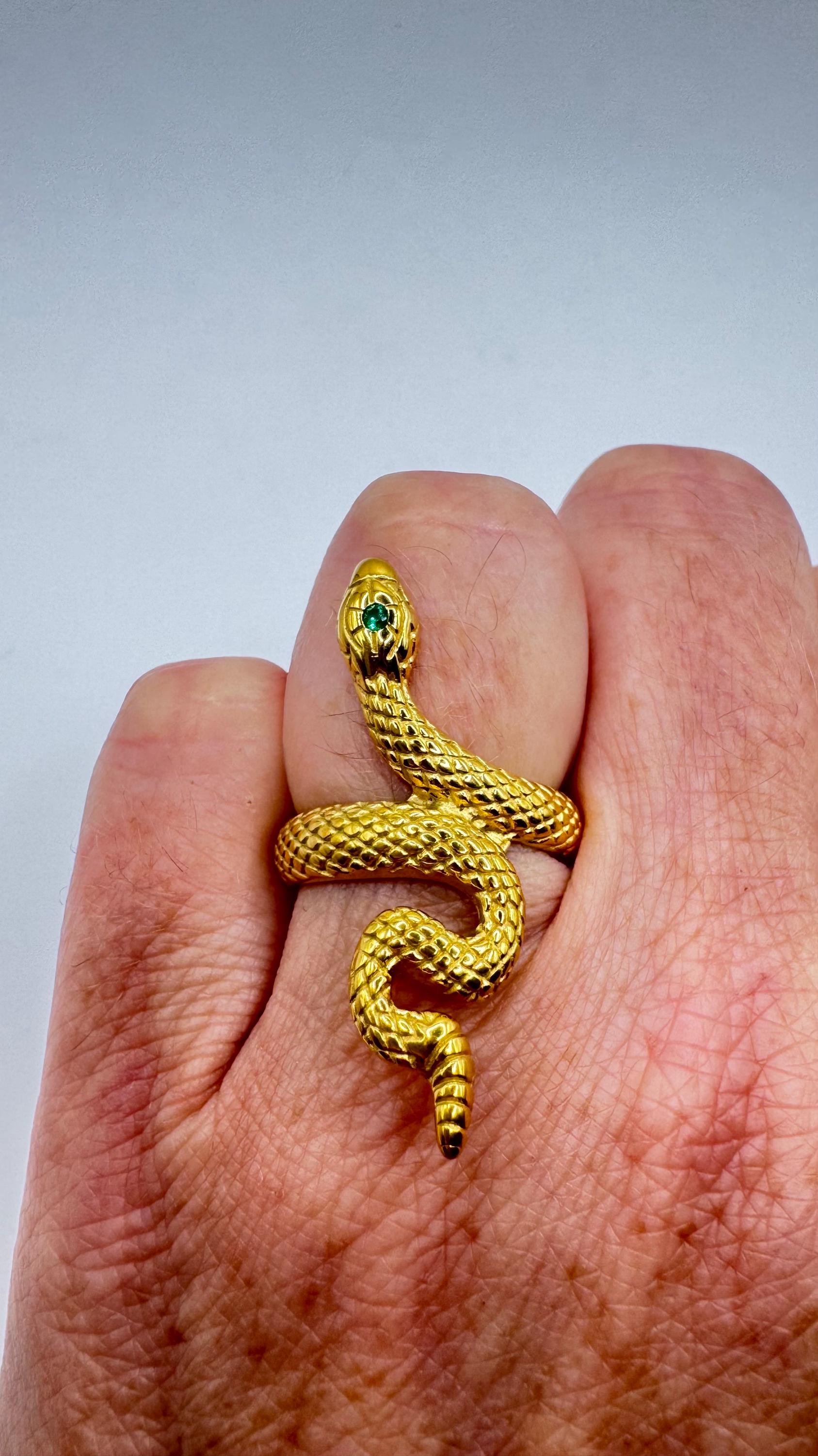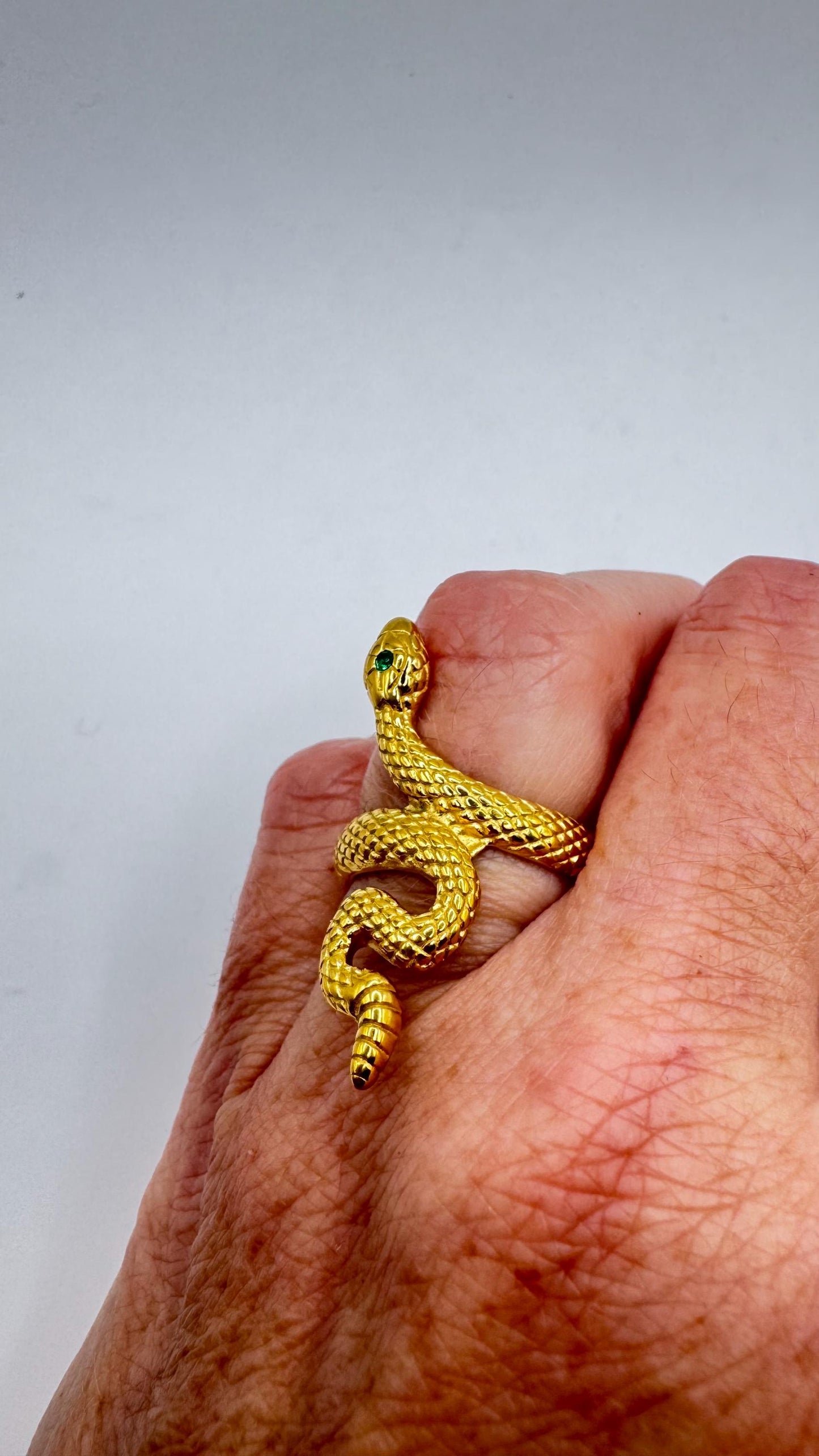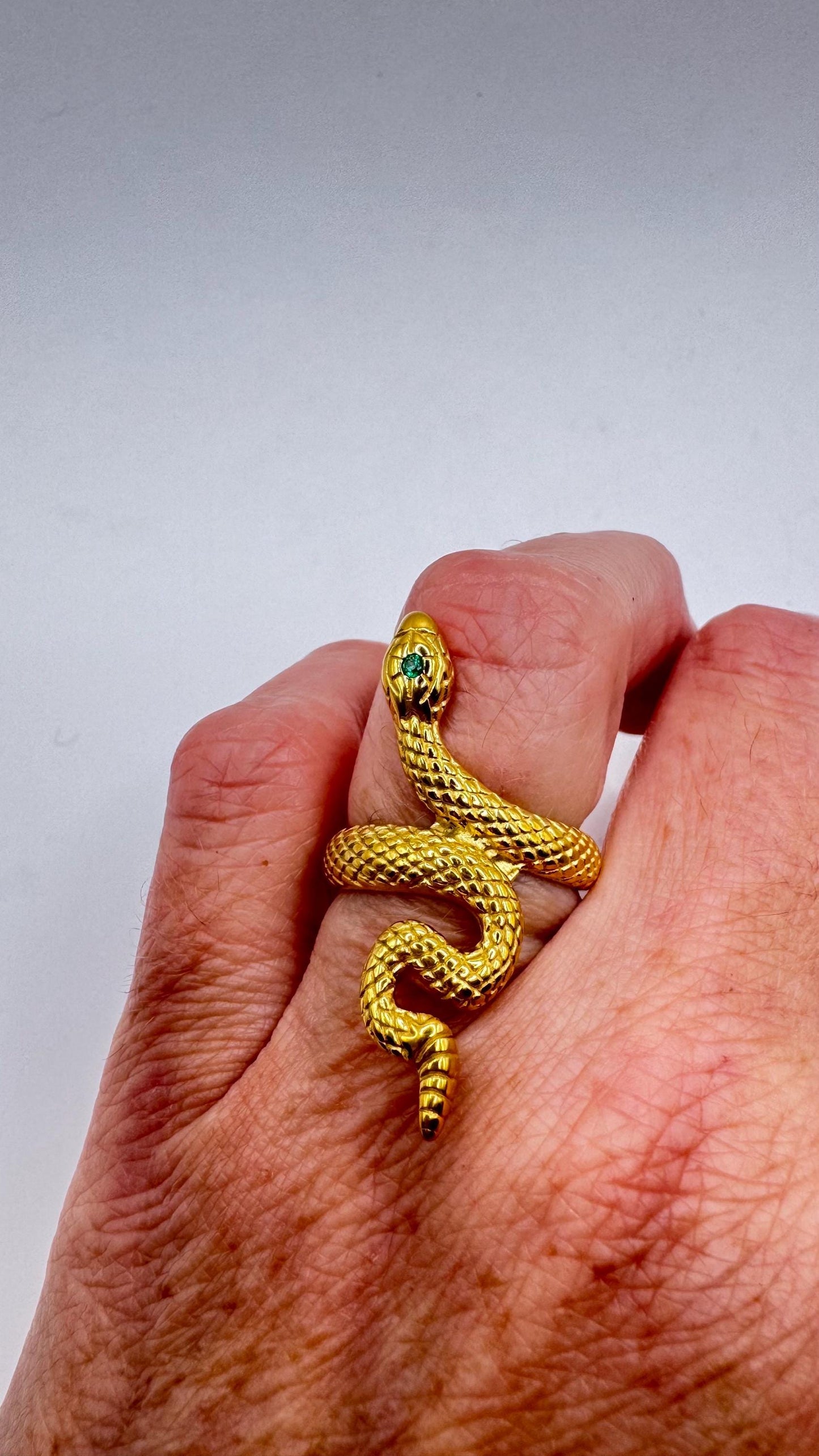 Vintage styled snake ring in stainless steel, finished in durable 18k gold, does not tarnish