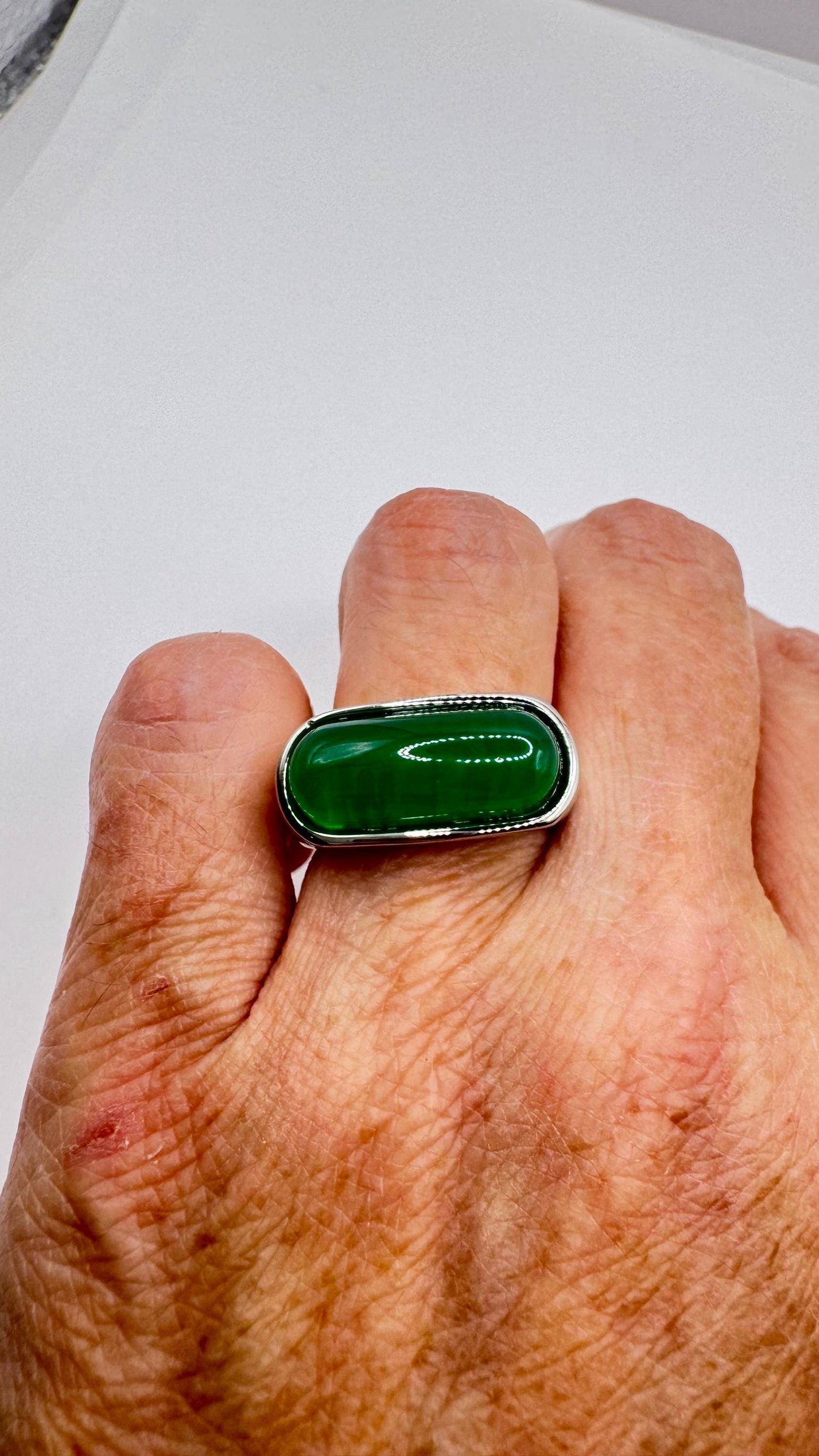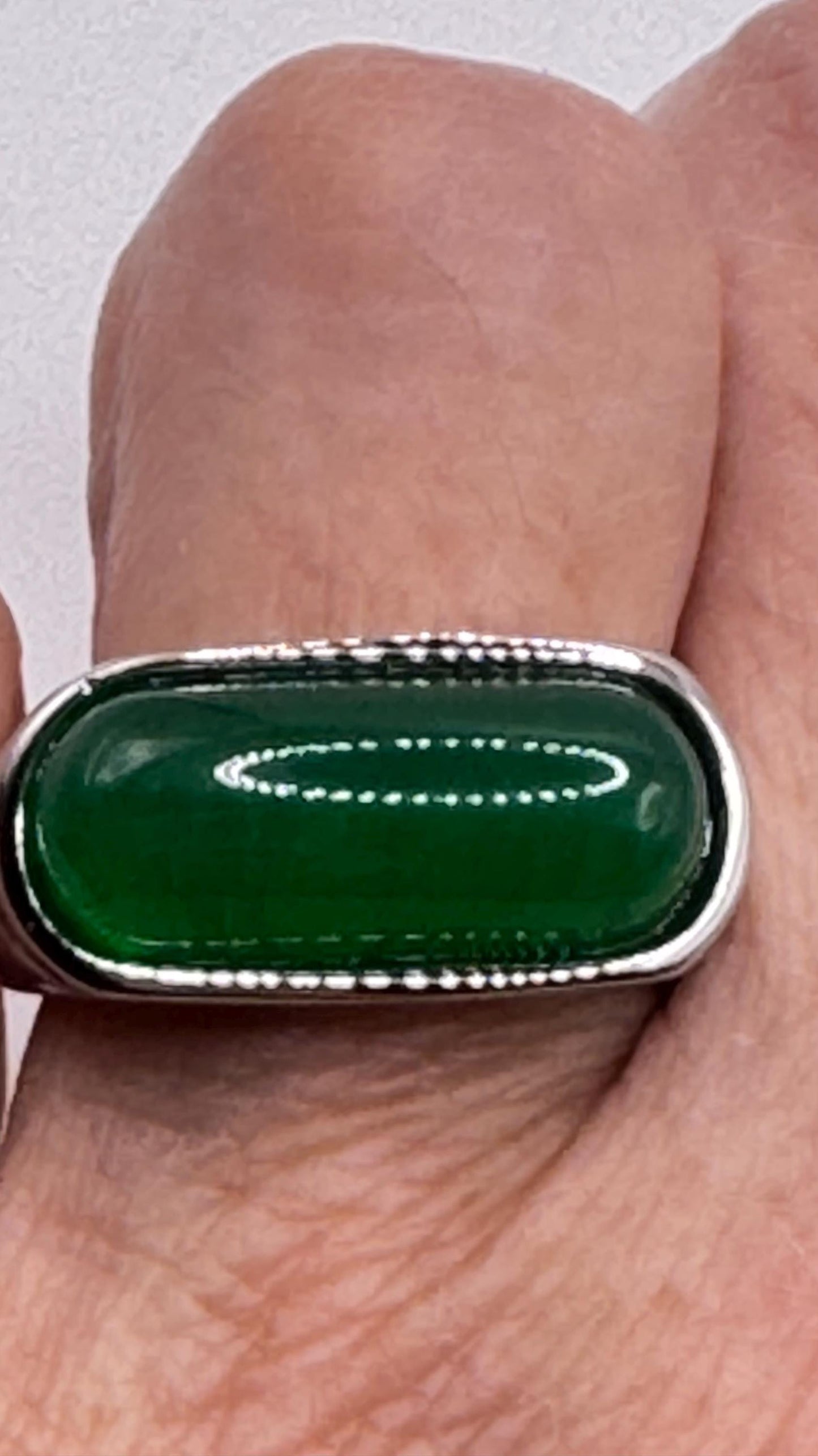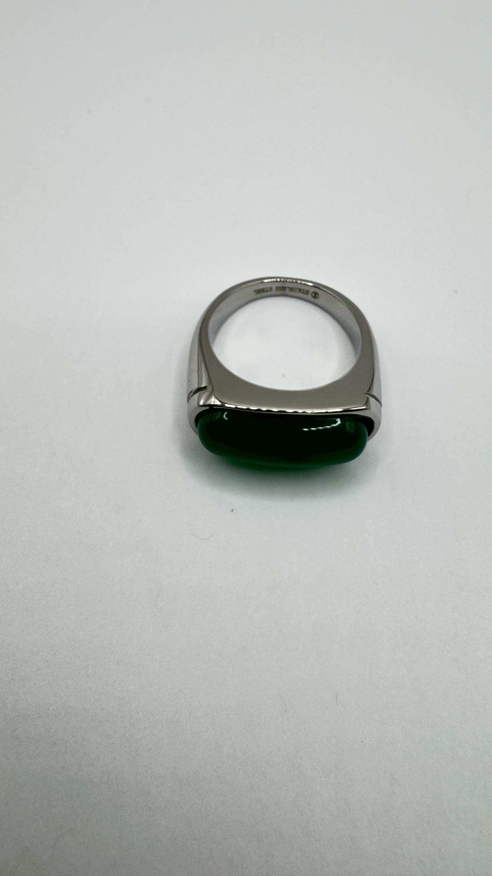 Vintage Green fun Jade silver stainless steel Mens Ring