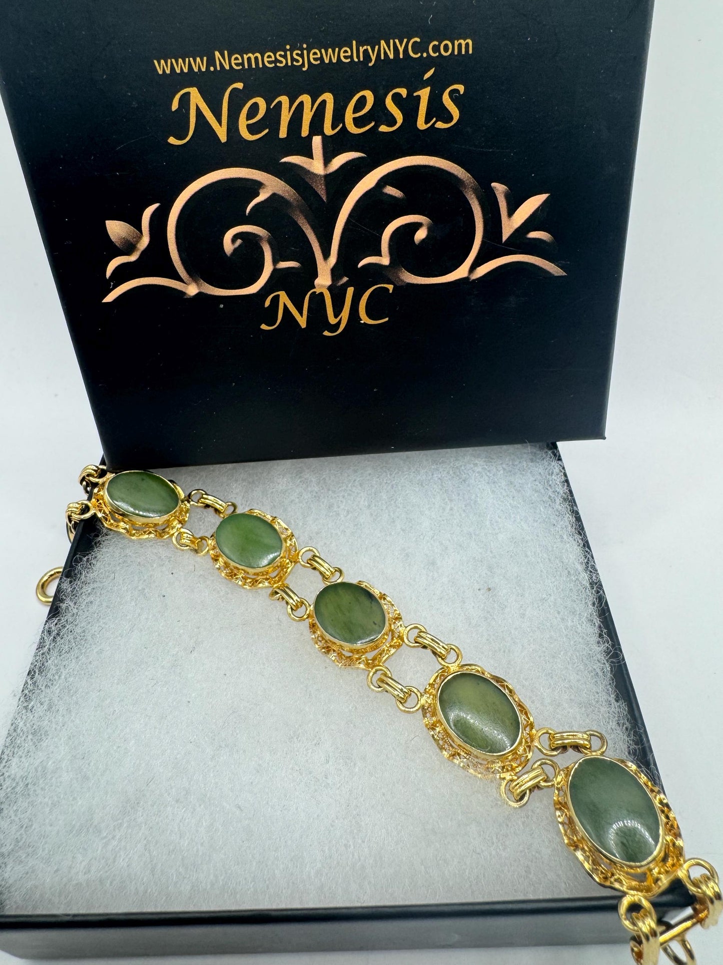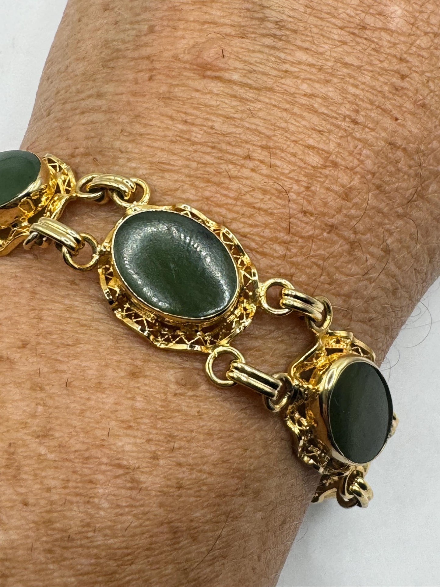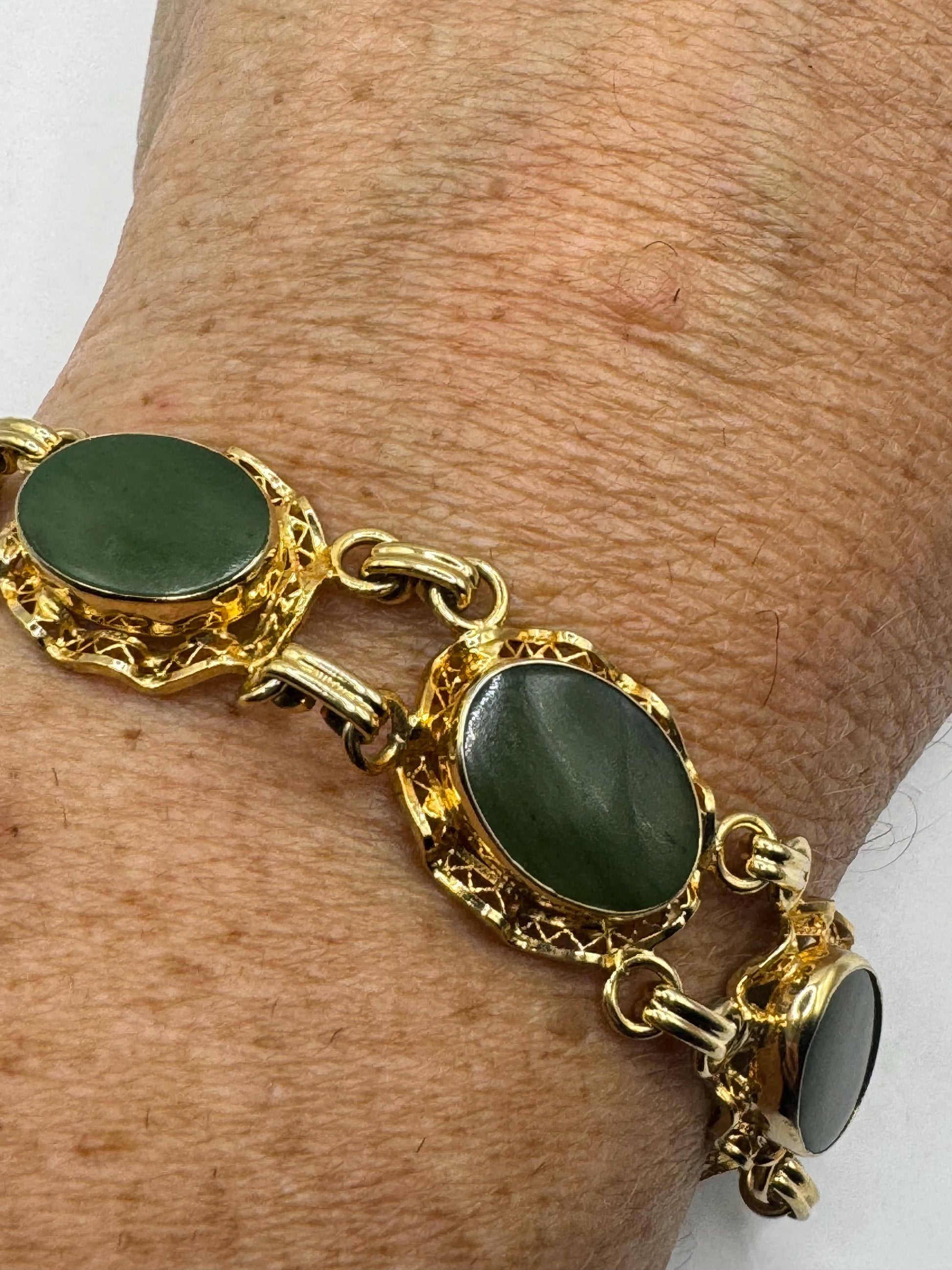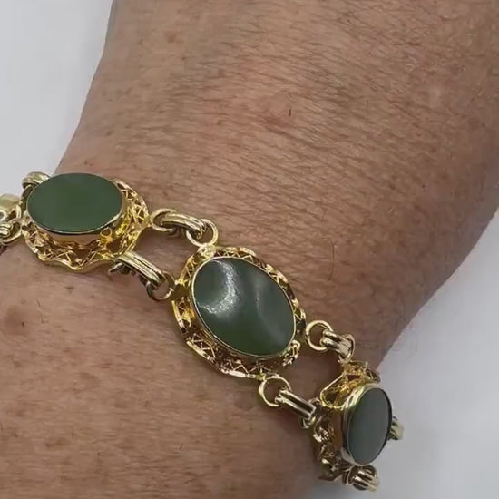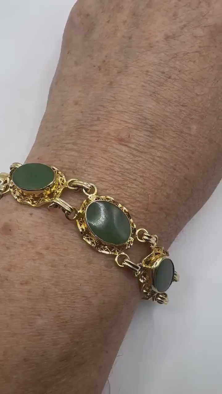 Vintage Green Jade Bracelet Gold filled