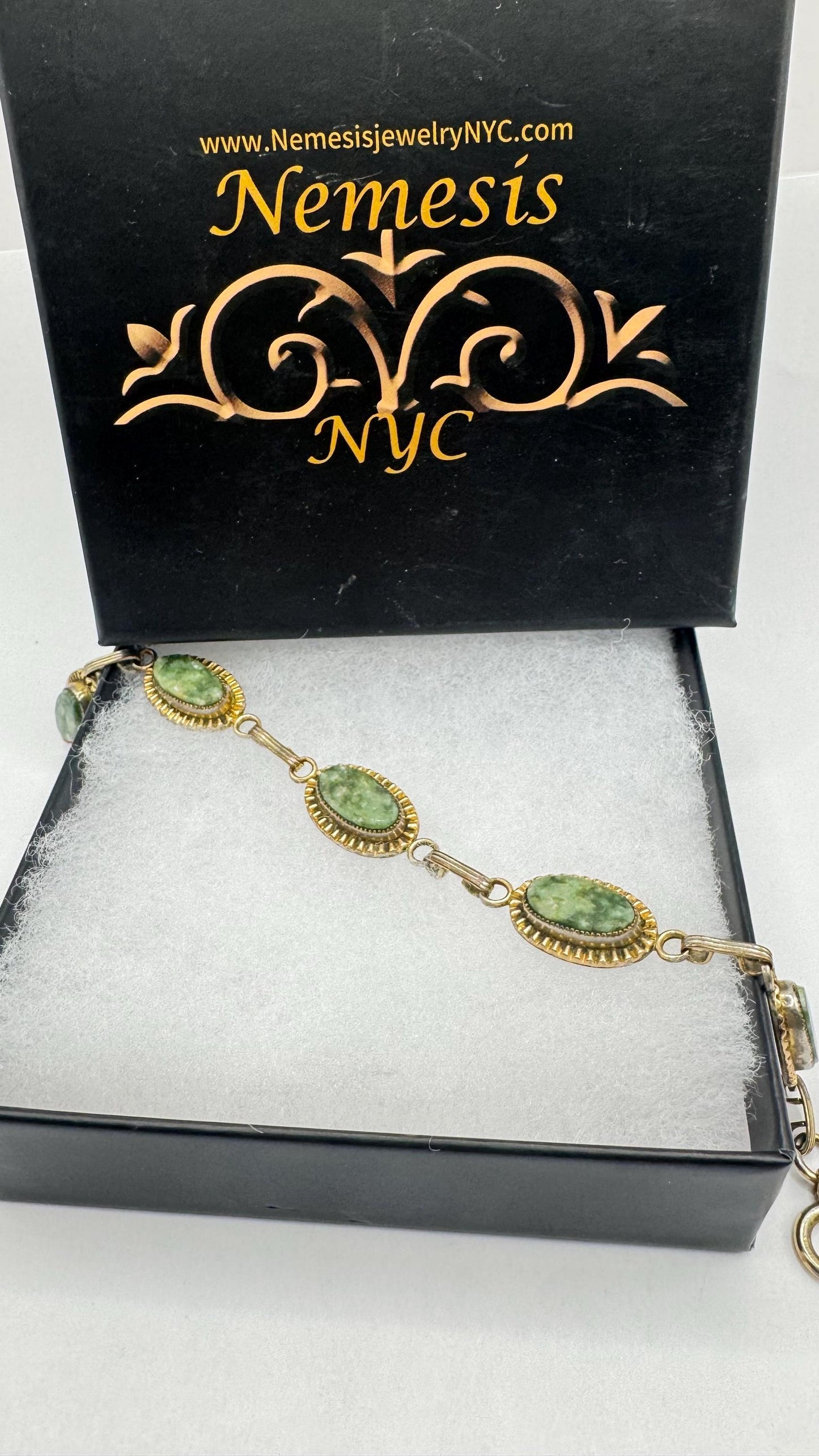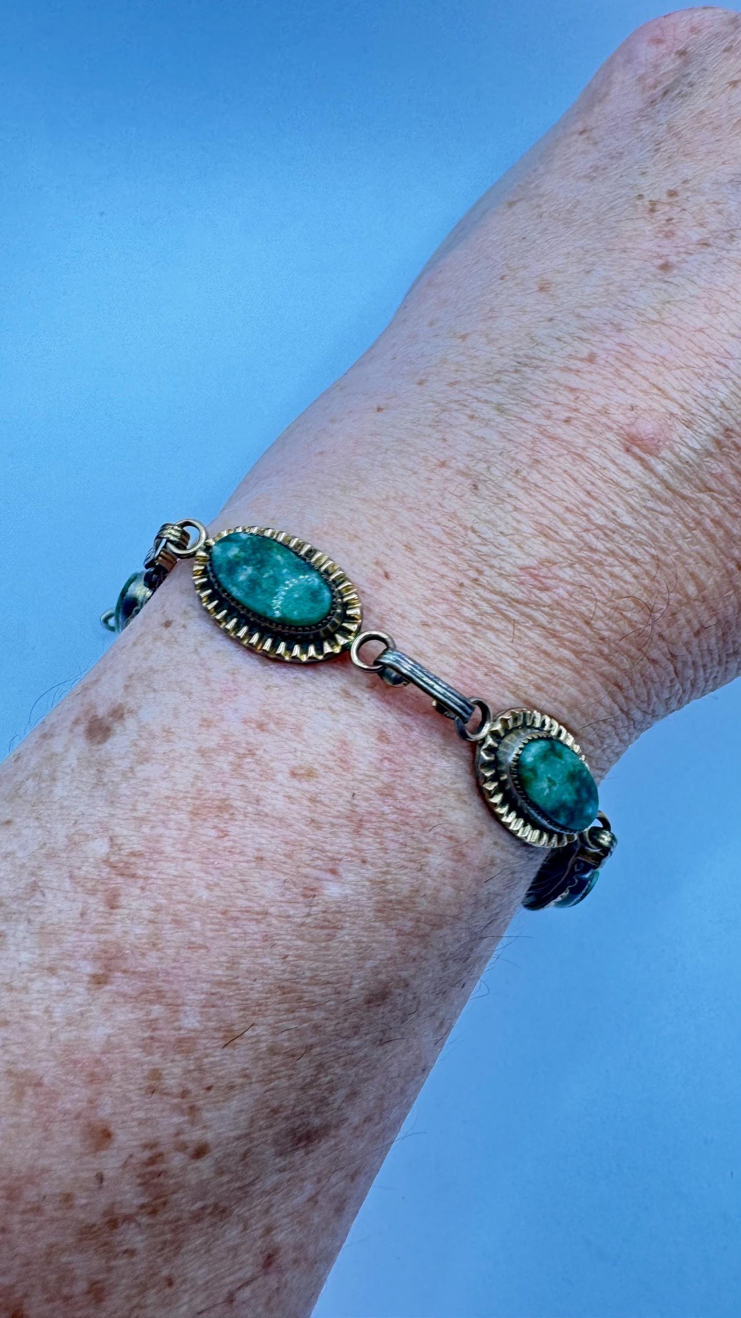 Vintage green jade bracelet 12k gold filled