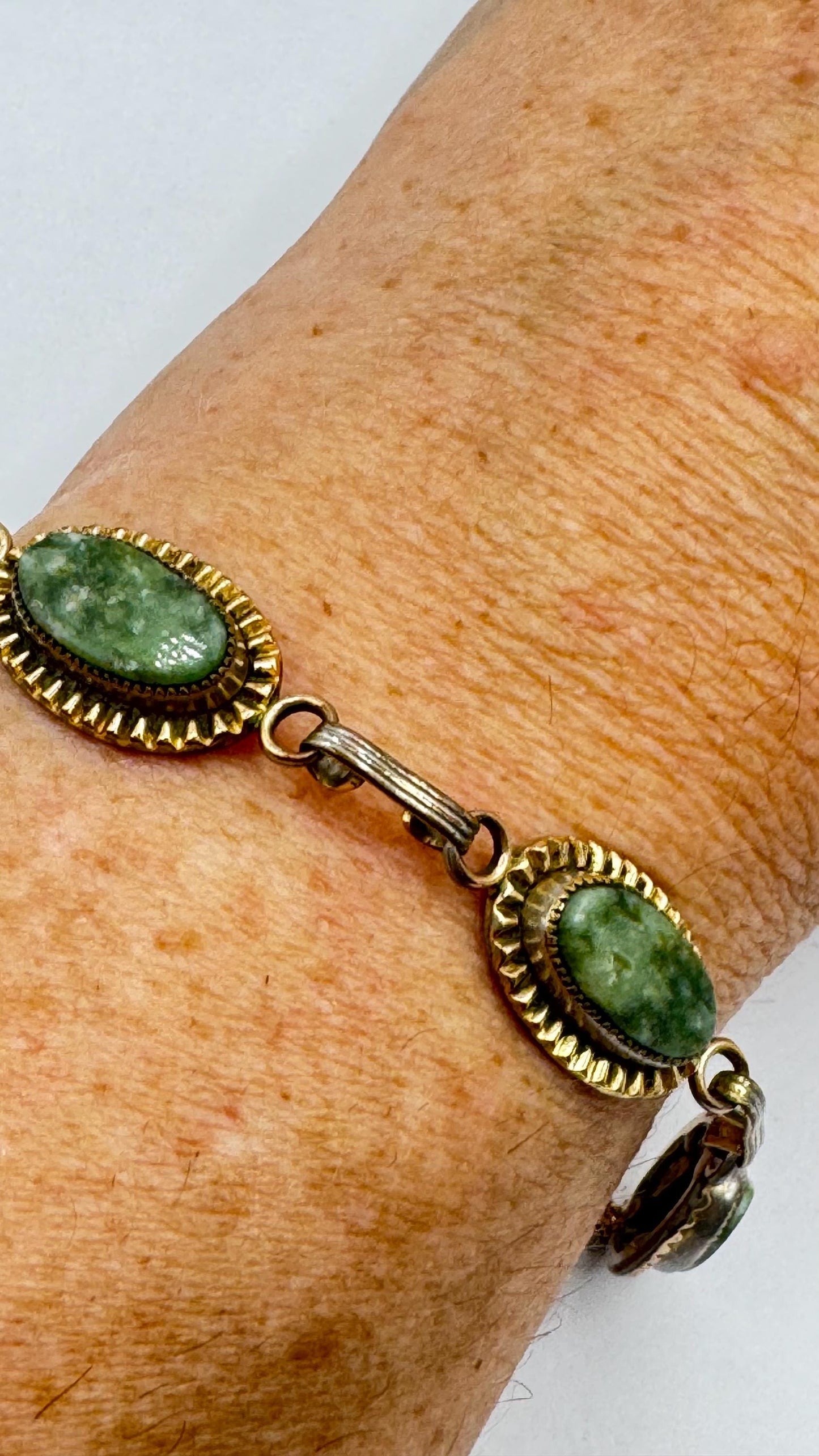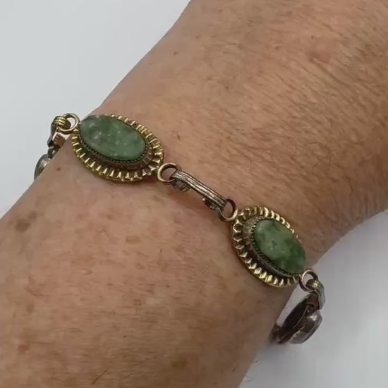 Vintage Green Jade Bracelet Gold filled