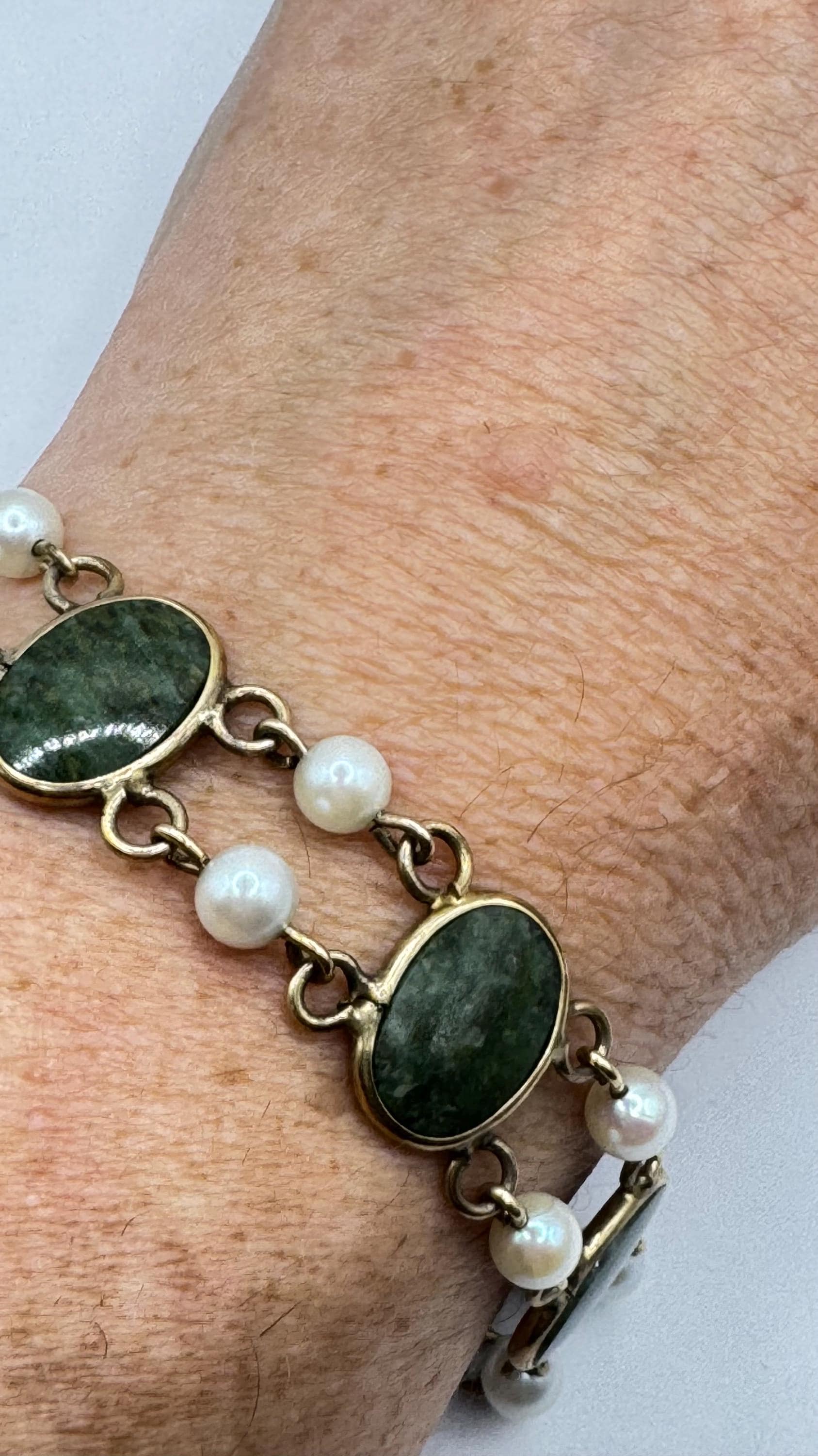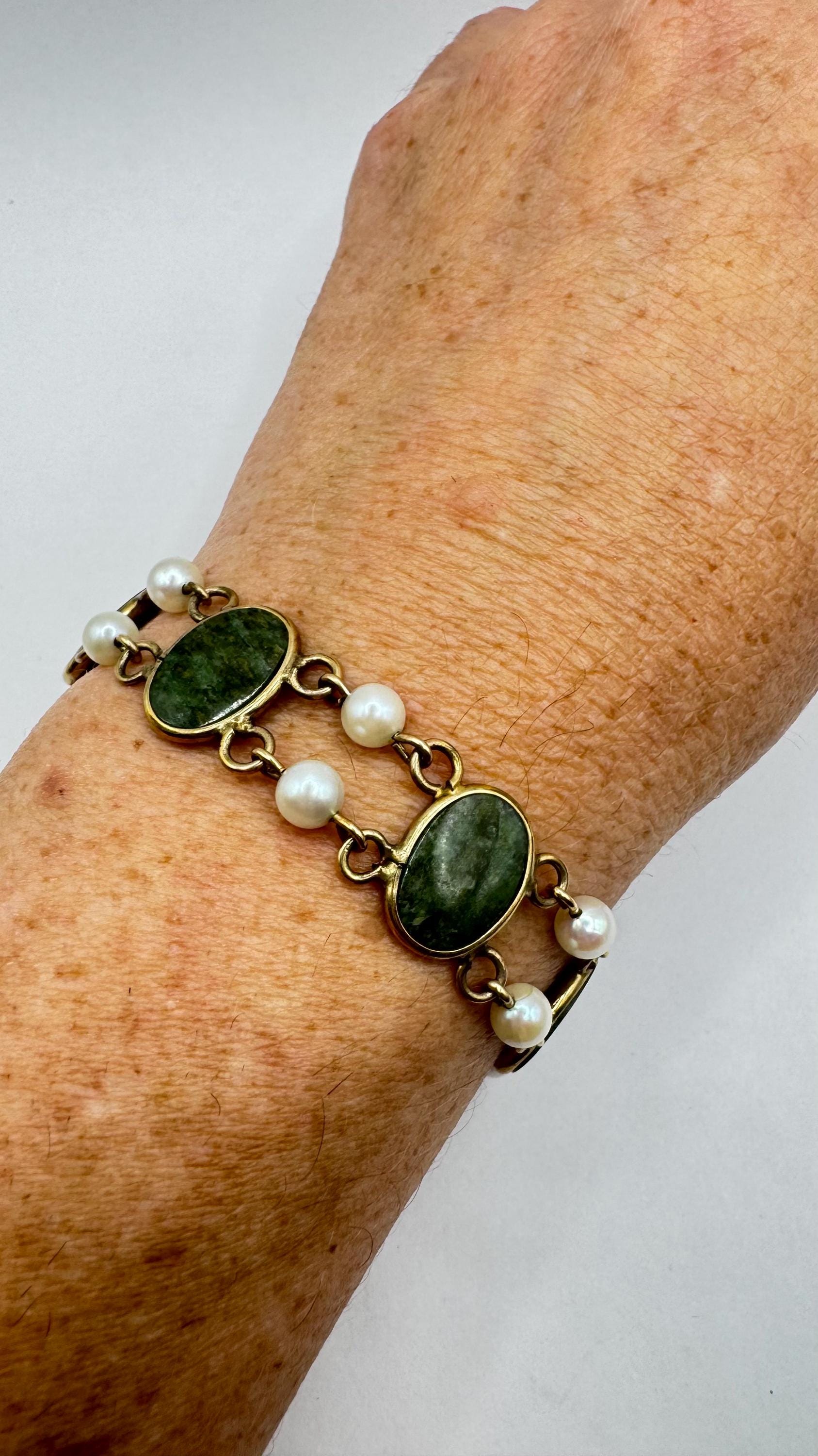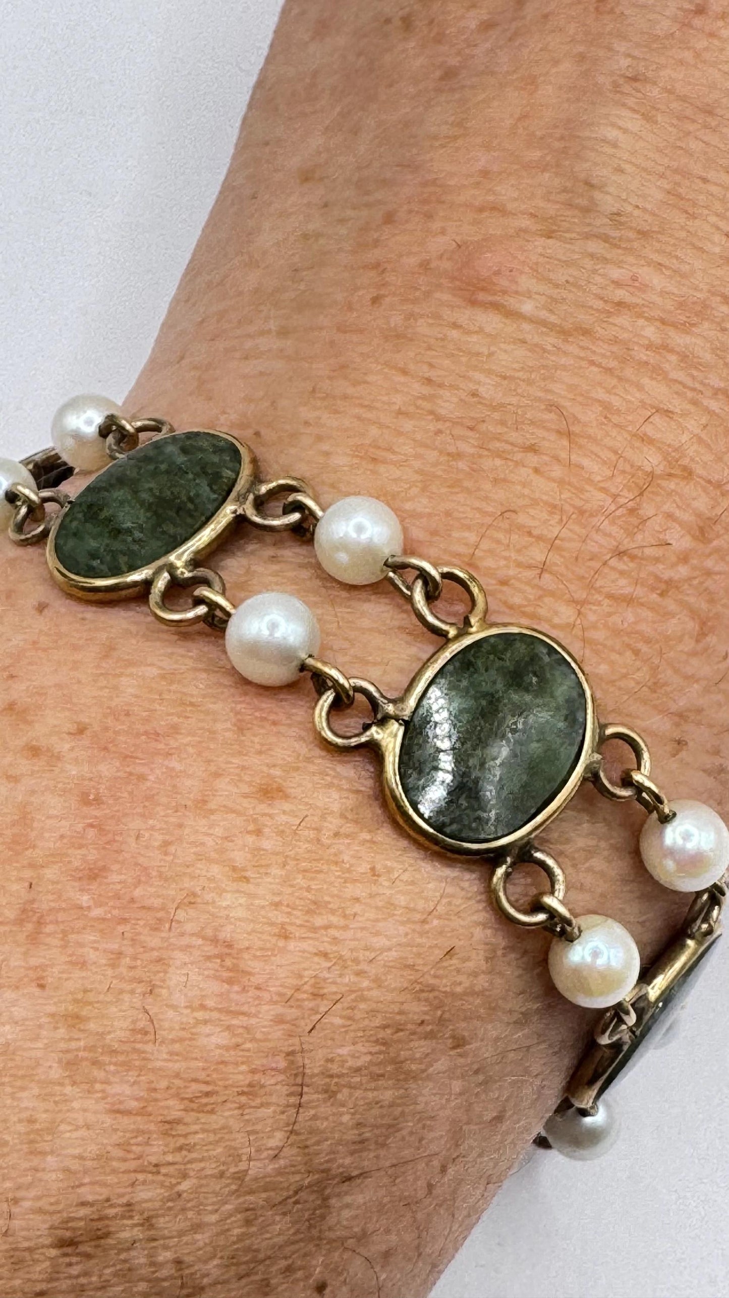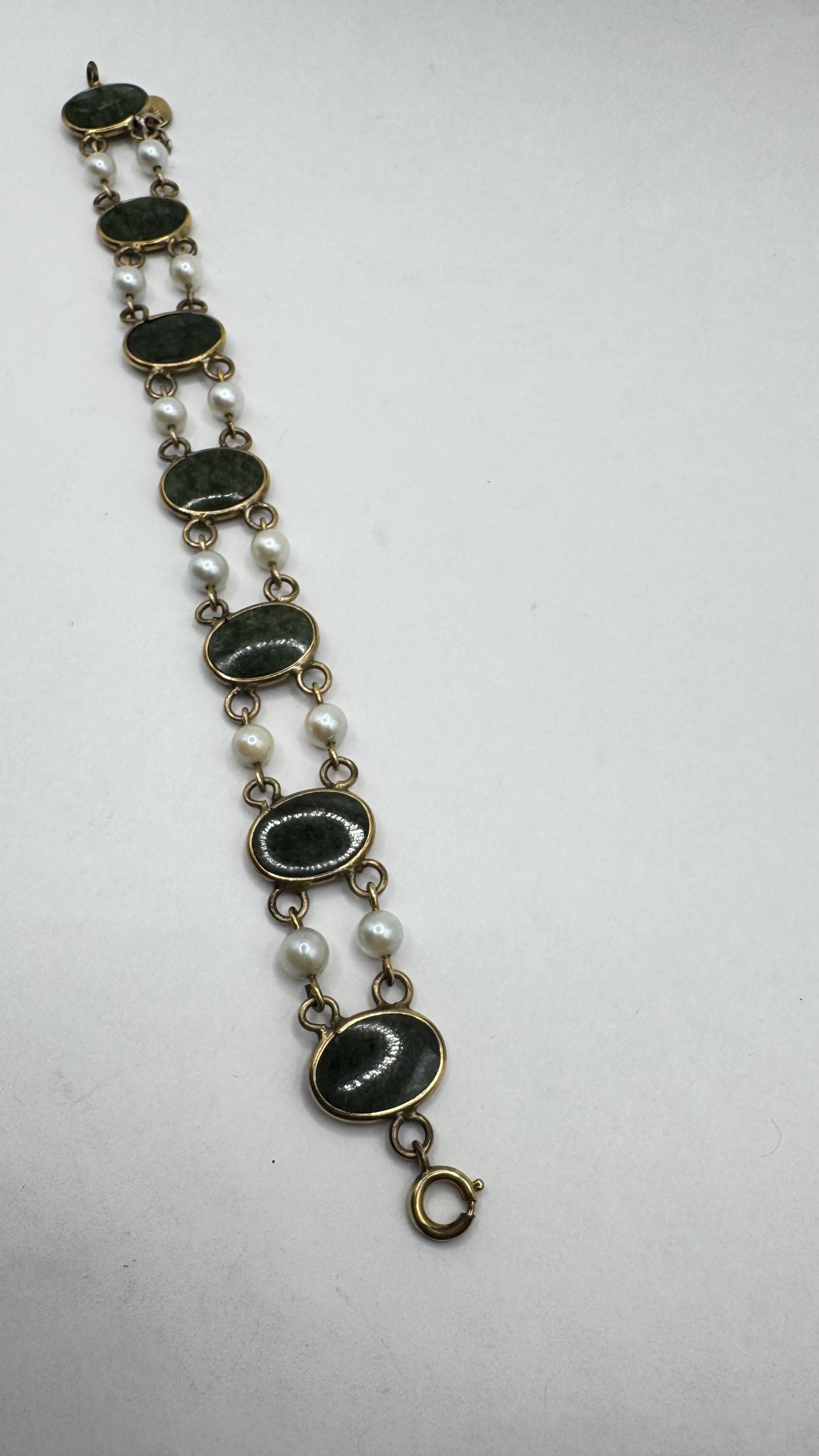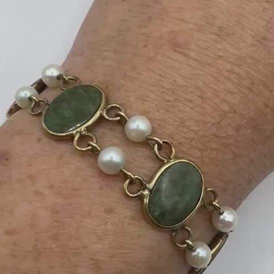 Vintage Green Jade Bracelet Gold filled