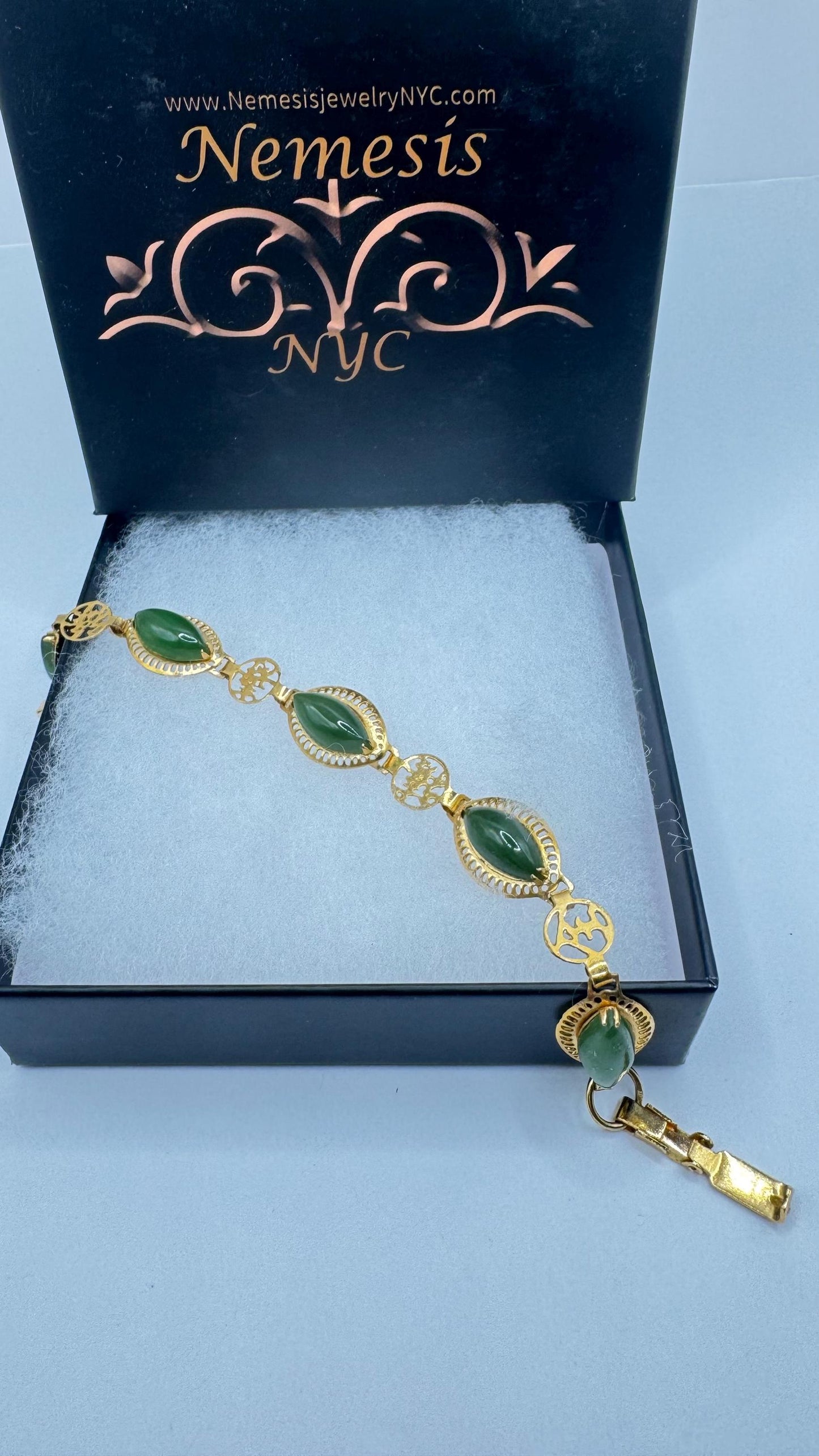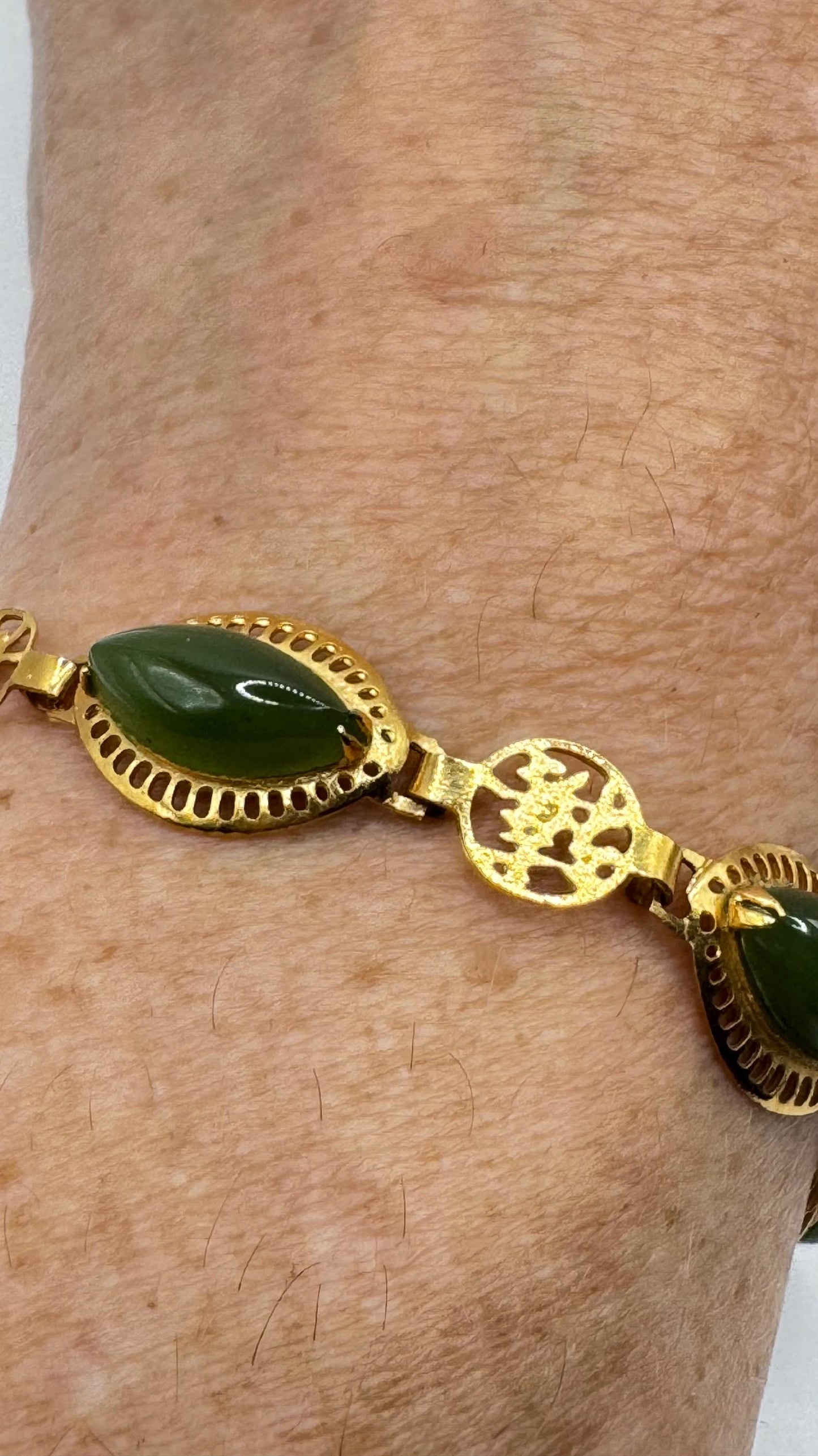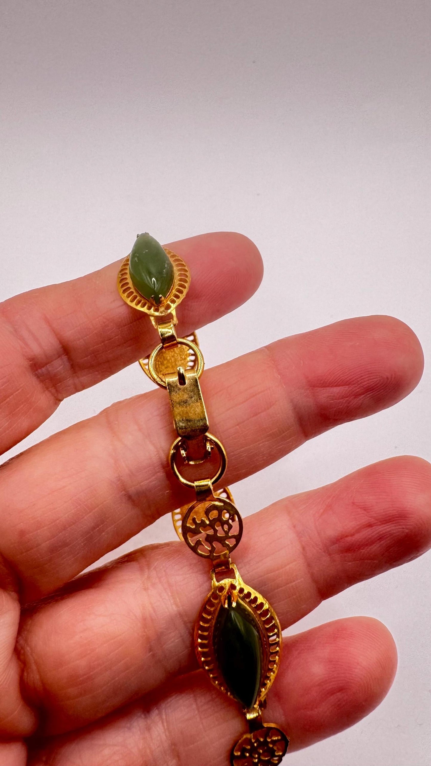 Vintage Green Jade Bracelet Gold filled