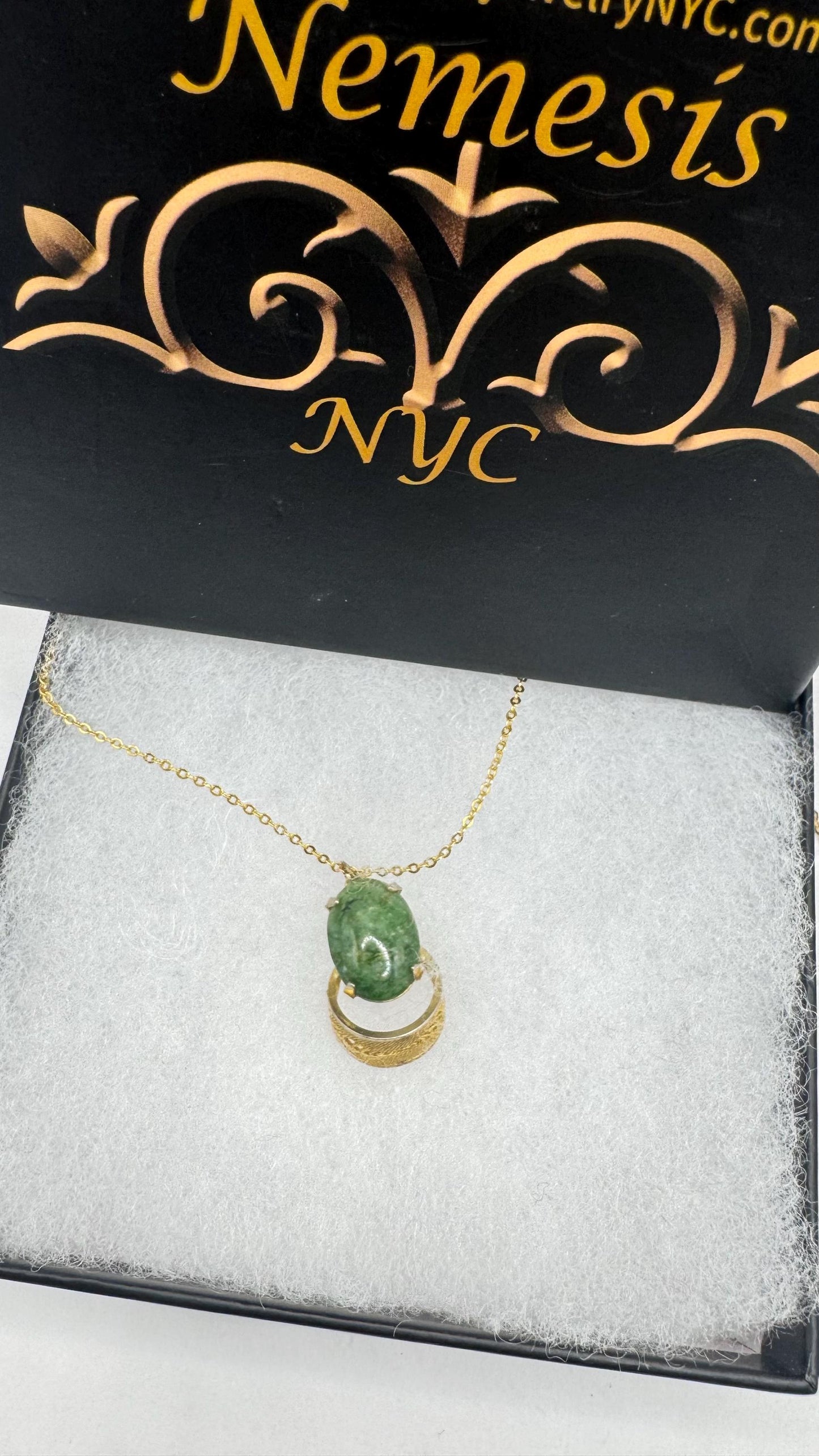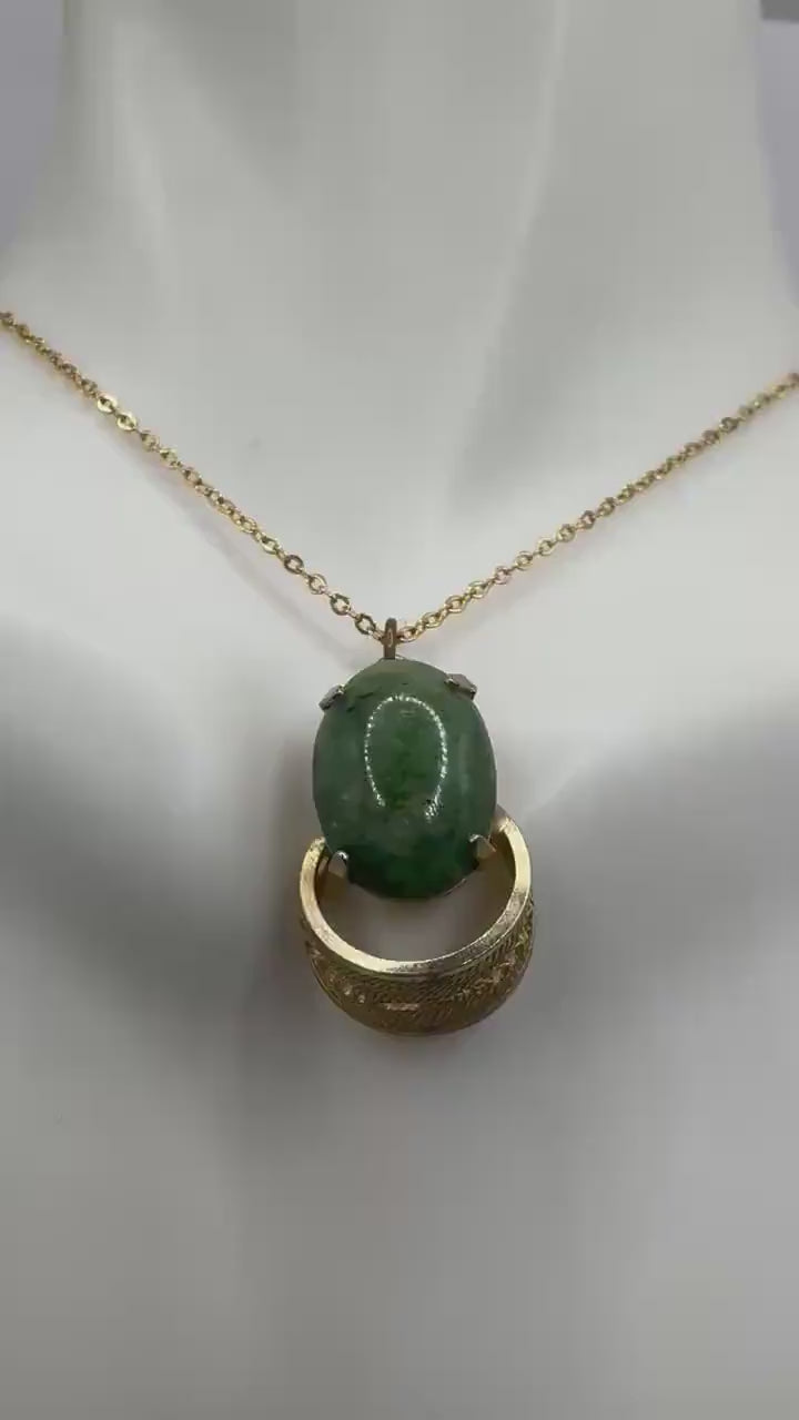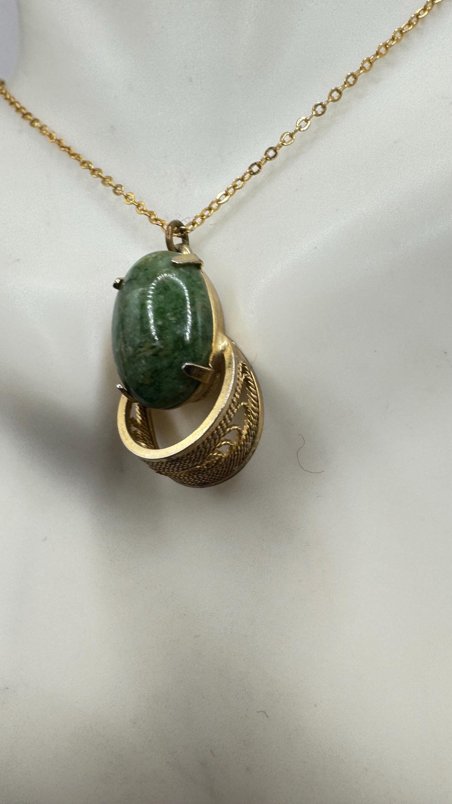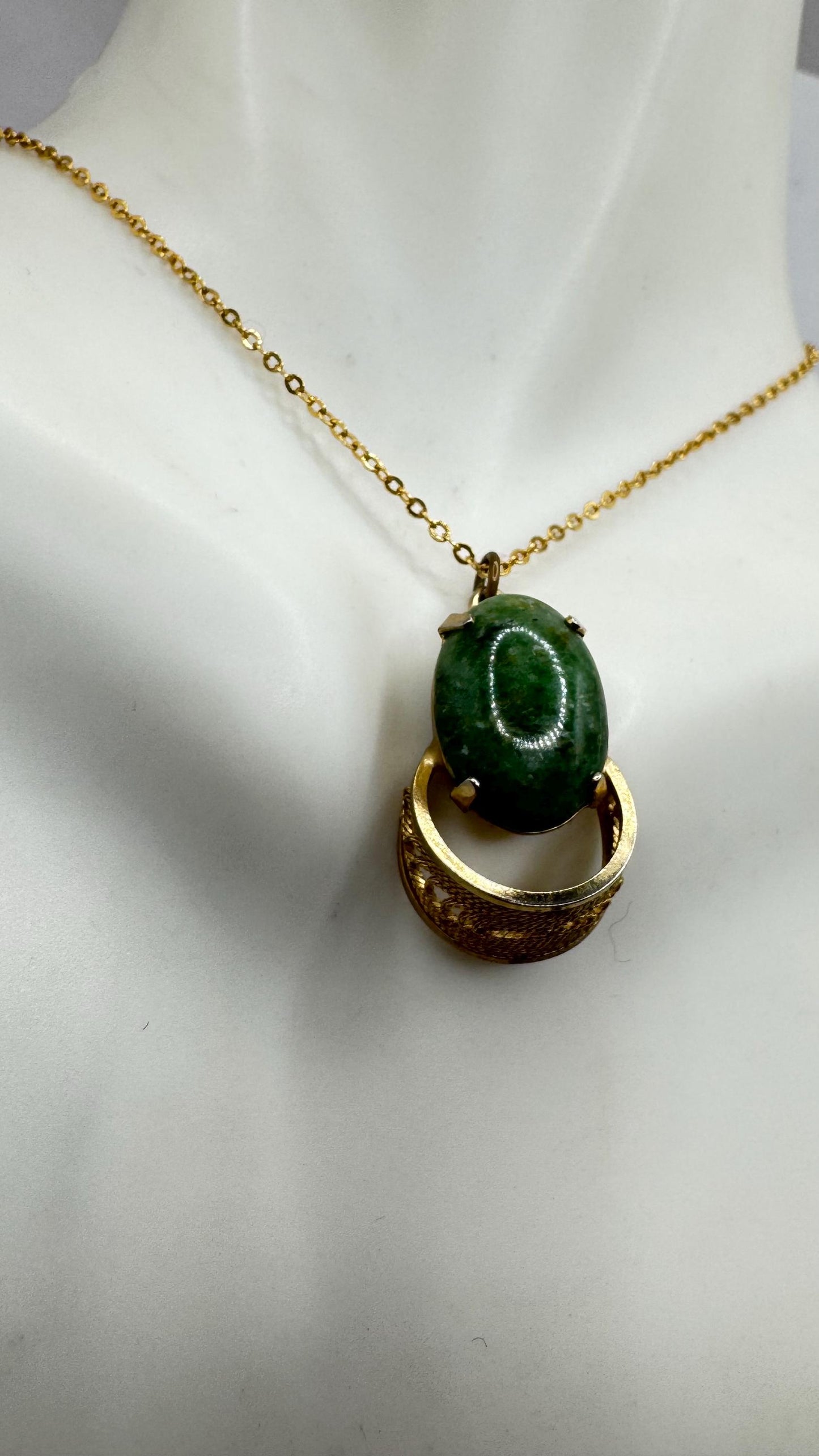 Vintage Green Jade Leaf Yellow Gold Filled Necklace