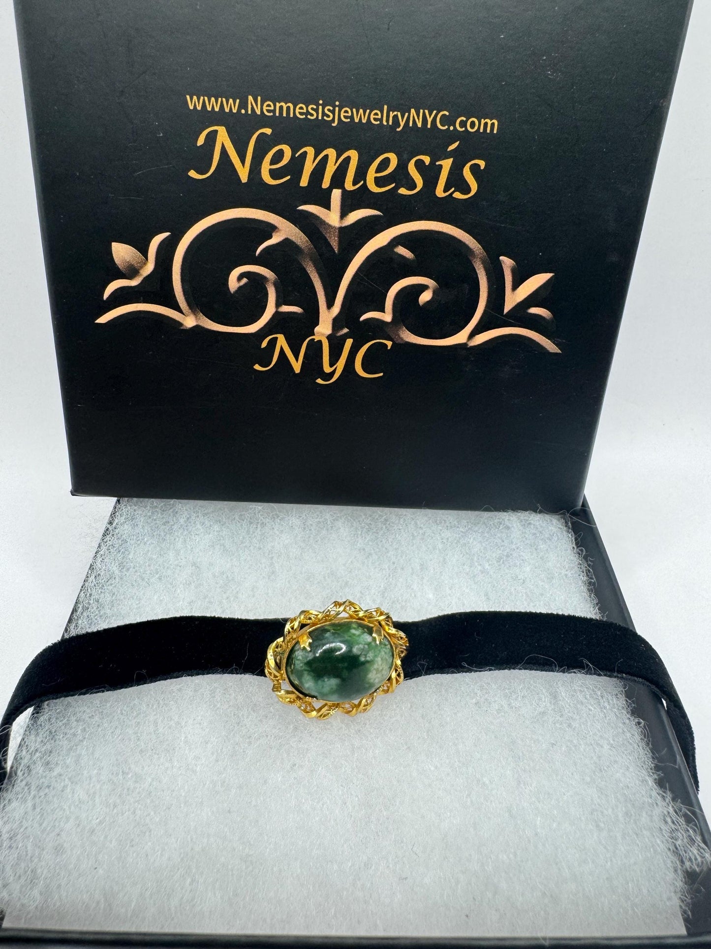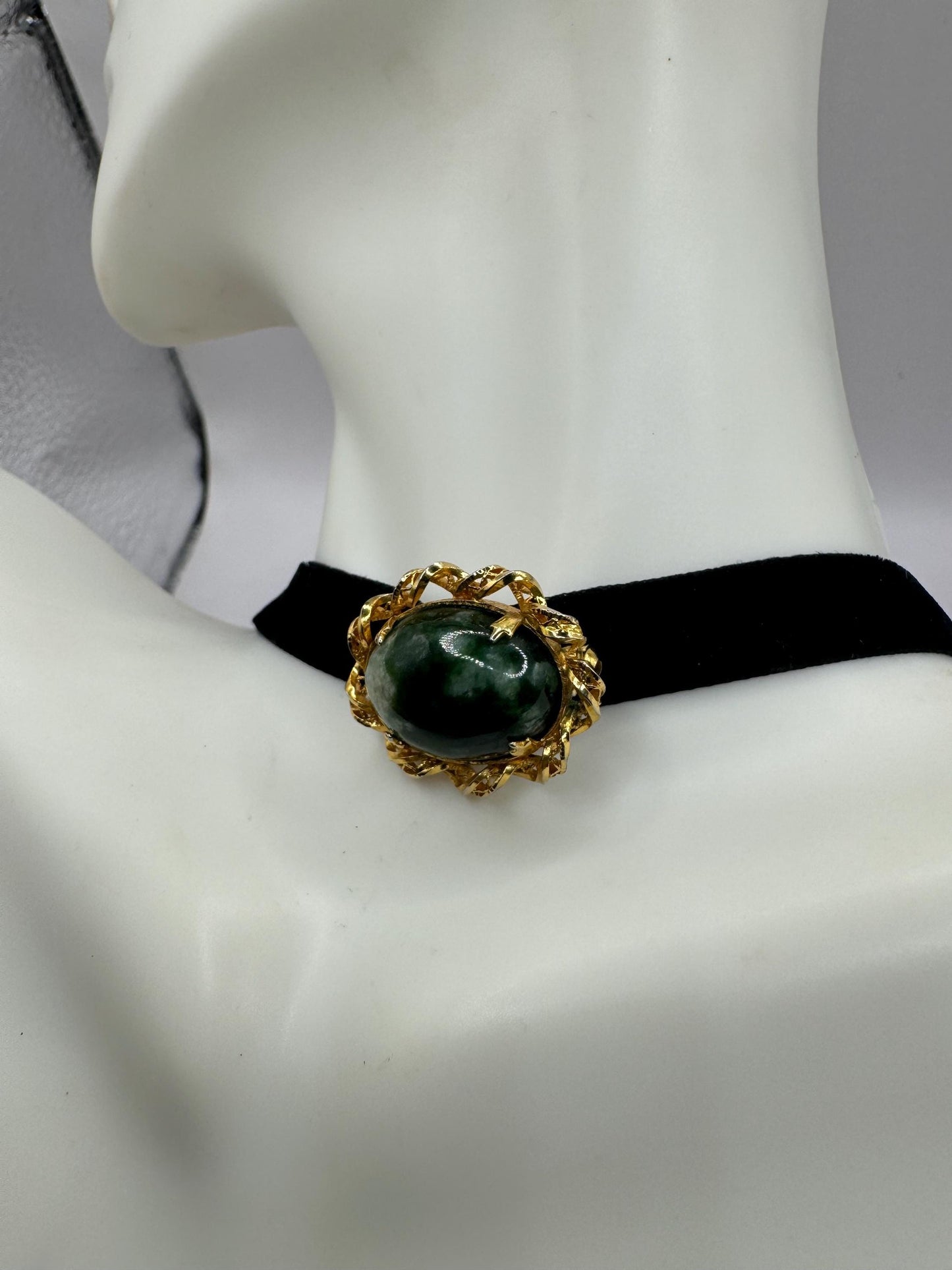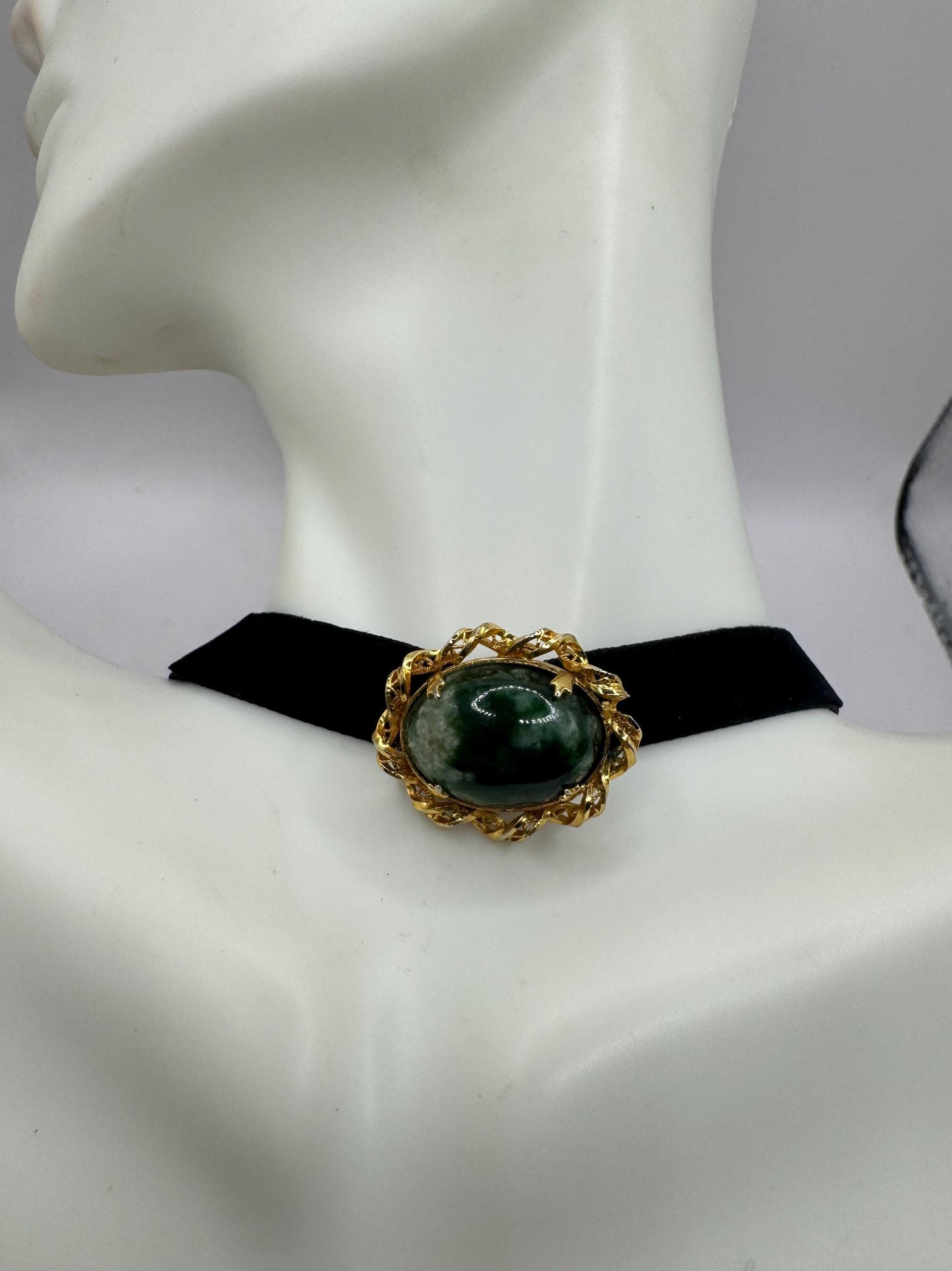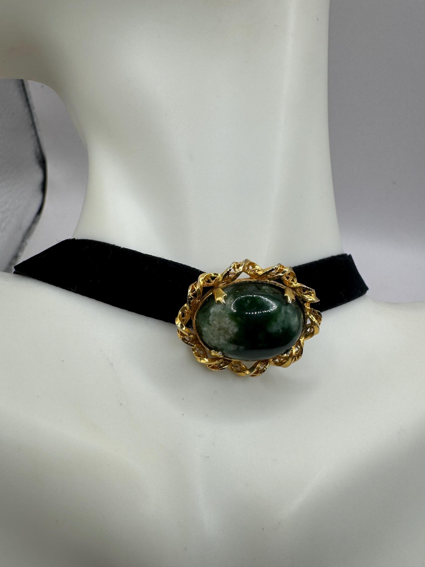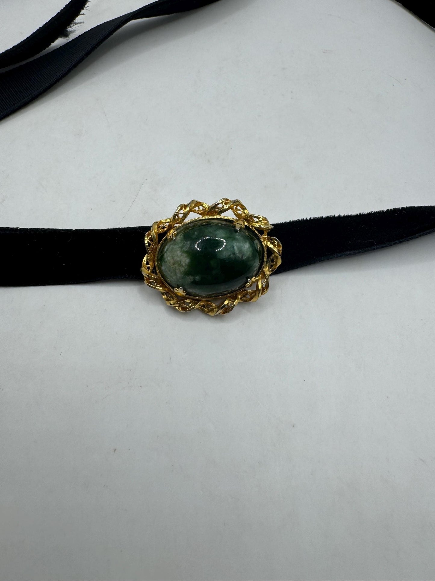 Vintage Green Jade Yellow Gold Filled Brooch Pin