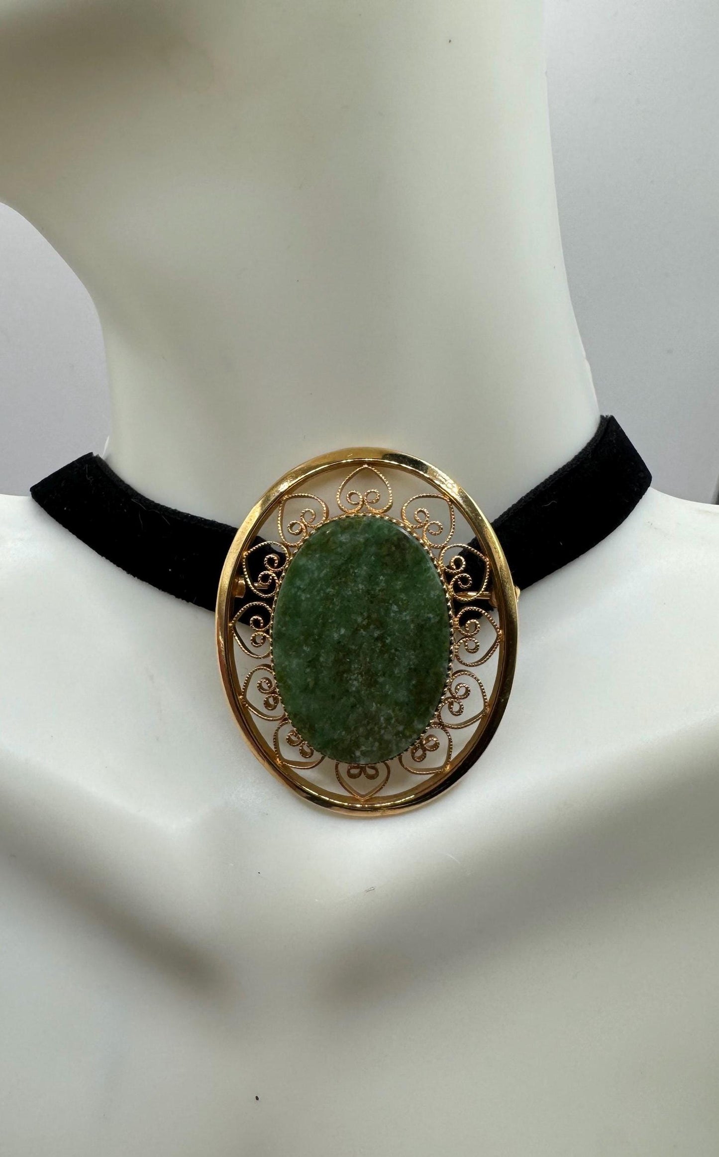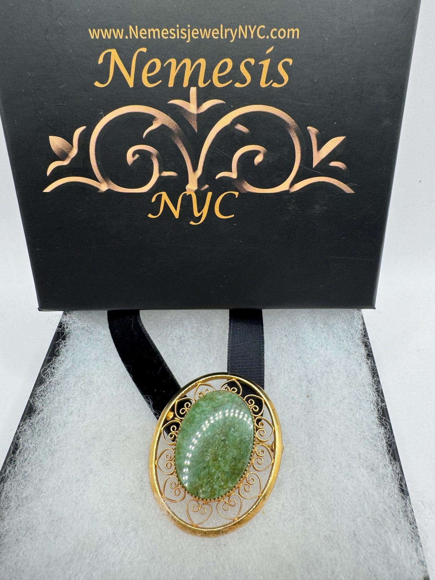 Vintage Green Jade Yellow Gold Filled Brooch Pin