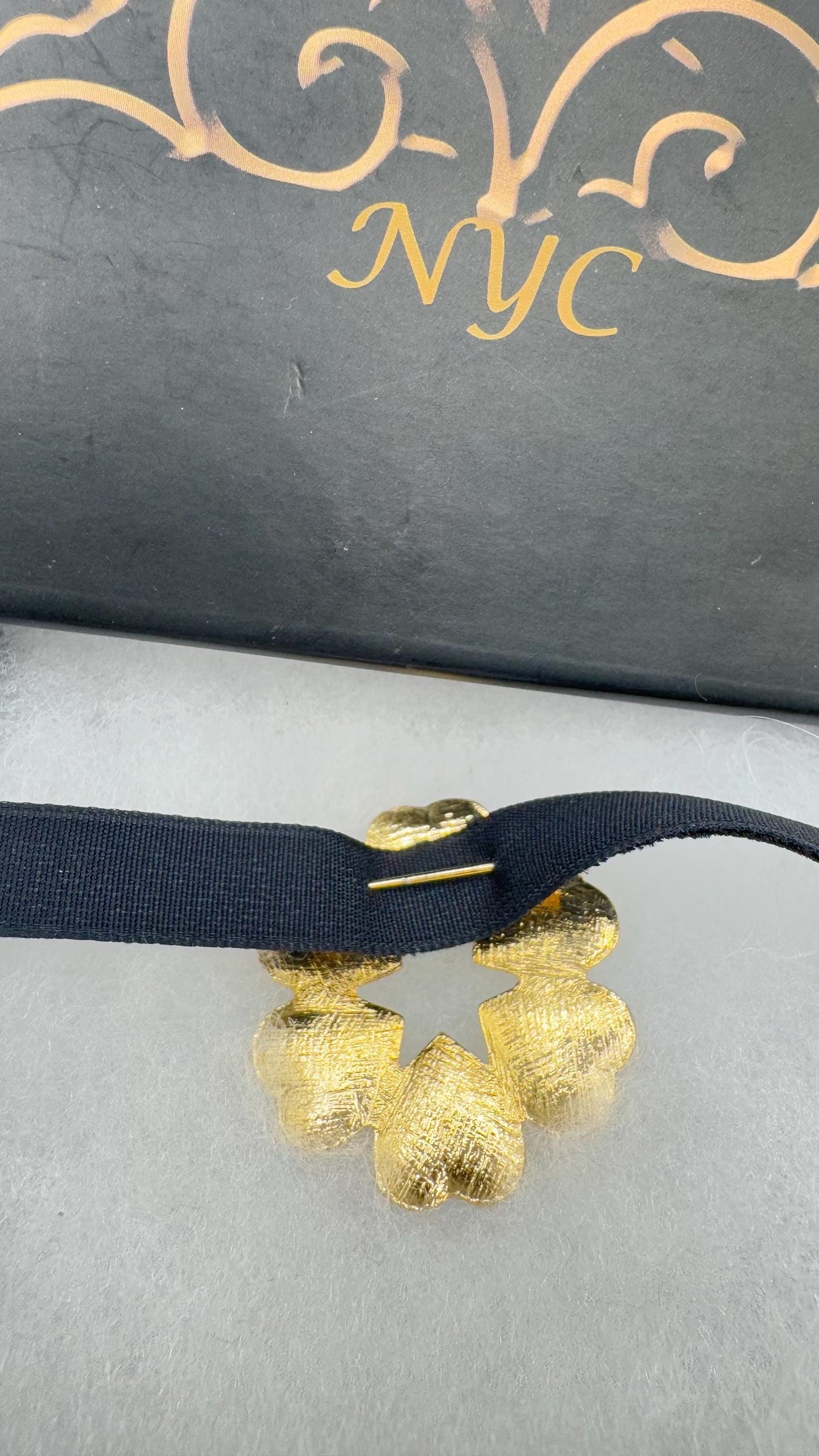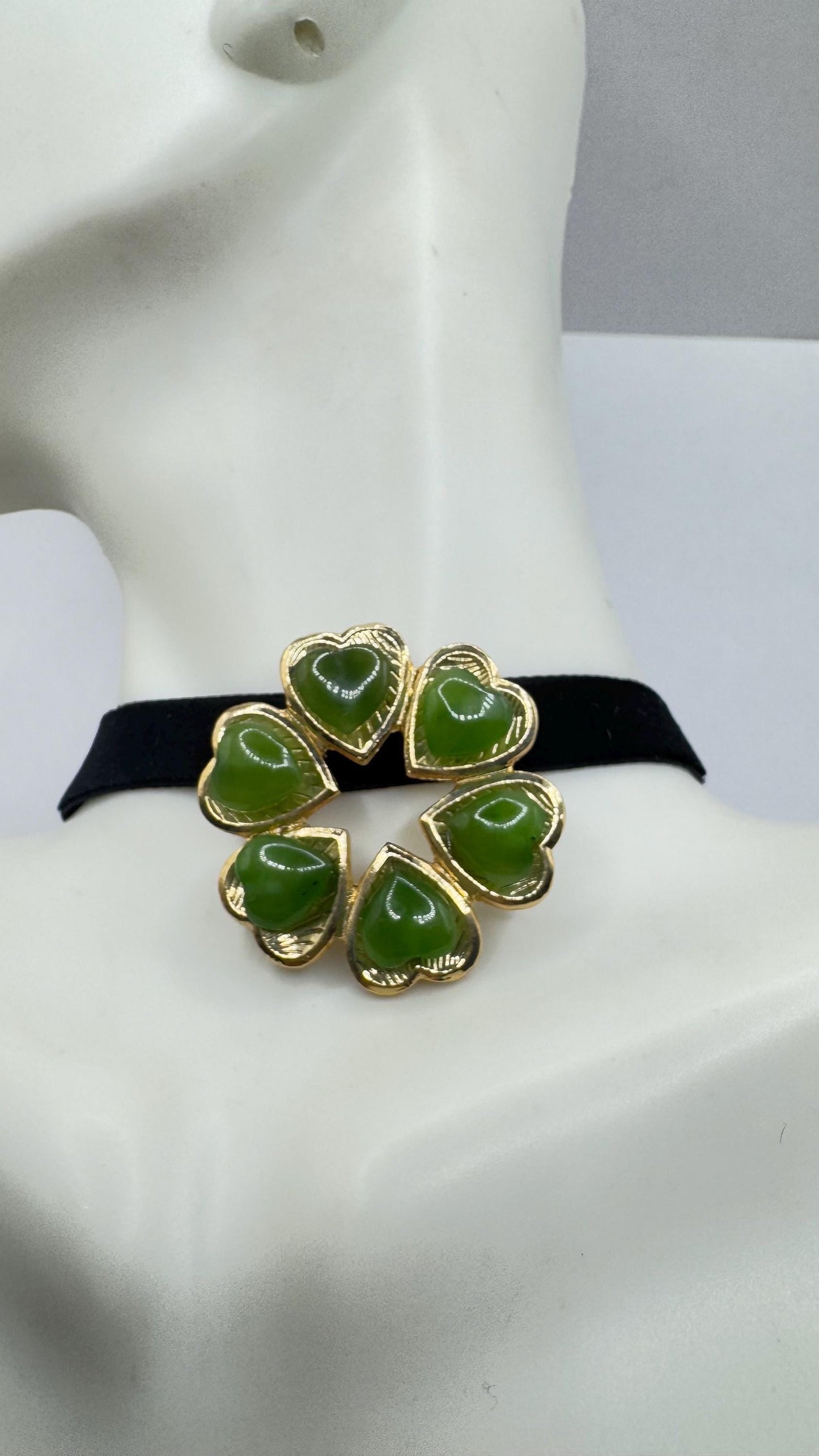 can be pined on a velvet ribbon around the neck